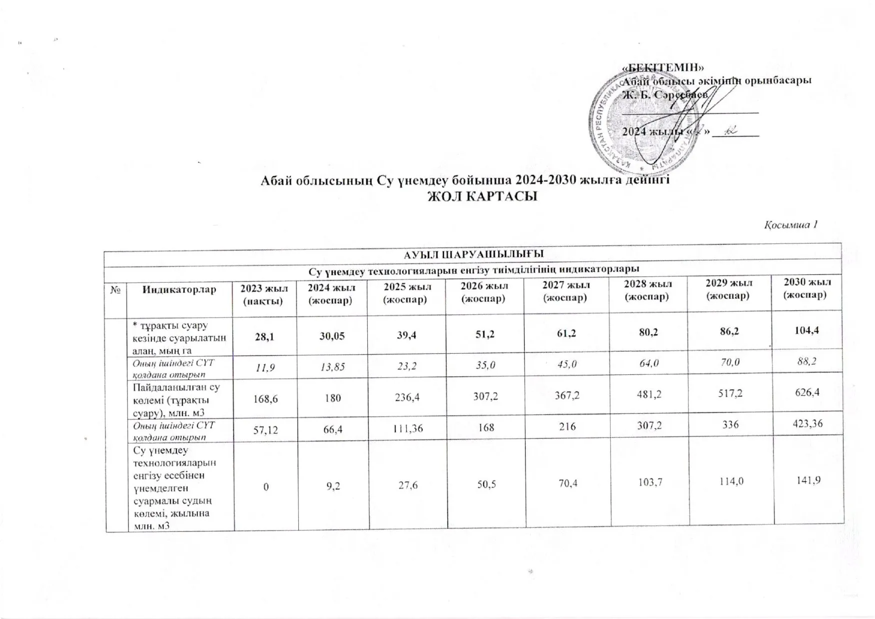 Абай облысының Су үнемдеу бойынша 2024-2030 жылға дейінгі