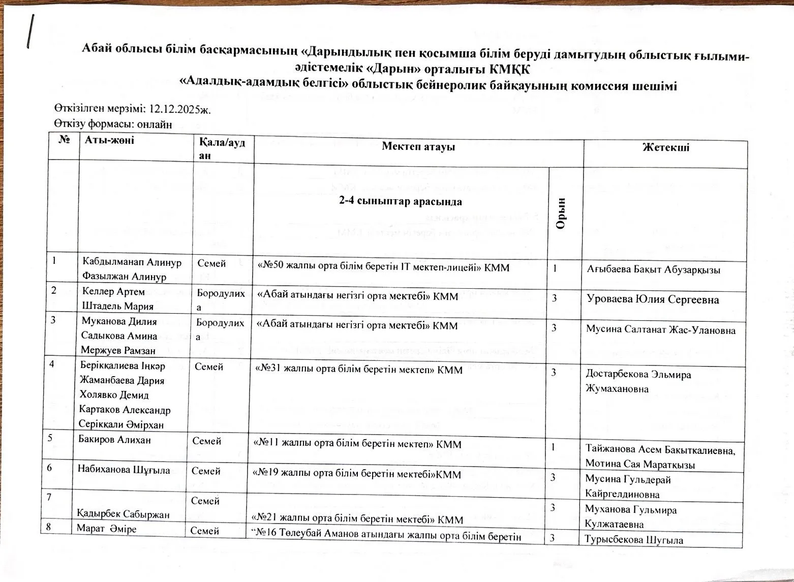 «Адалдық-адамдық белгісі» облыстық бейнеролик байқауының комиссия шешімі
