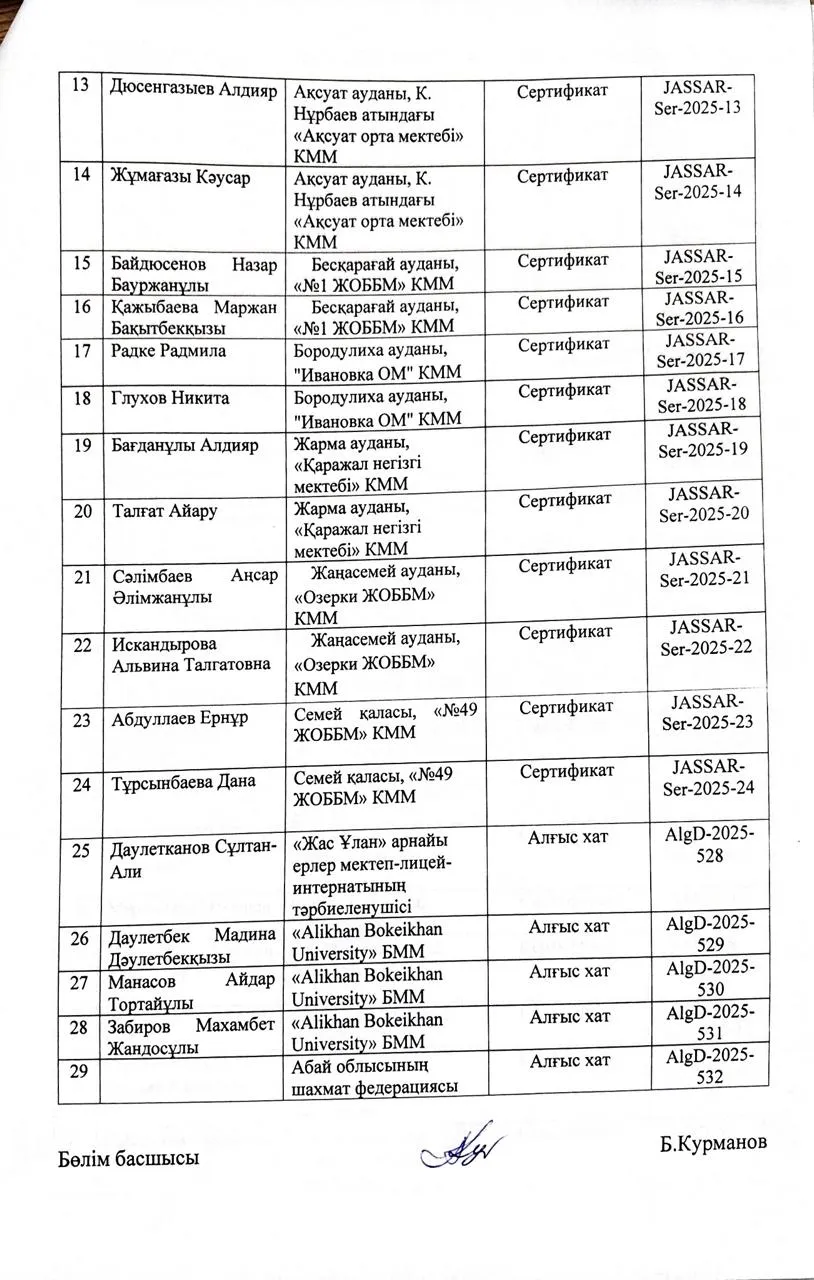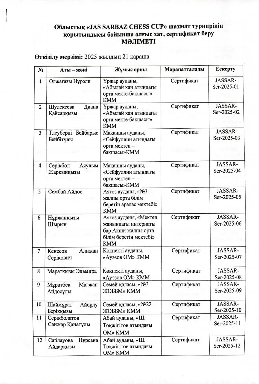 «JAS SARBAZ CHESS CUP» шахмат турнирінің облыстық кезеңі