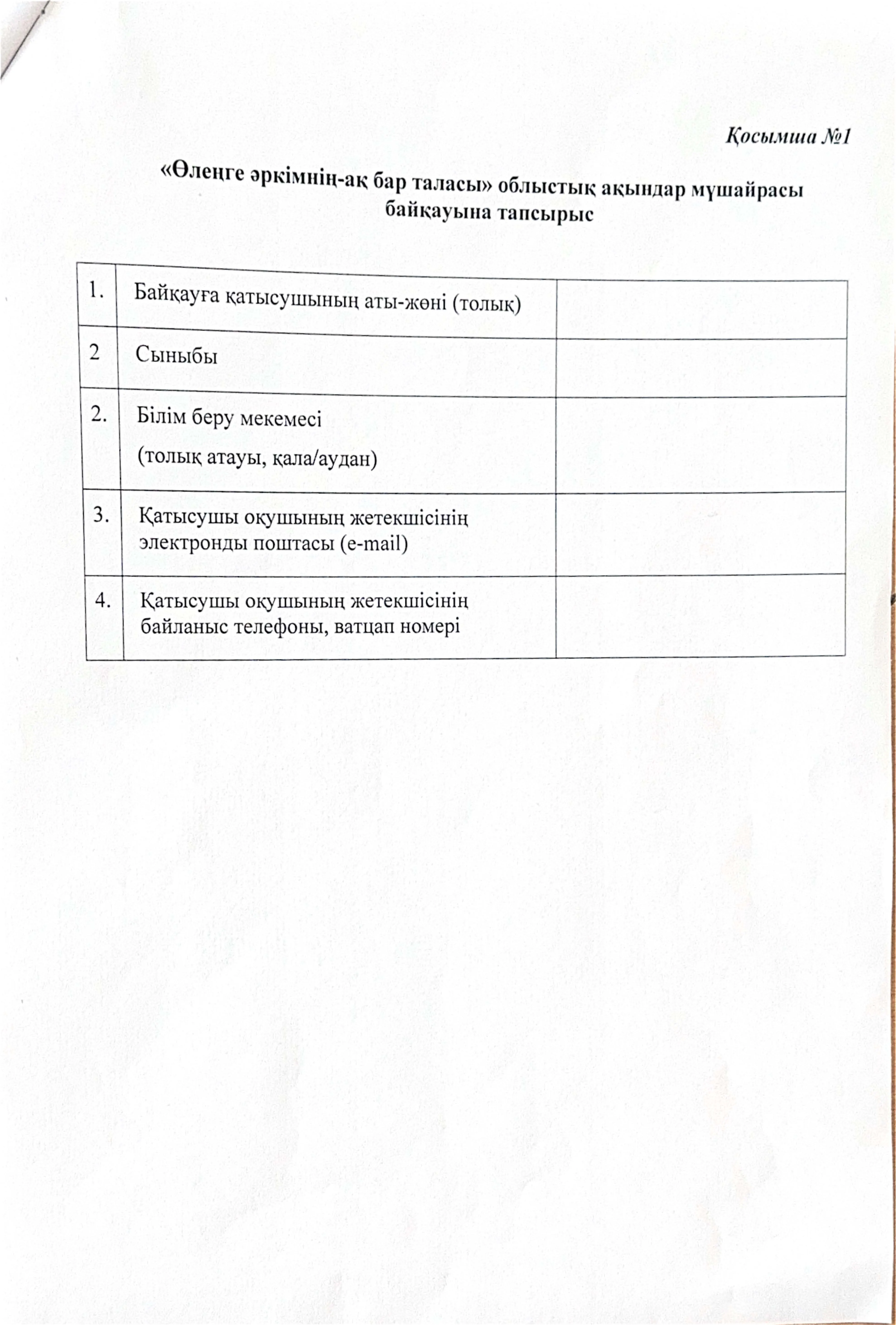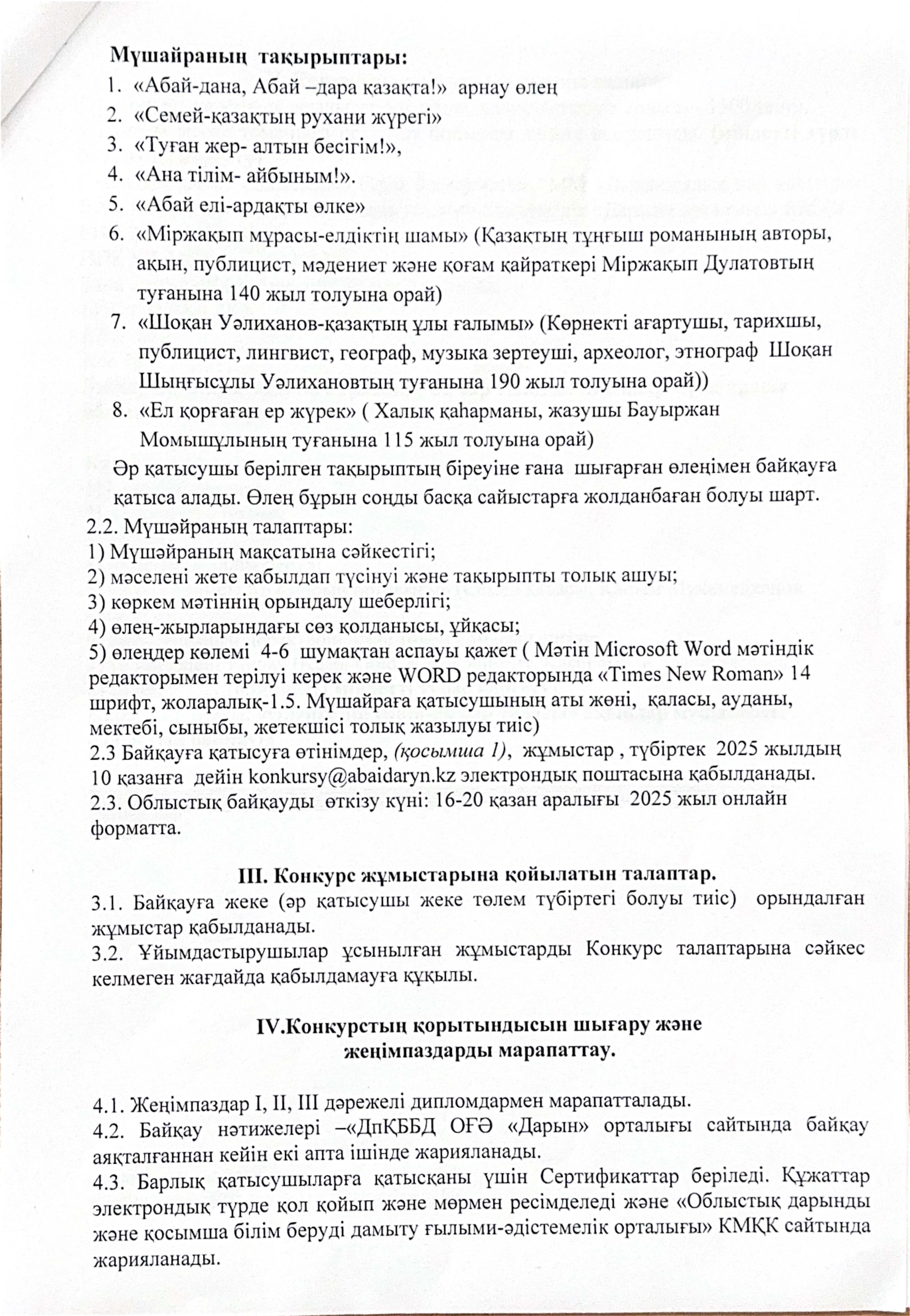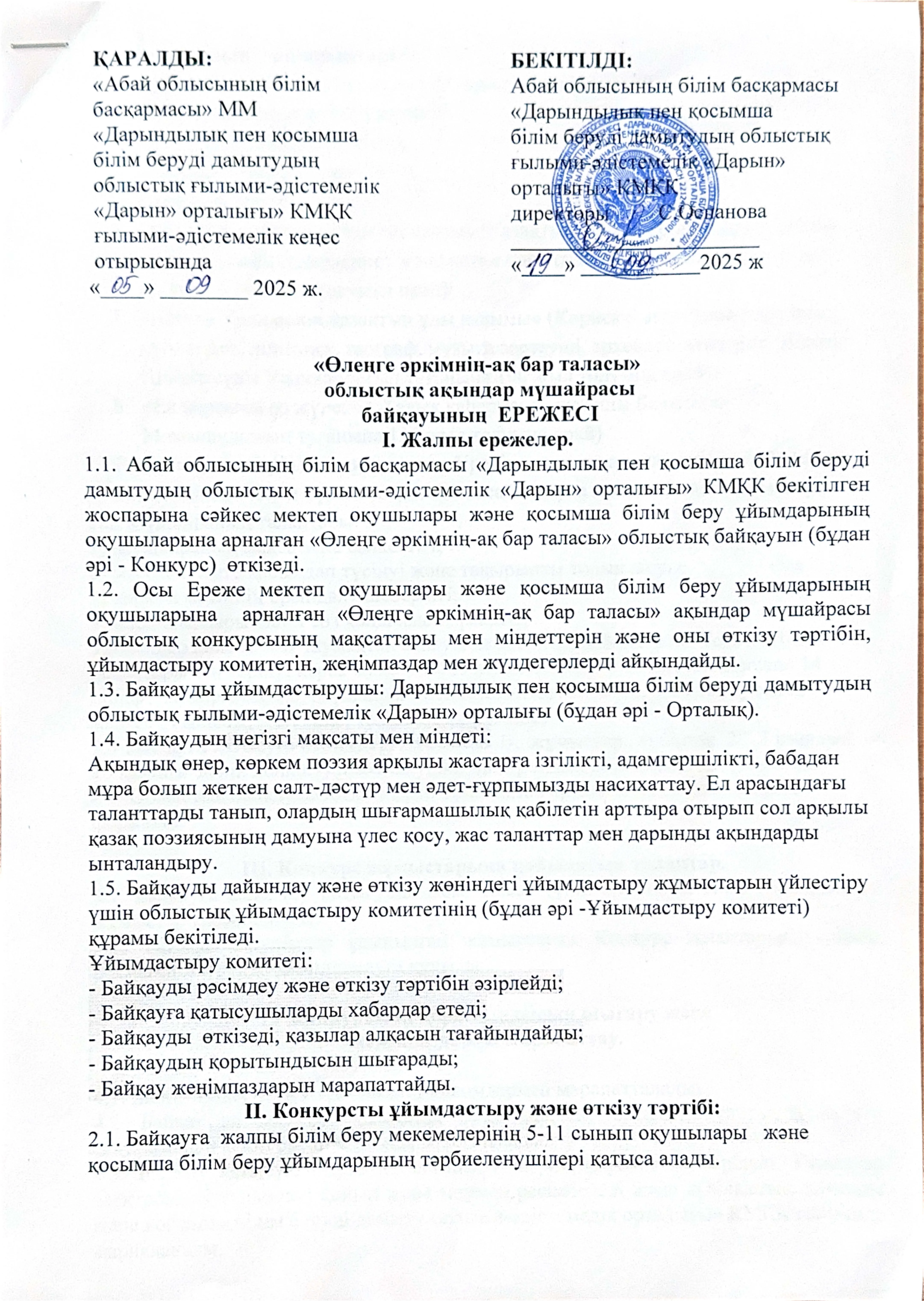 "Өлеңге әркімнің-ақ бар таласы" облыстық ақындар мүшәйрасы байқауының ЕРЕЖЕСІ