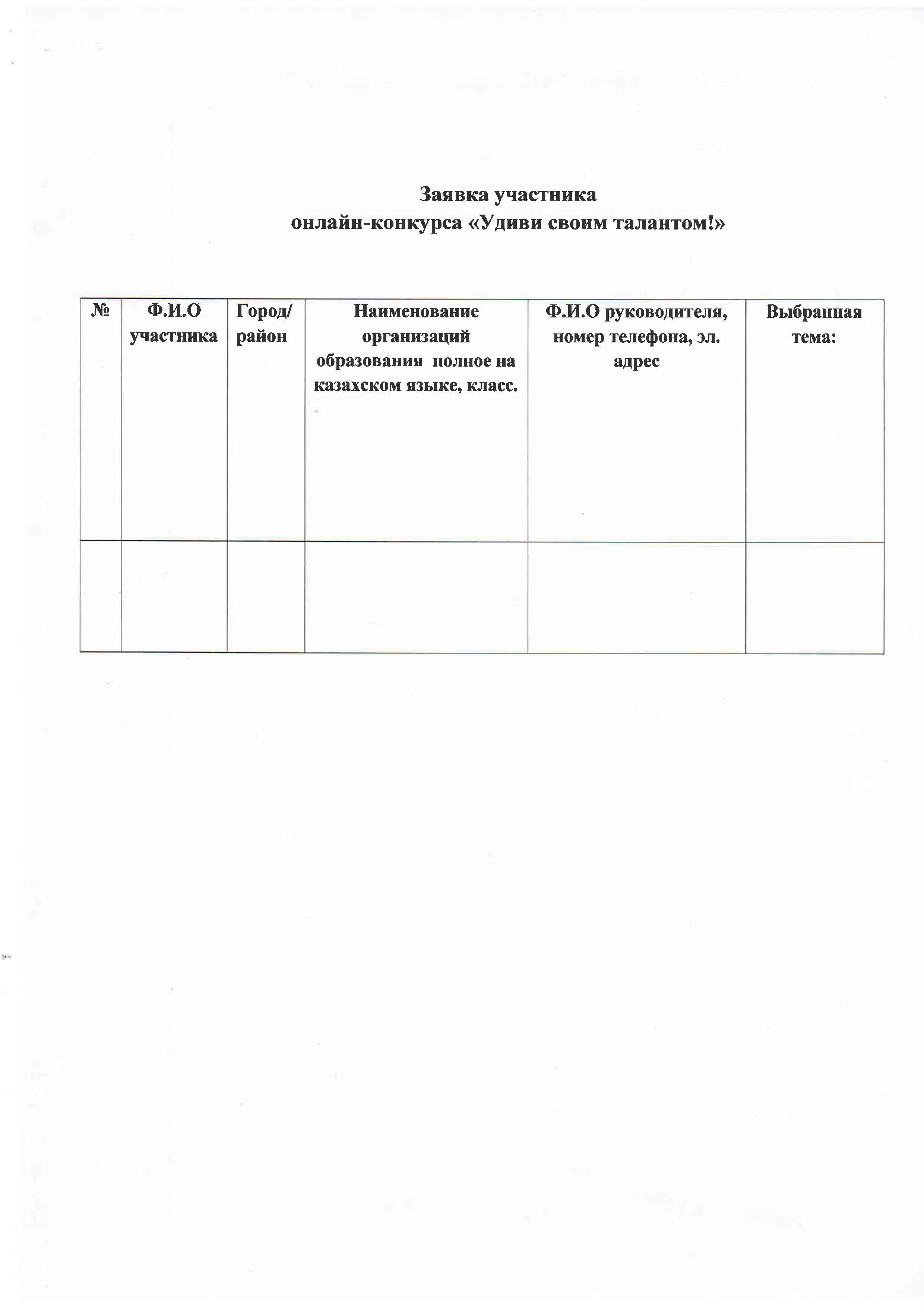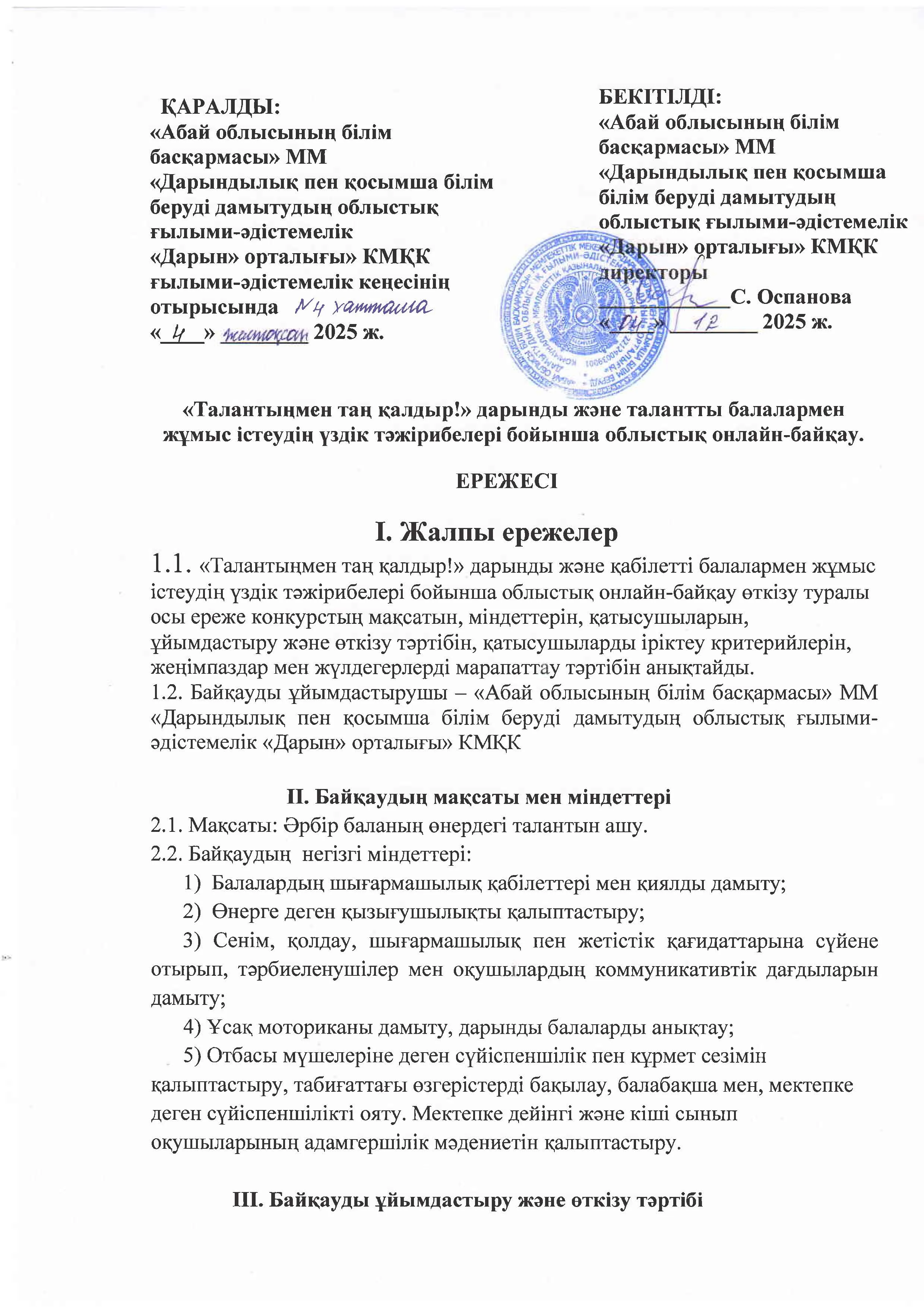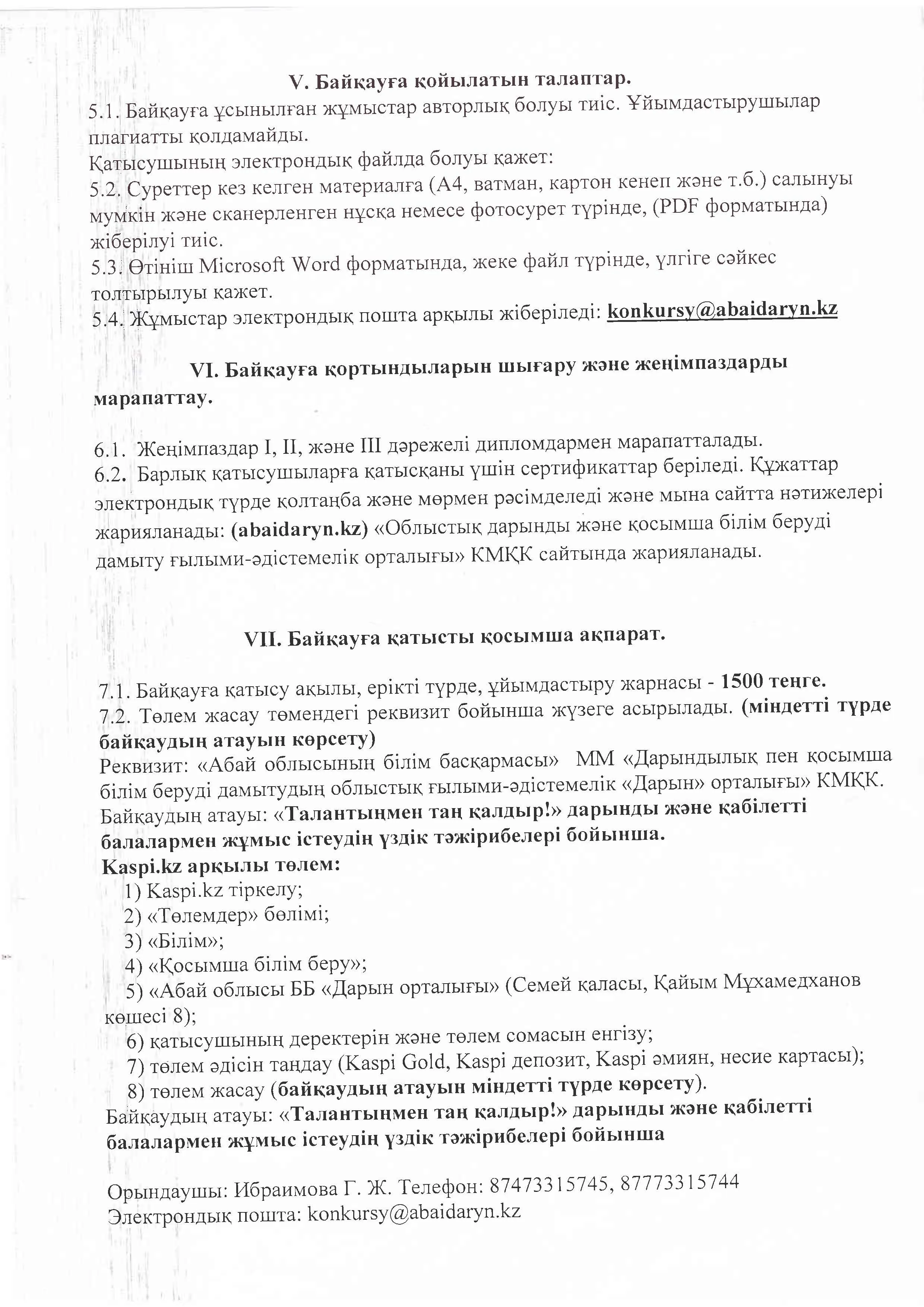«ТАЛАНТЫҢМЕН ТАҢ ҚАЛДЫР!» облыстық онлайн конкурсының ЕРЕЖЕСІ