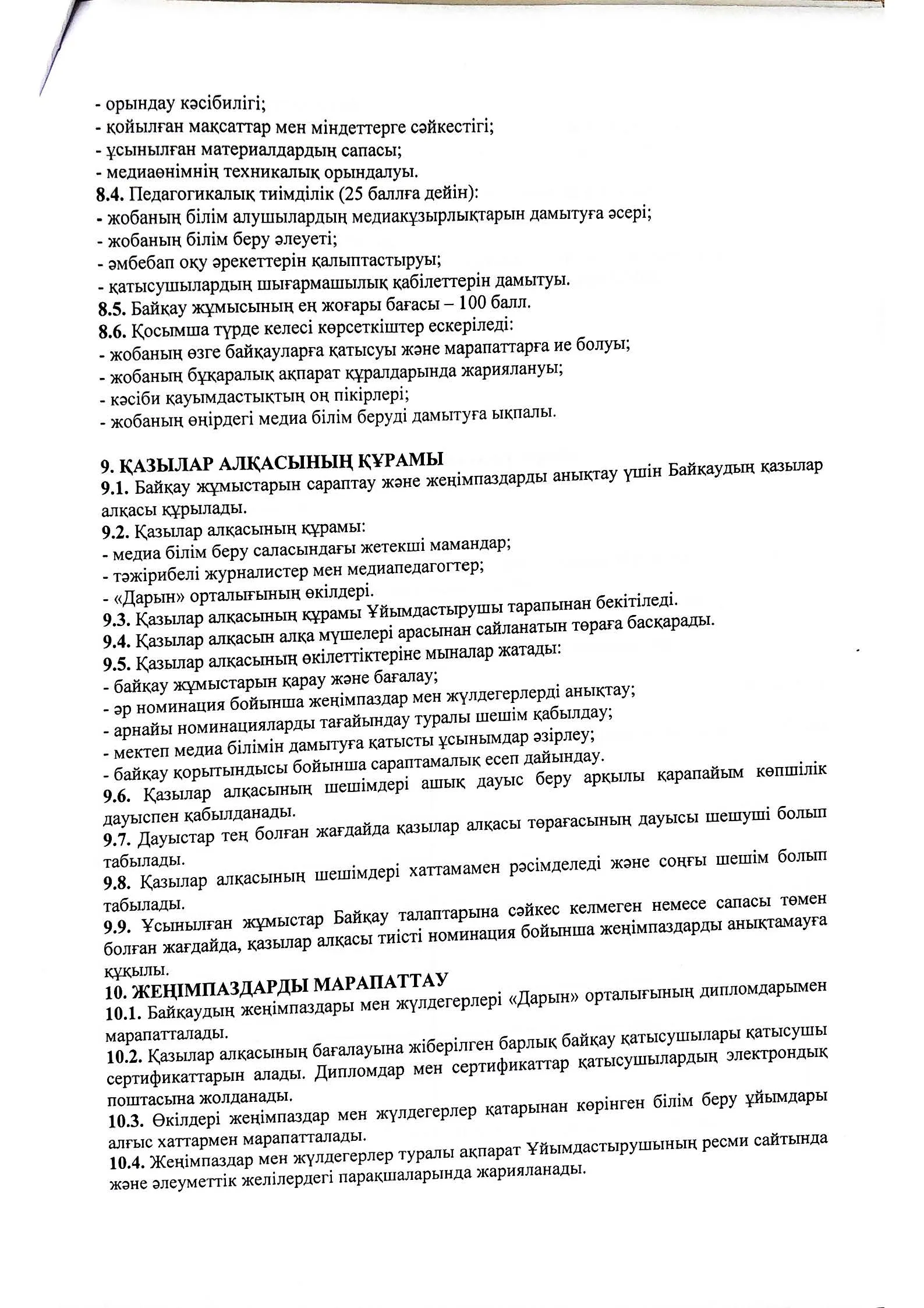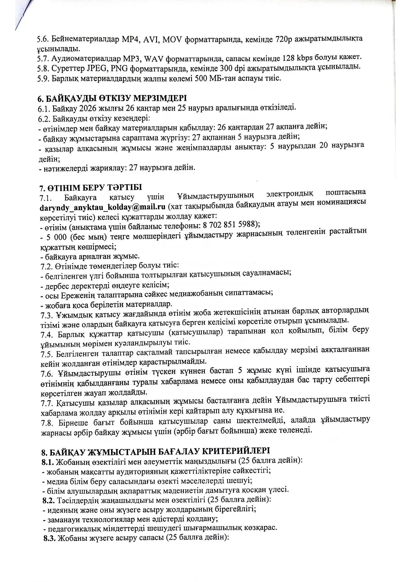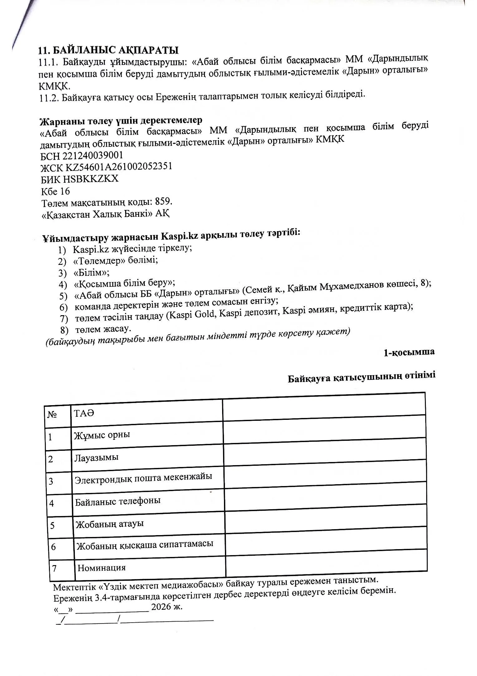 "ҮЗДІК МЕКТЕП МЕДИА ЖОБАСЫ" ОБЛЫСТЫҚ БАЙҚАУЫНЫҢ ЕРЕЖЕСІ