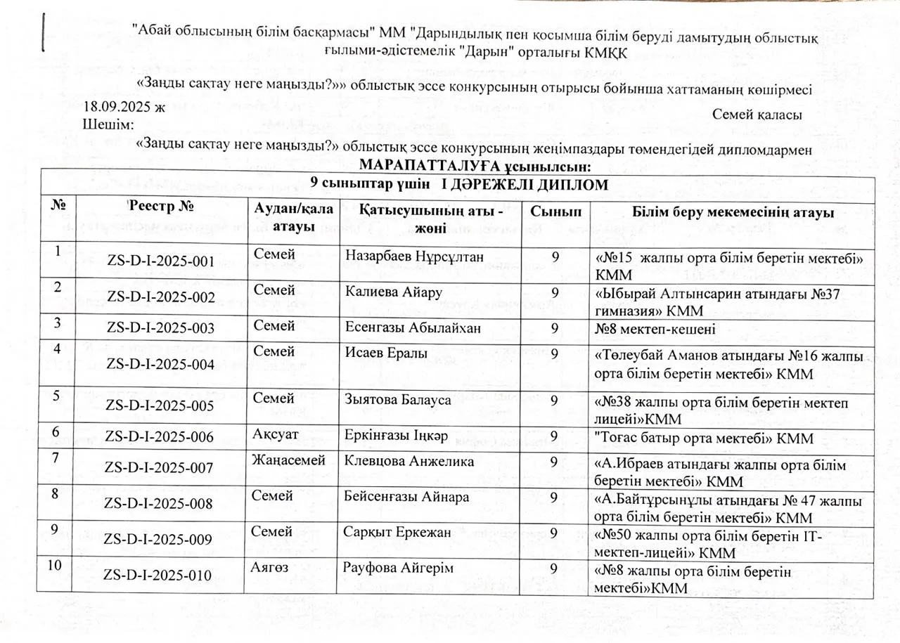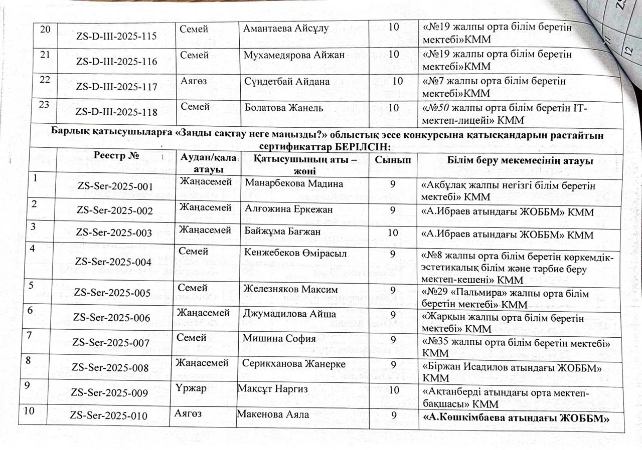 «Заңды сақтау неге маңызды?» облыстық эссе конкурсы