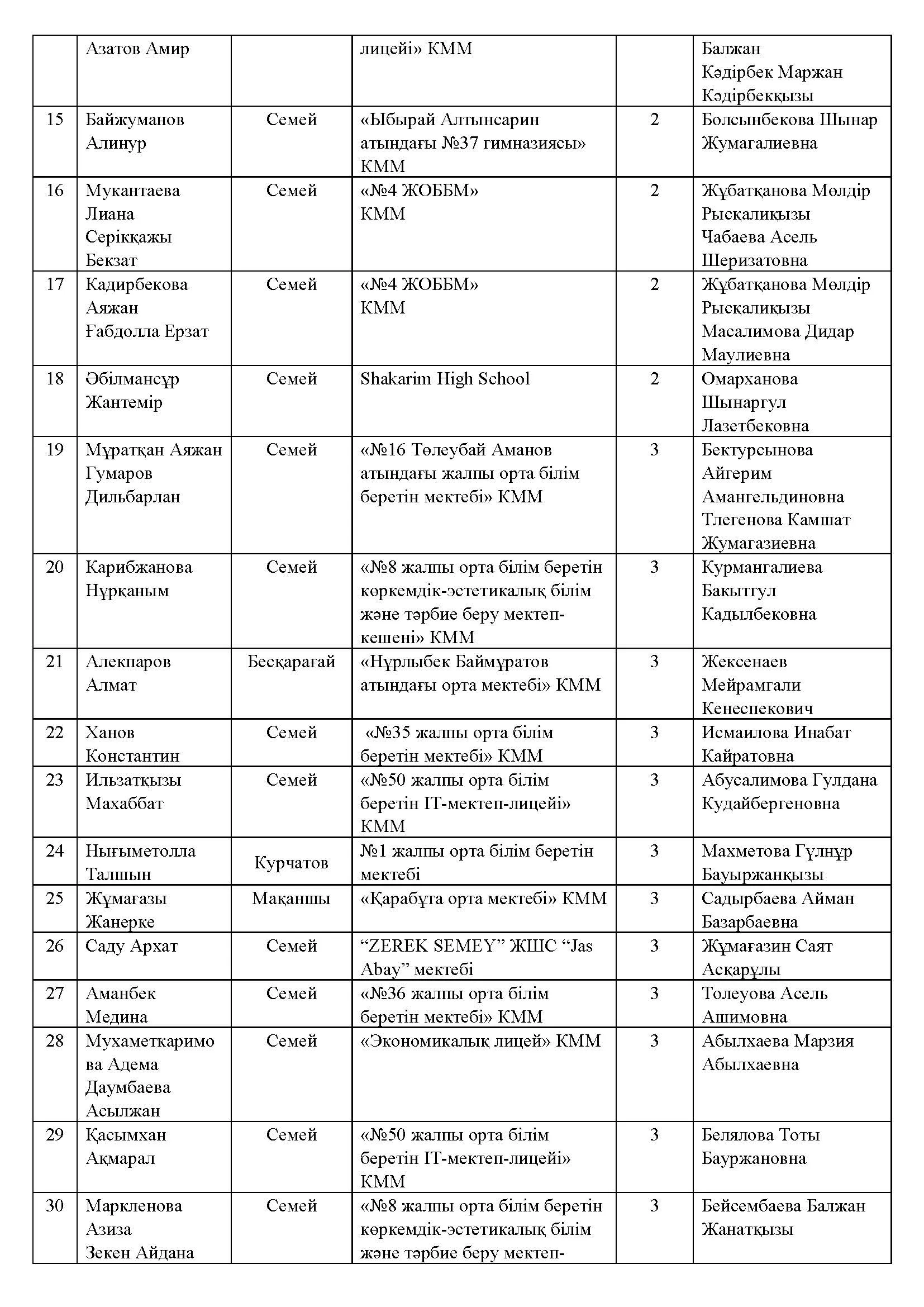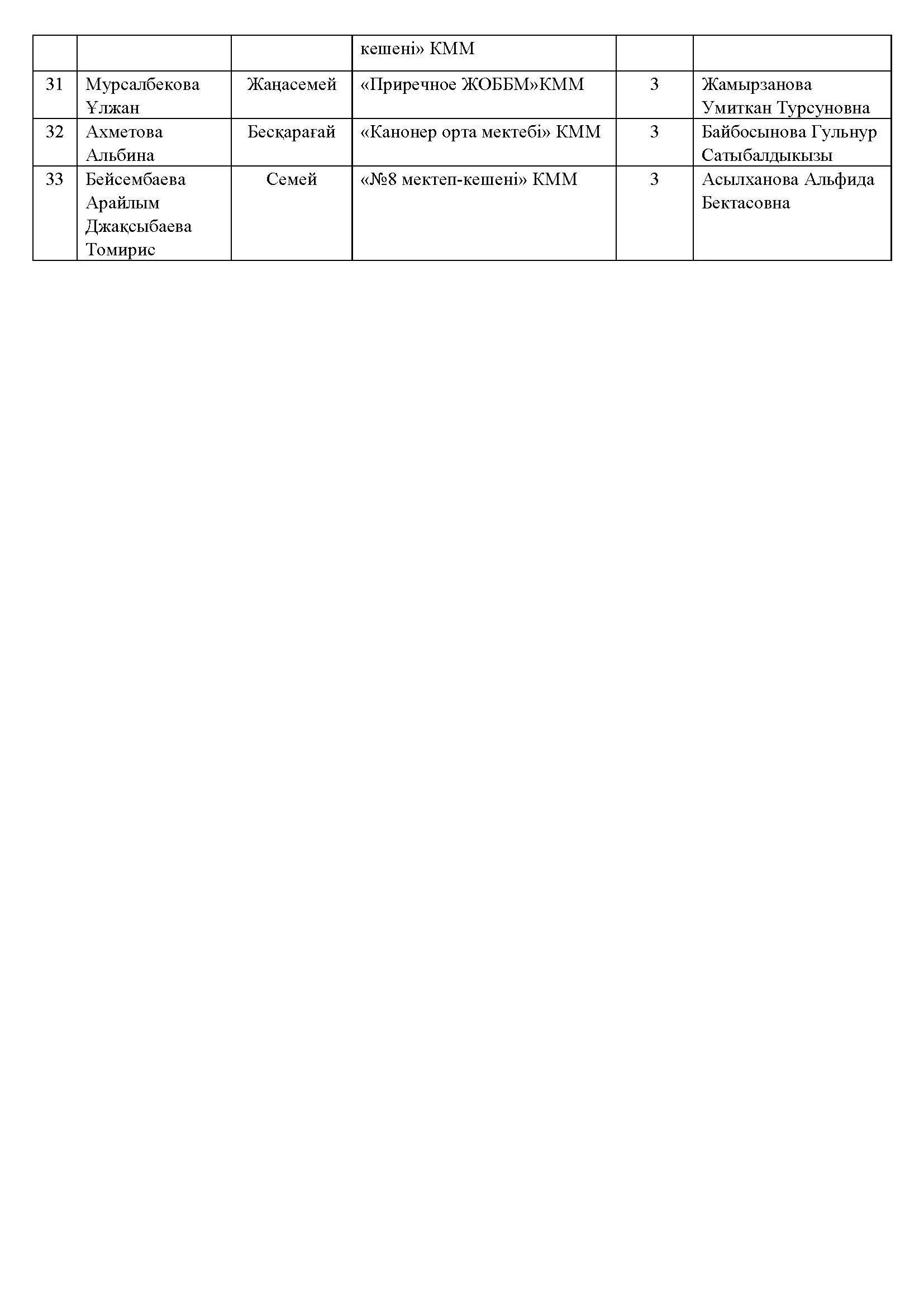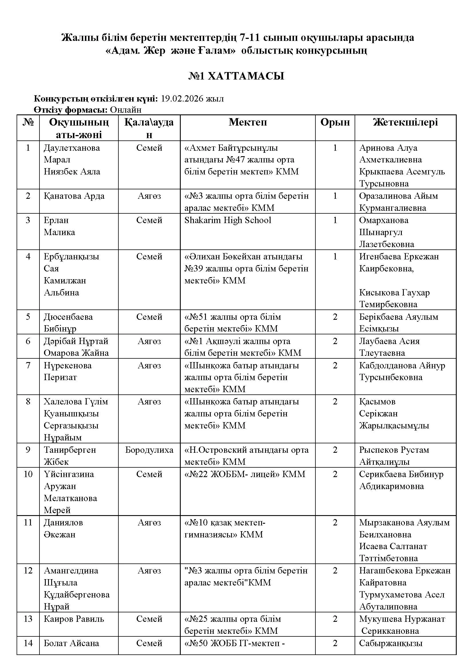 Жалпы білім беретін мектептердің 7-11 сынып оқушылары арасында «Адам. Жер және Ғалам» облыстық конкурсының хаттамасы