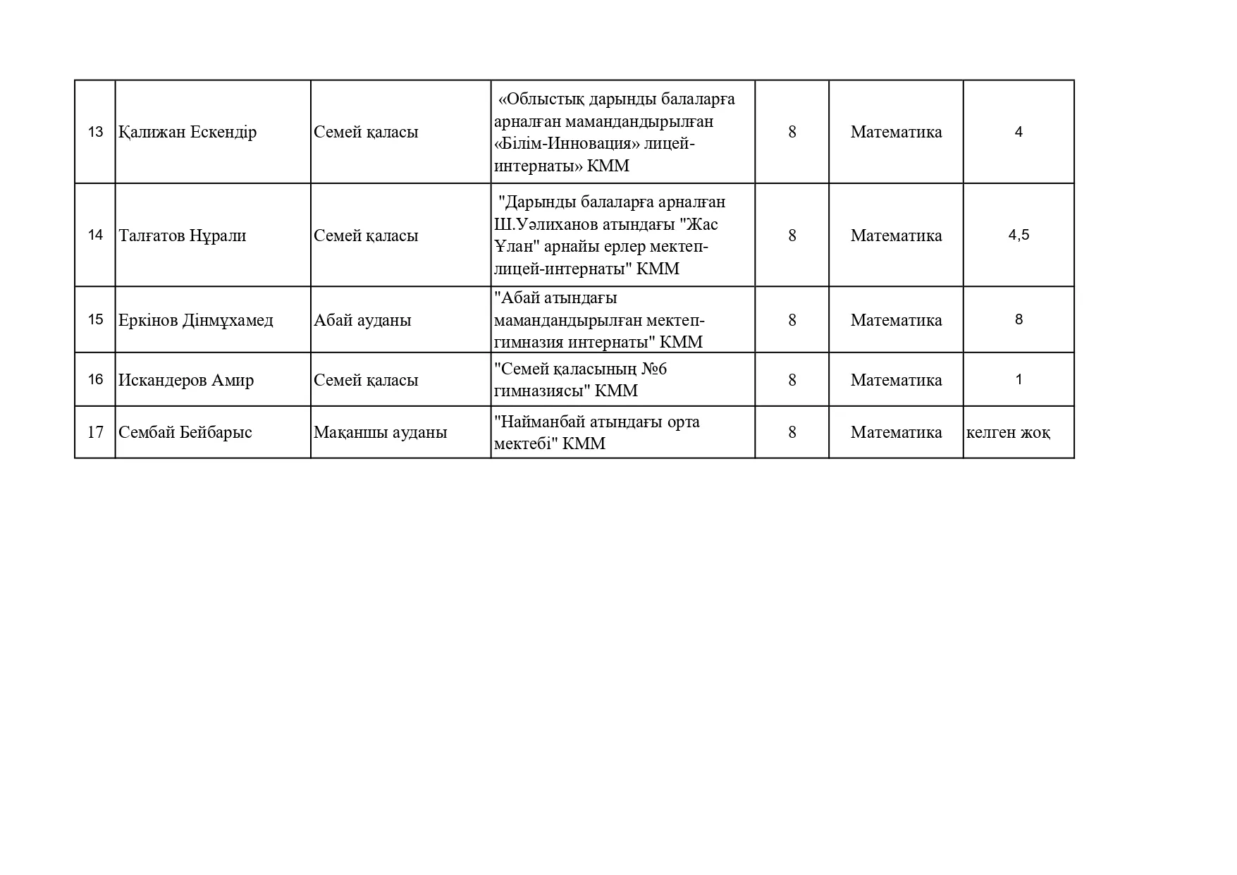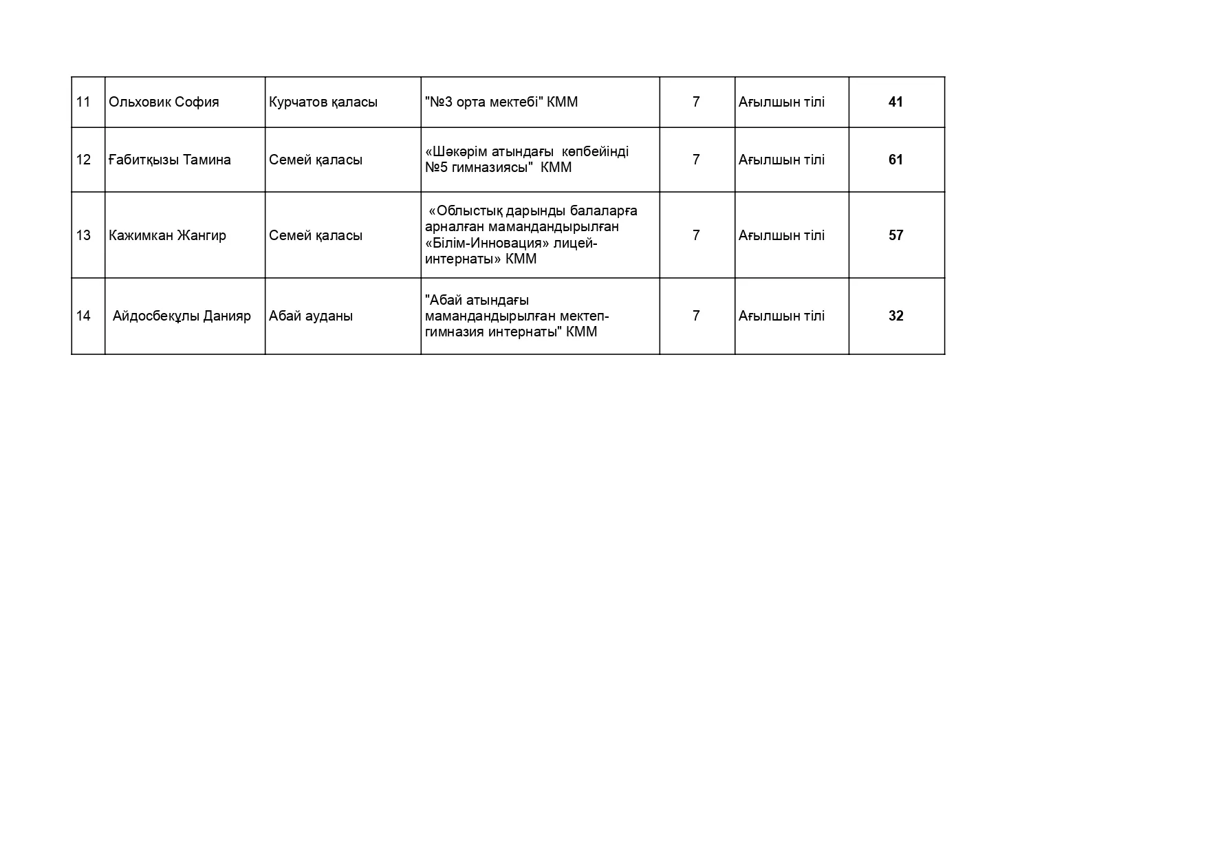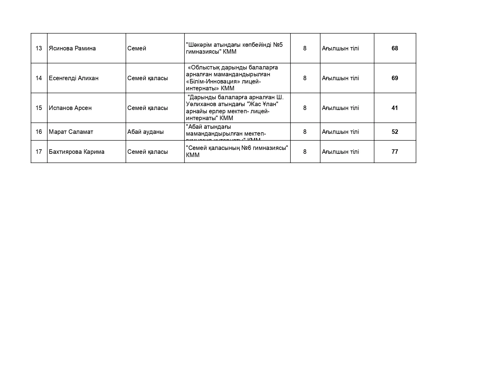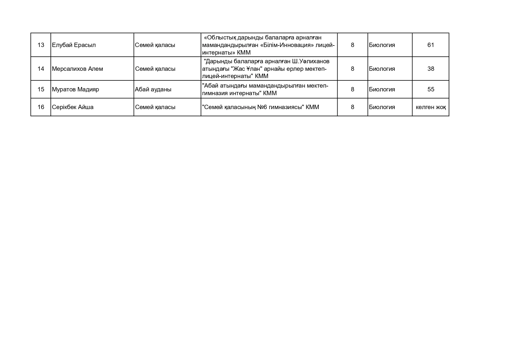 Жалпы білім беретін пәндер бойынша 7-8 сынып оқушыларына арналған республикалық олимпиаданың облыстық кезеңінің хаттамасы Дарын Орталығы 06.02.2026