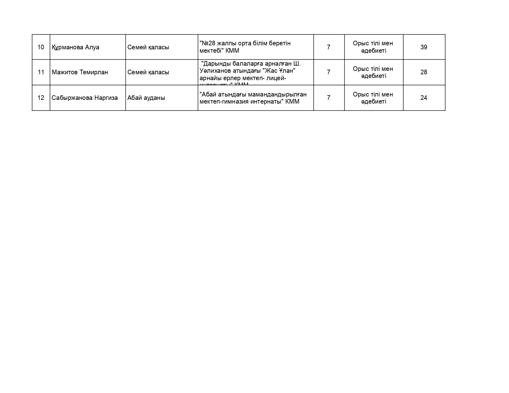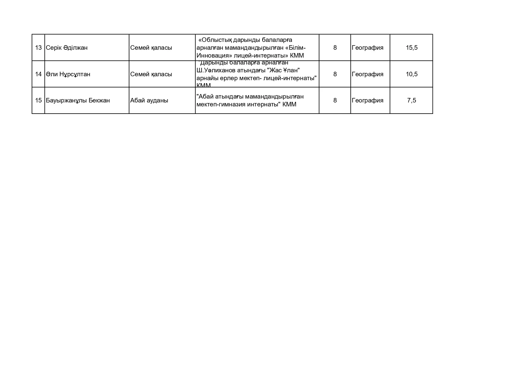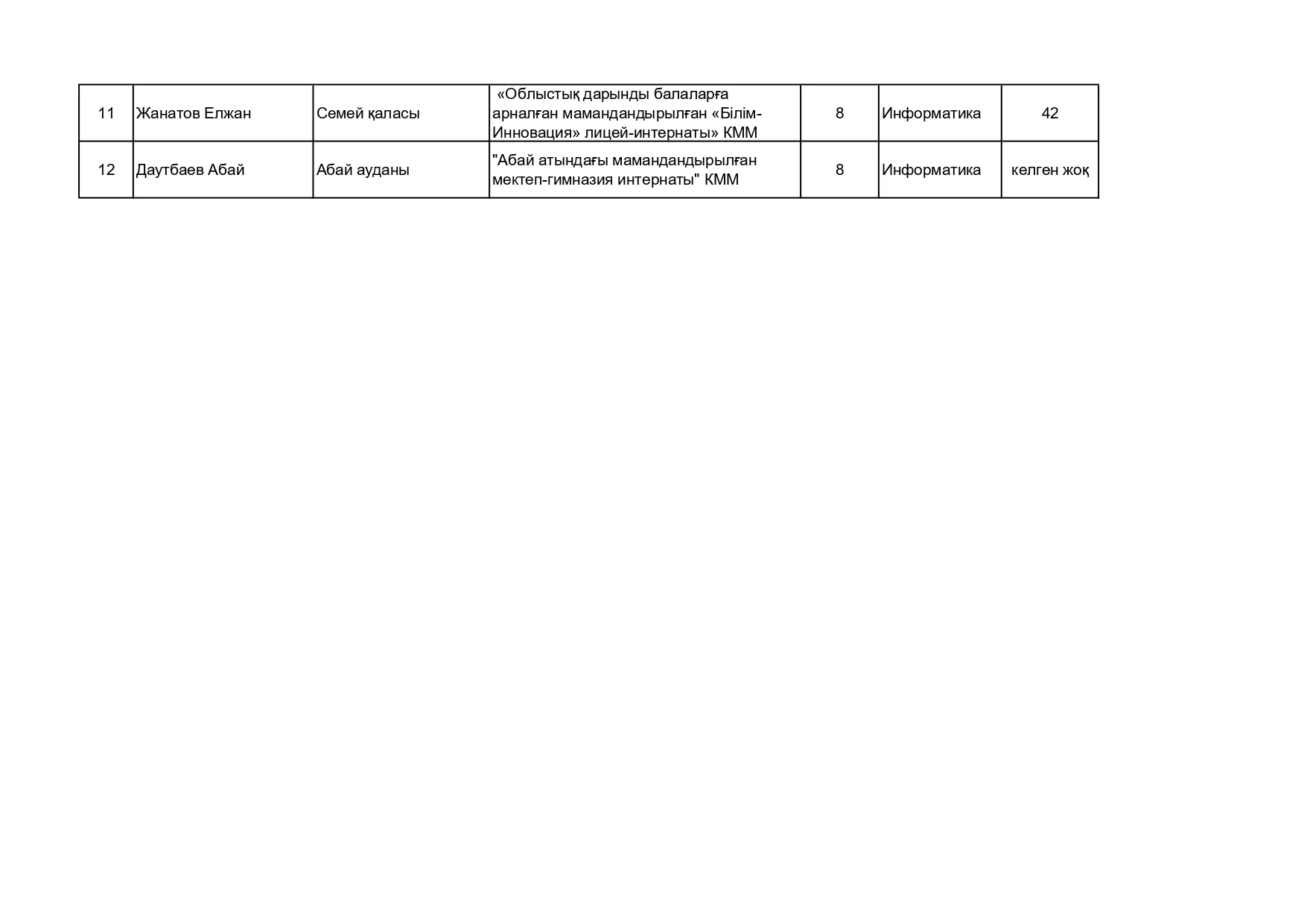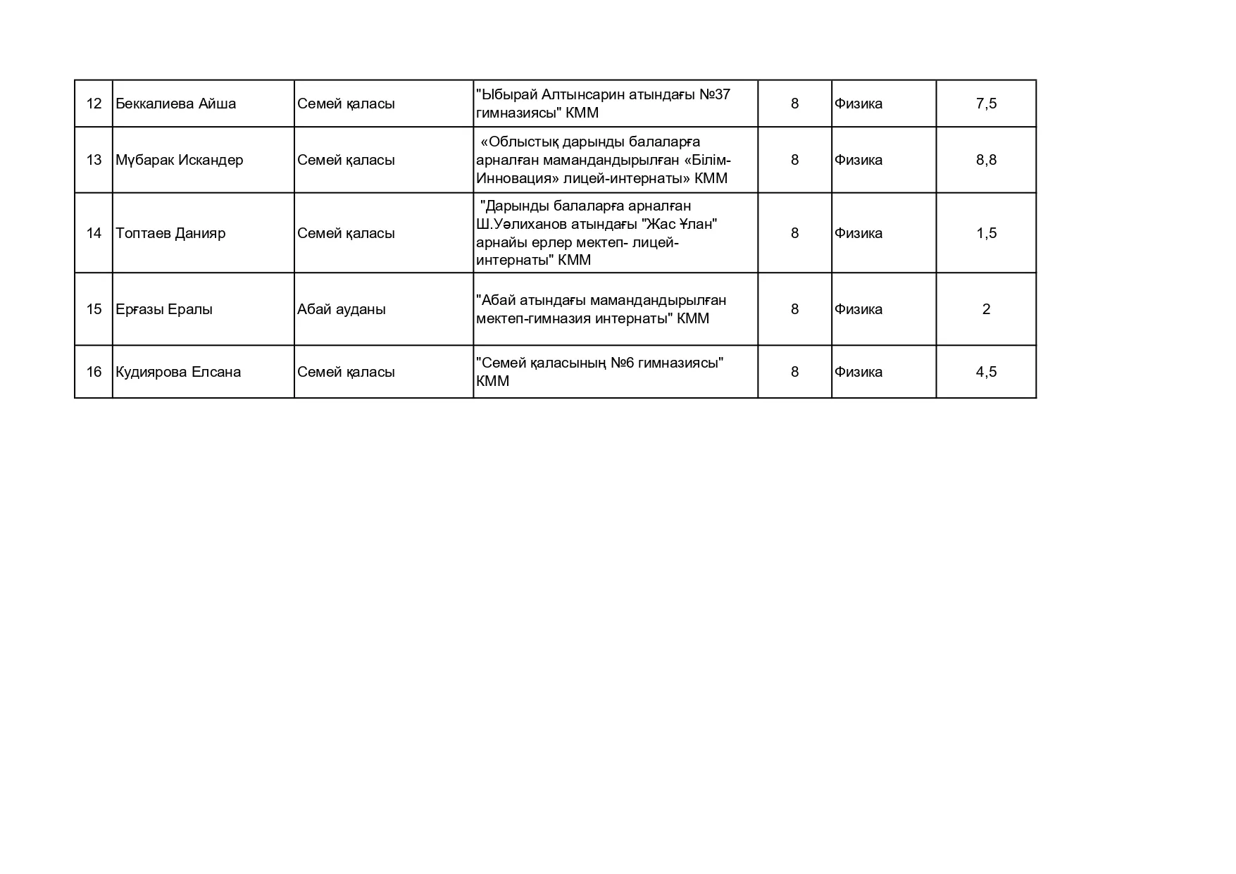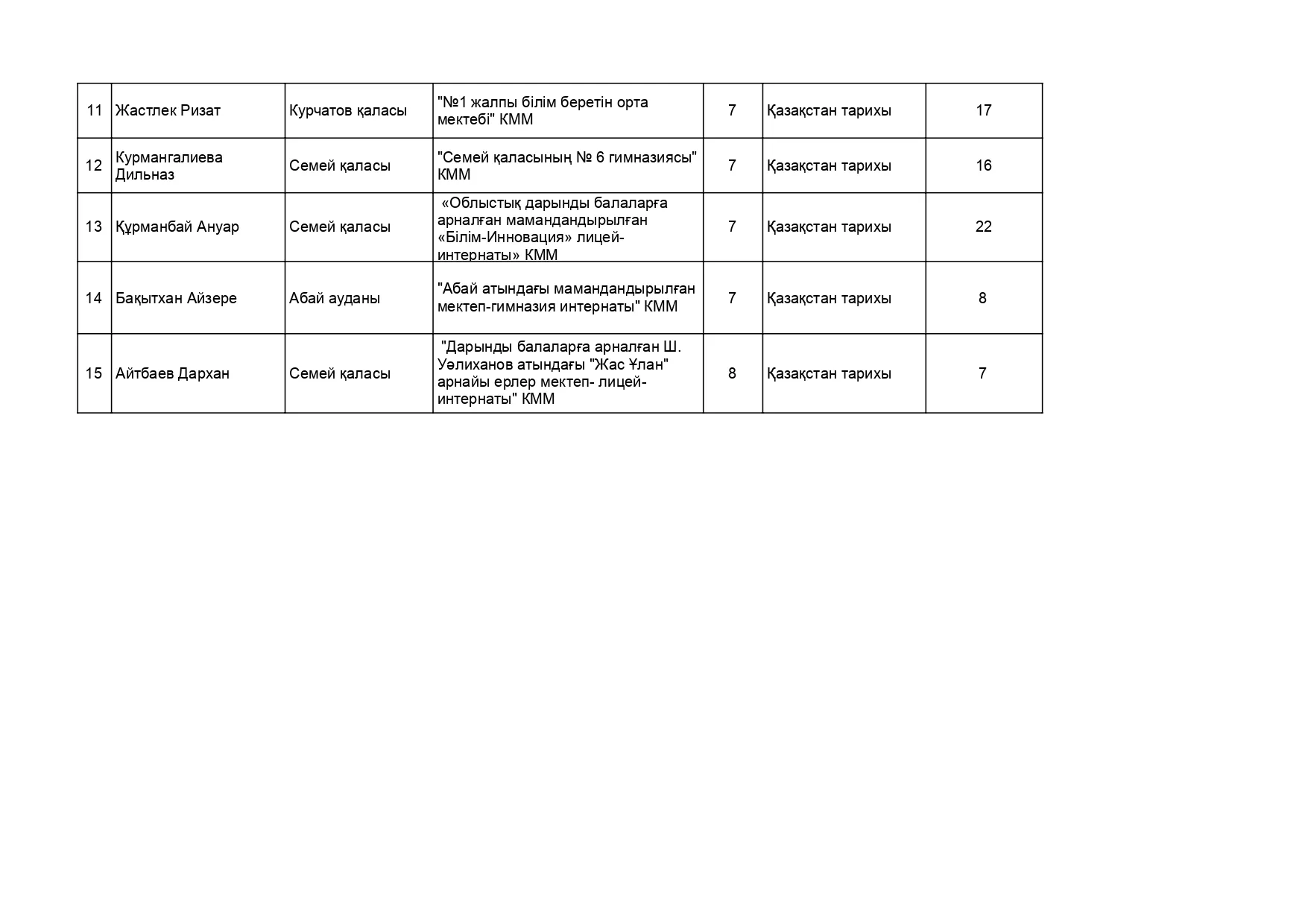 Жалпы білім беретін пәндер бойынша 7-8 сынып оқушыларына арналған республикалық олимпиаданың облыстық кезеңінің хаттамасы Дарын Орталығы 06.02.2026
