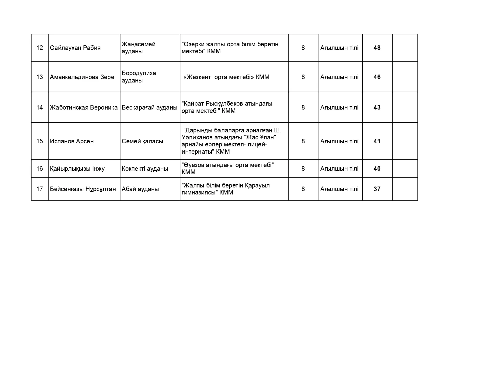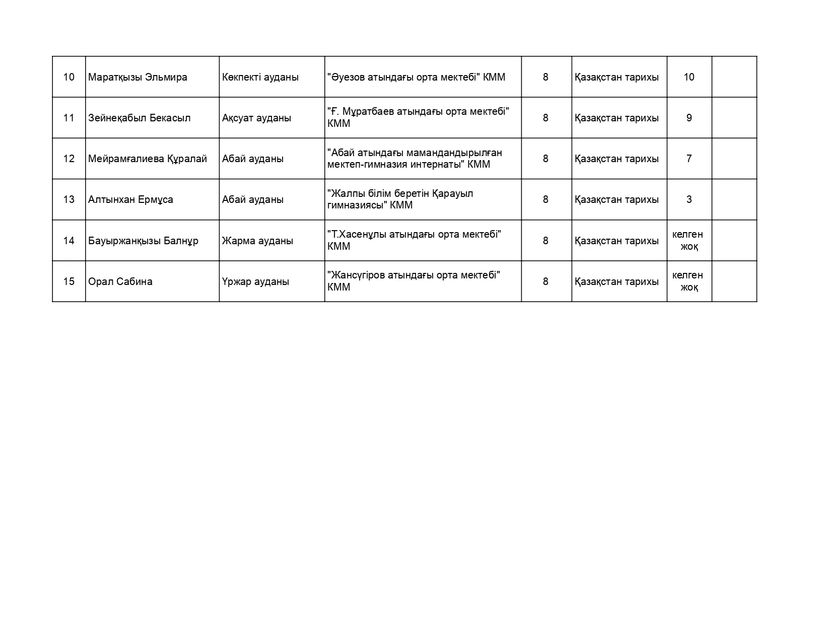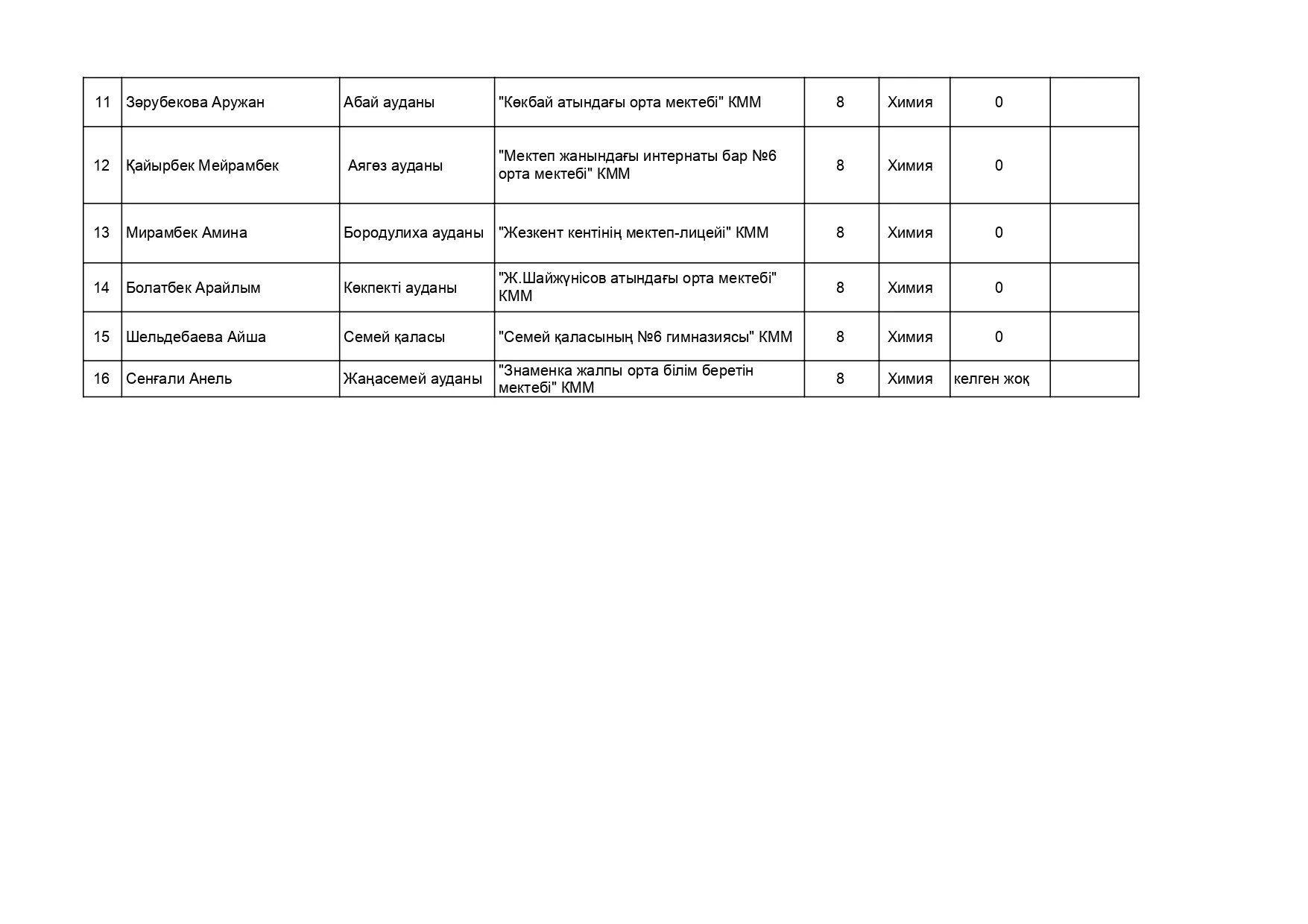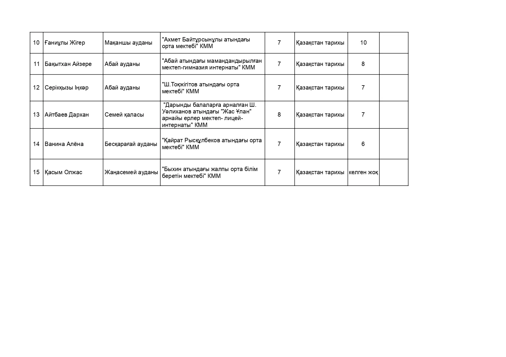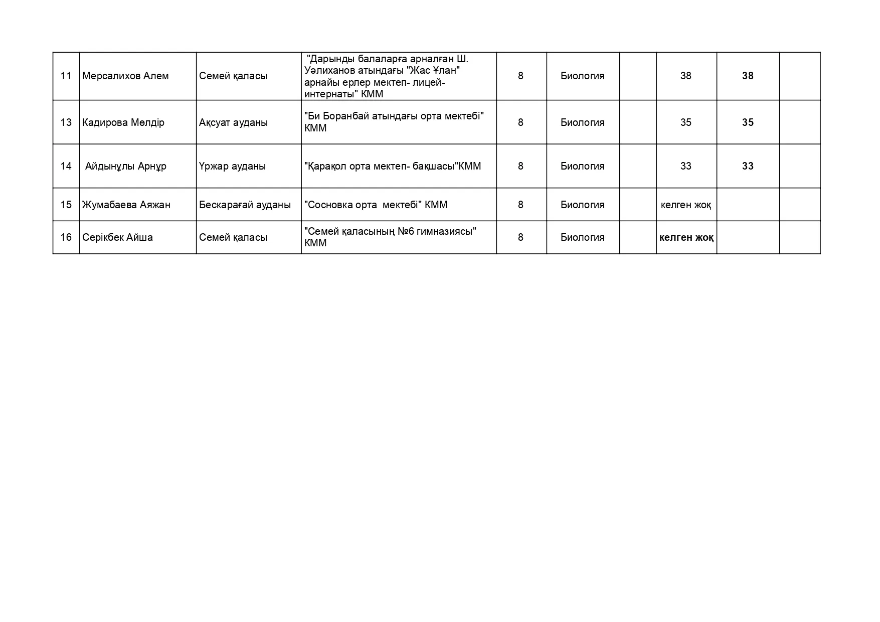 Жалпы білім беретін пәндер бойынша 7-8 сынып оқушыларына арналған республикалық олимпиаданың облыстық кезеңінің қорытынды хаттамасы Дарын Орталығы 07.02.2026