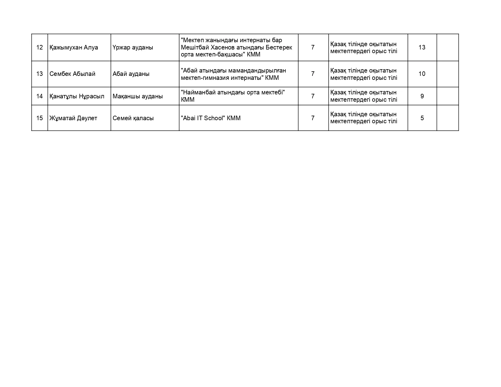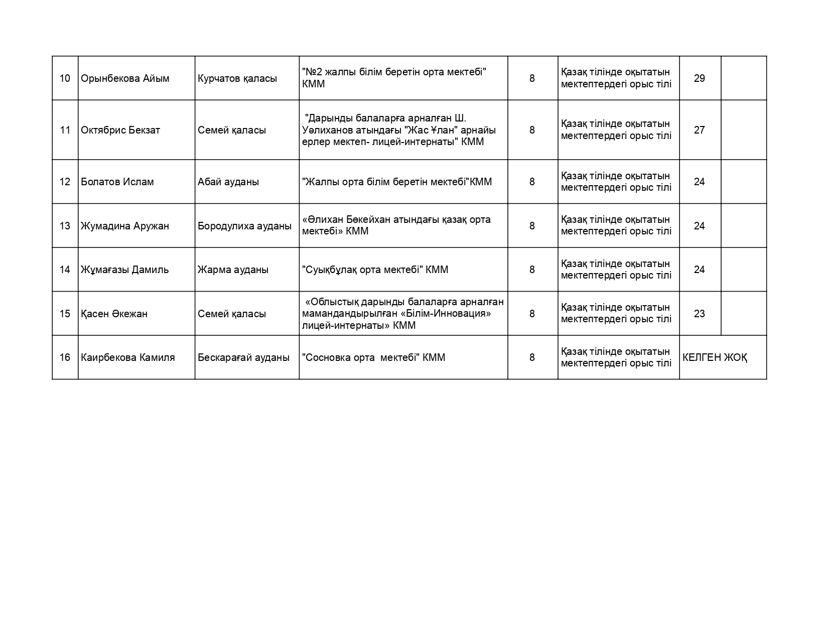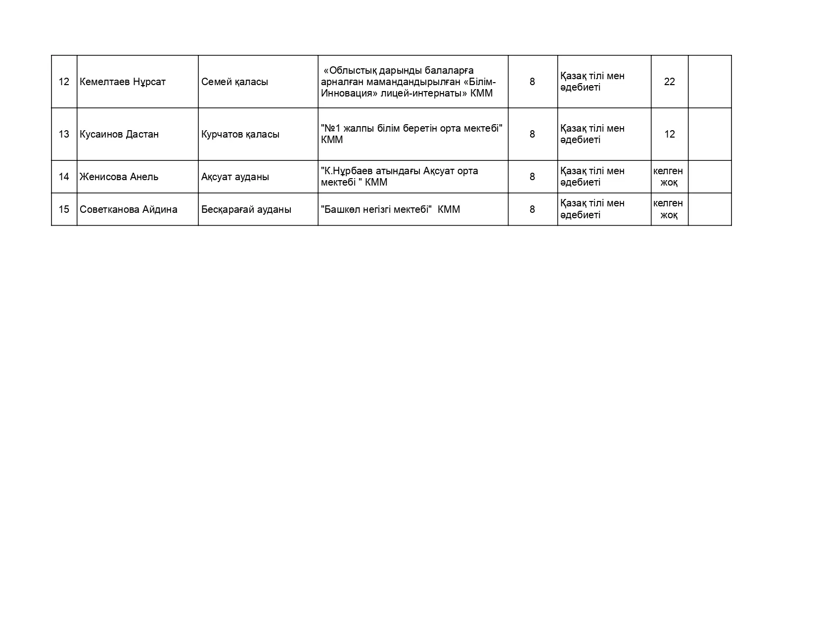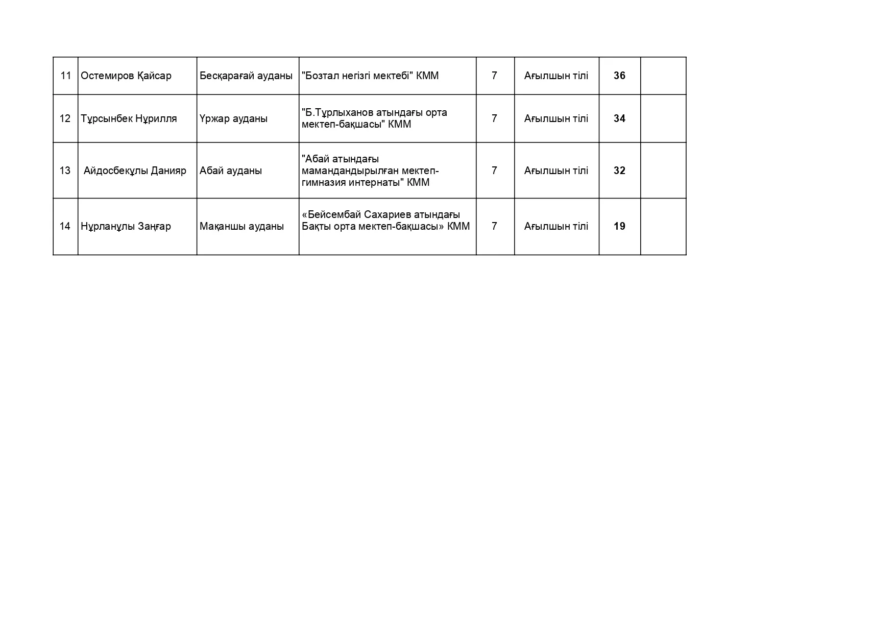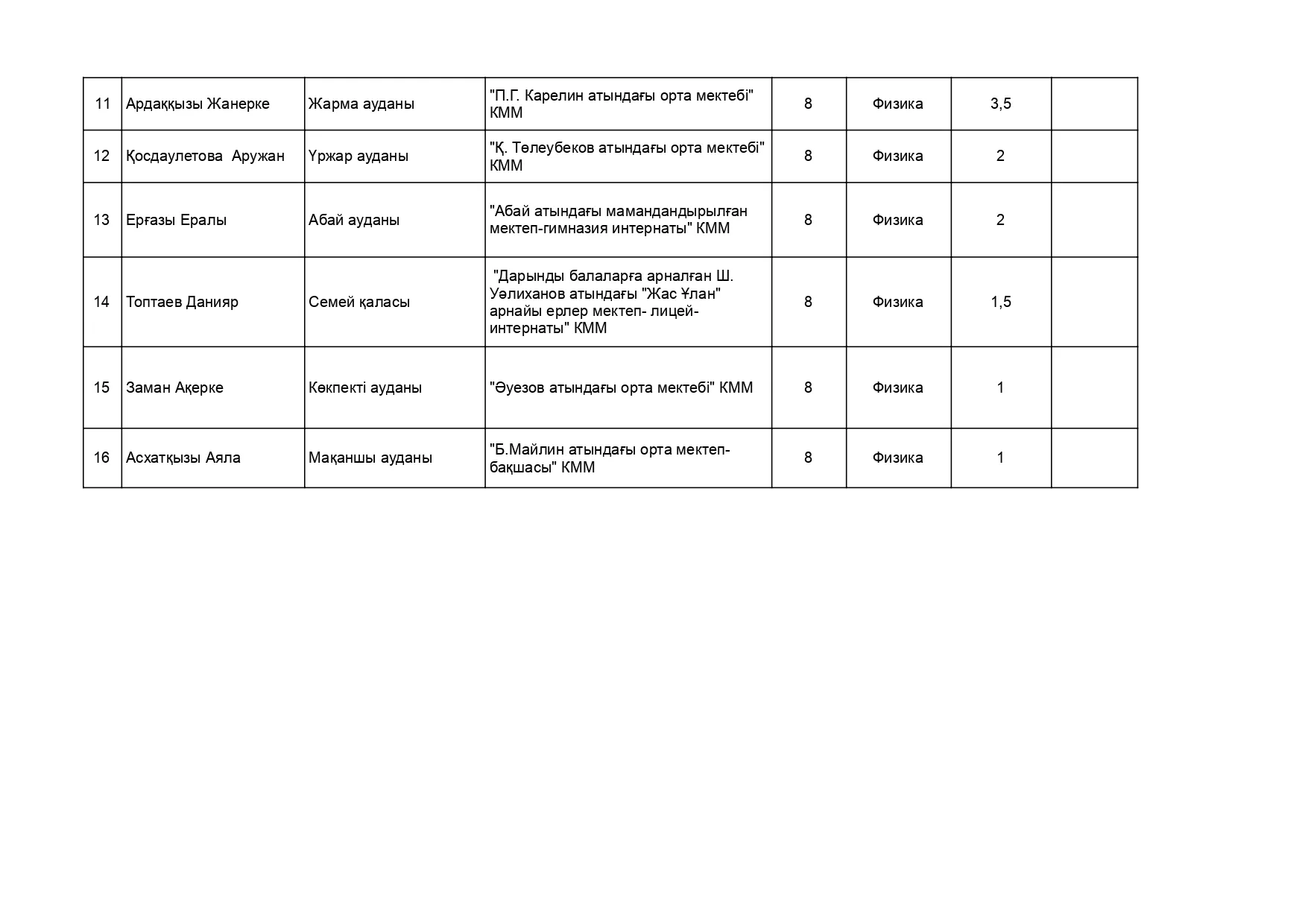 Жалпы білім беретін пәндер бойынша 7-8 сынып оқушыларына арналған республикалық олимпиаданың облыстық кезеңінің қорытынды хаттамасы Дарын Орталығы 07.02.2026