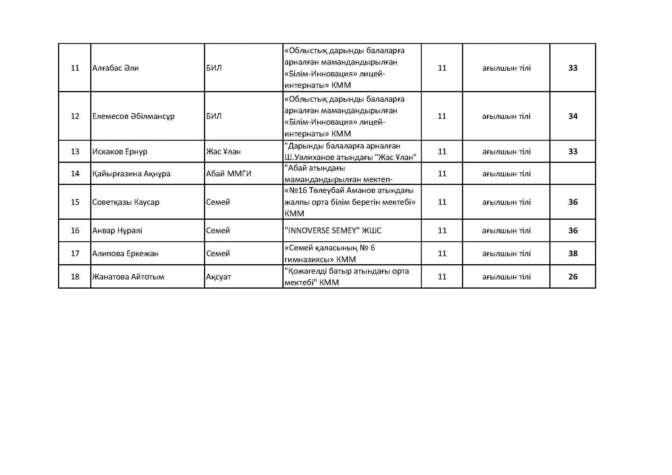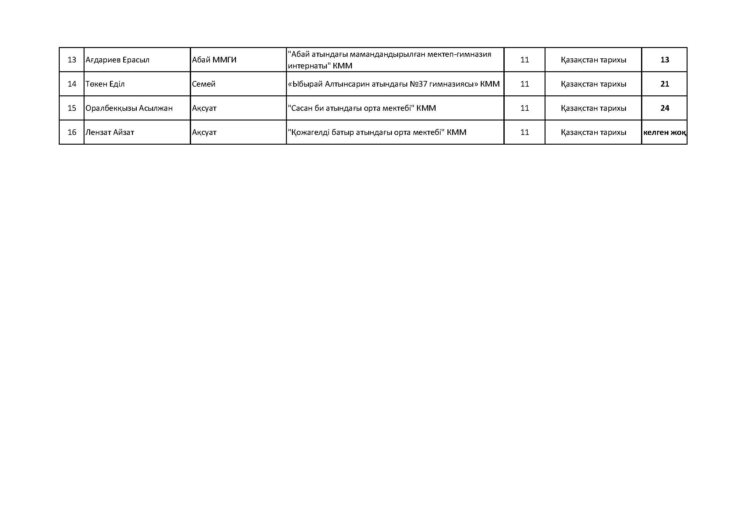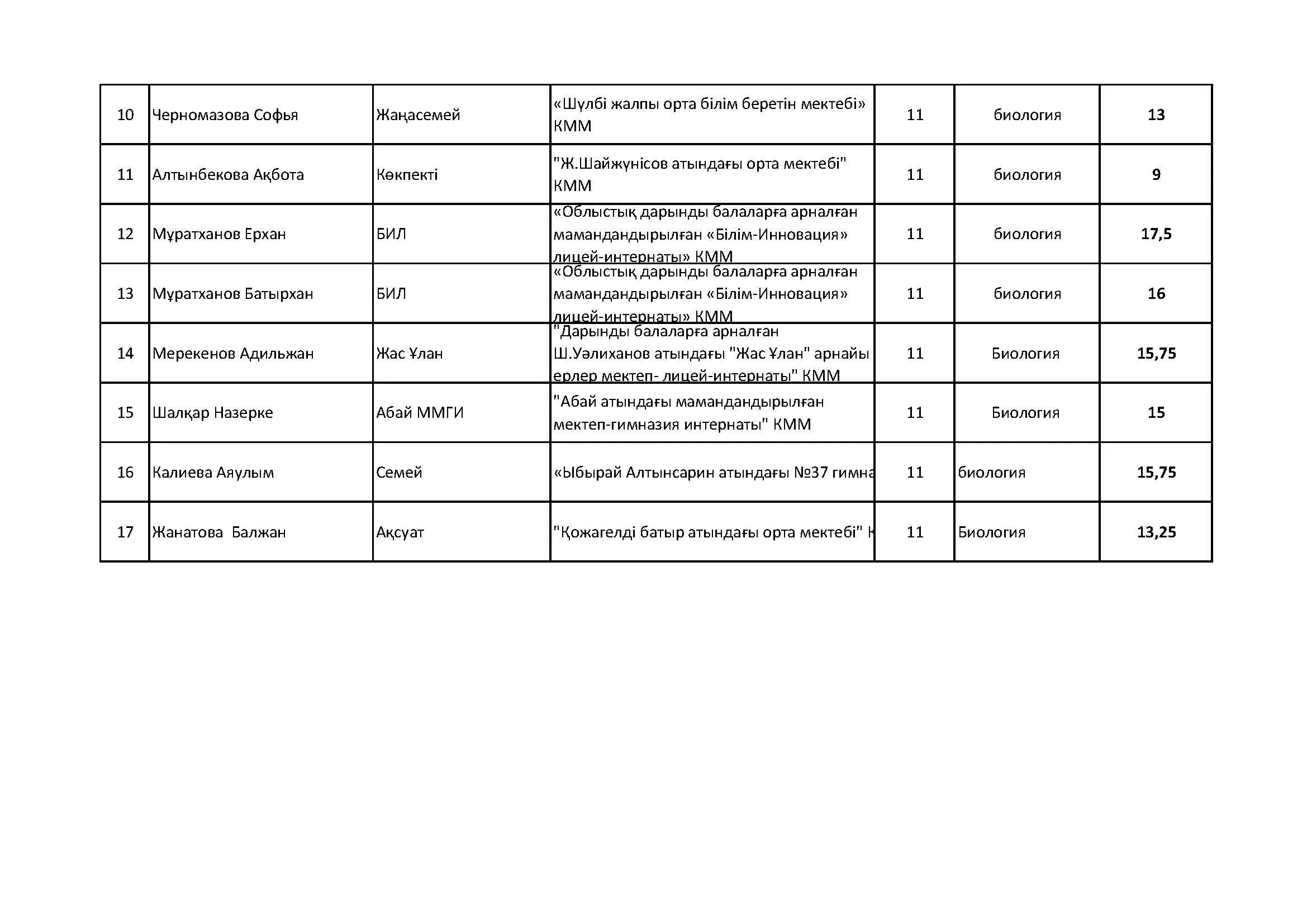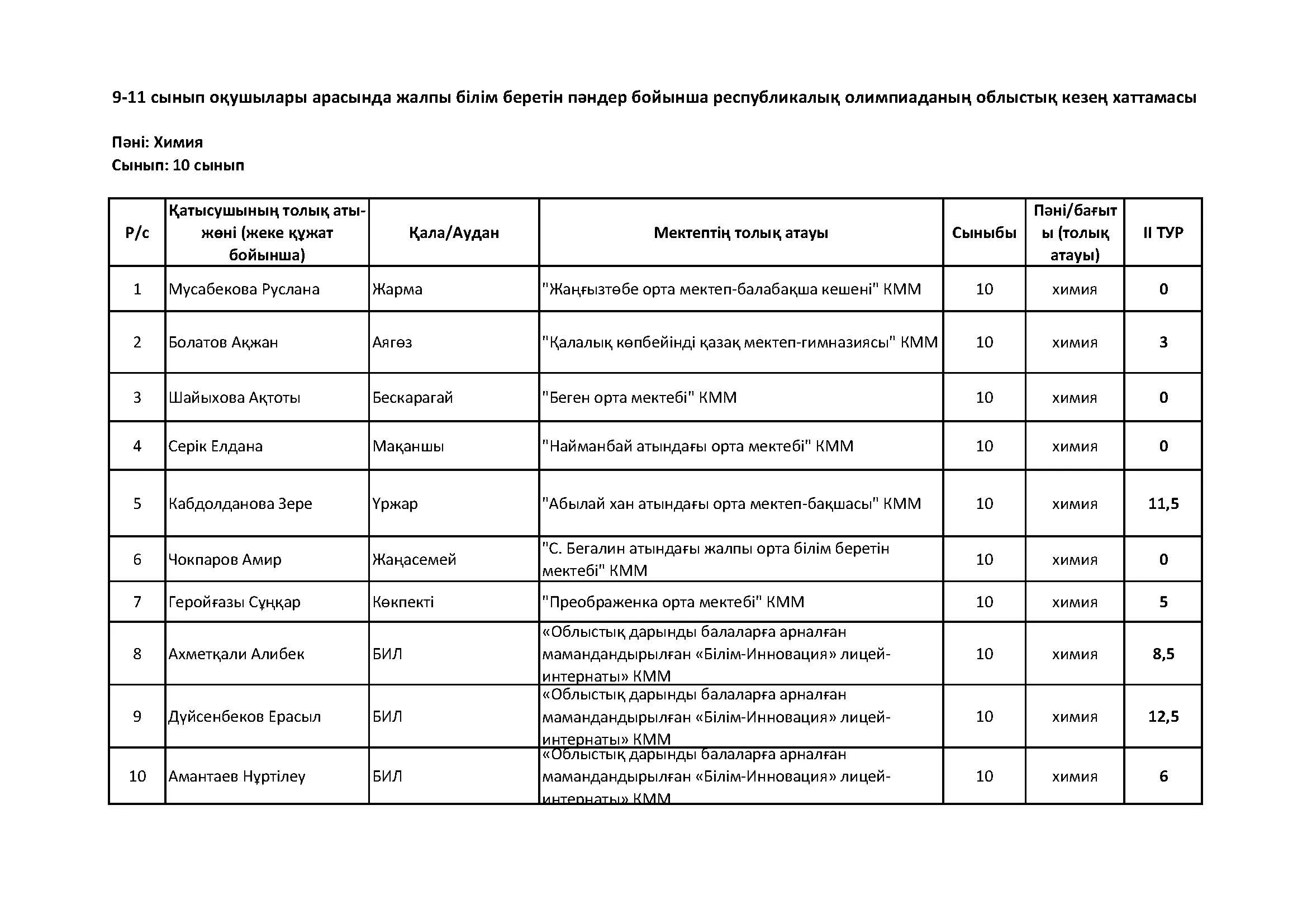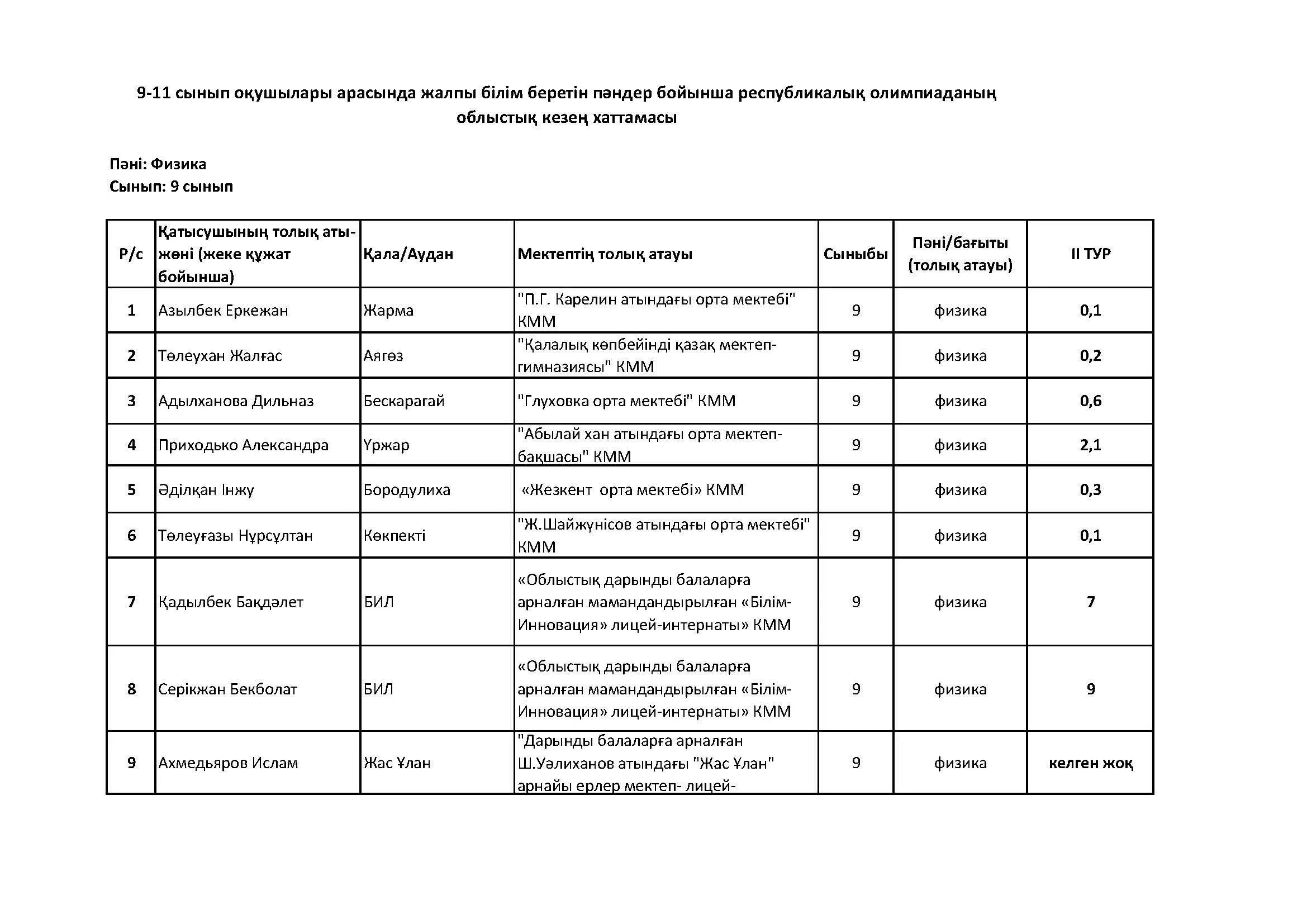 Жалпы білім беретін пәндер бойынша республикалық олимпиаданың облыстық кезеңінің қорытындысы (2 тур) Дарын Орталығы 07.01.2026