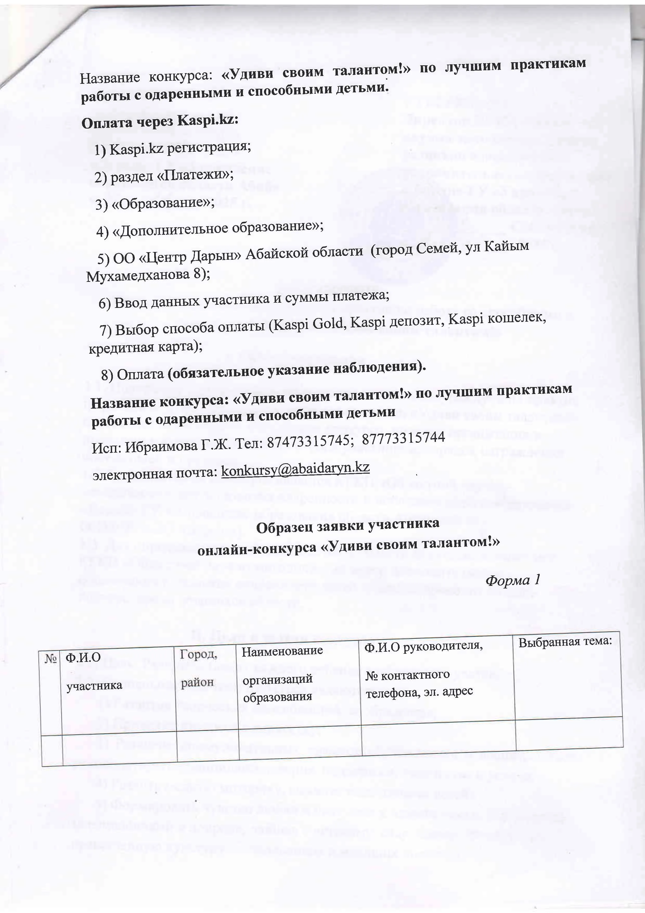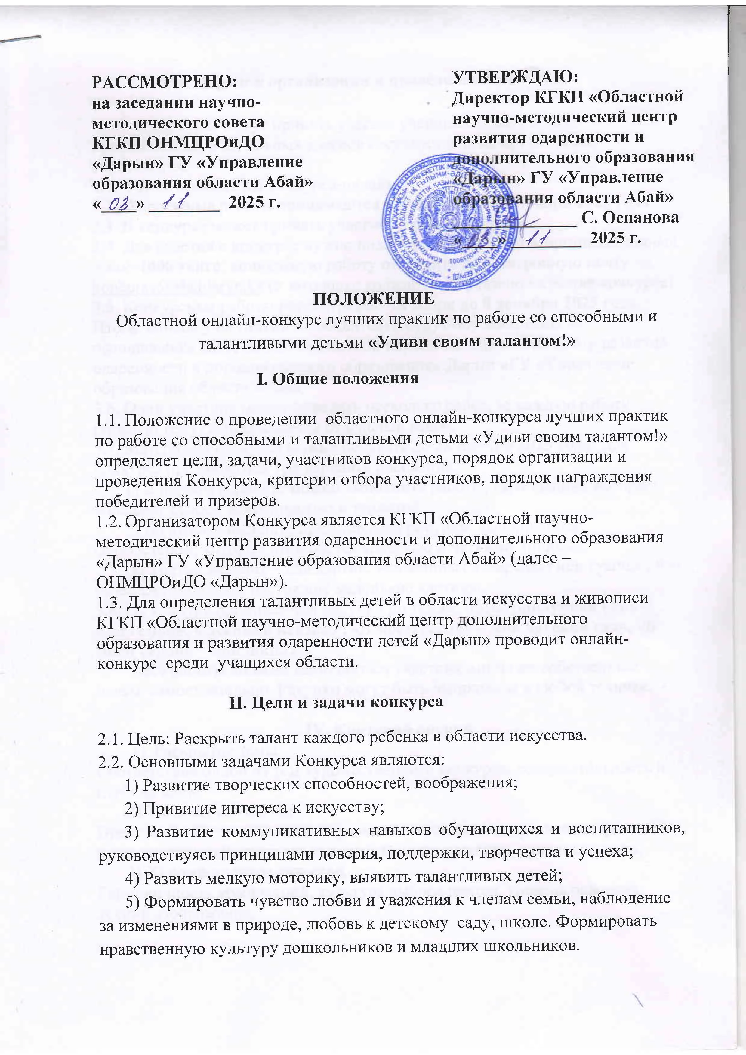Положение областной онлайн-конкурс лучших практик по работе со способными и талантливыми детьми «Удиви своим талантом!» Дарын Орталығы 04.11.2025