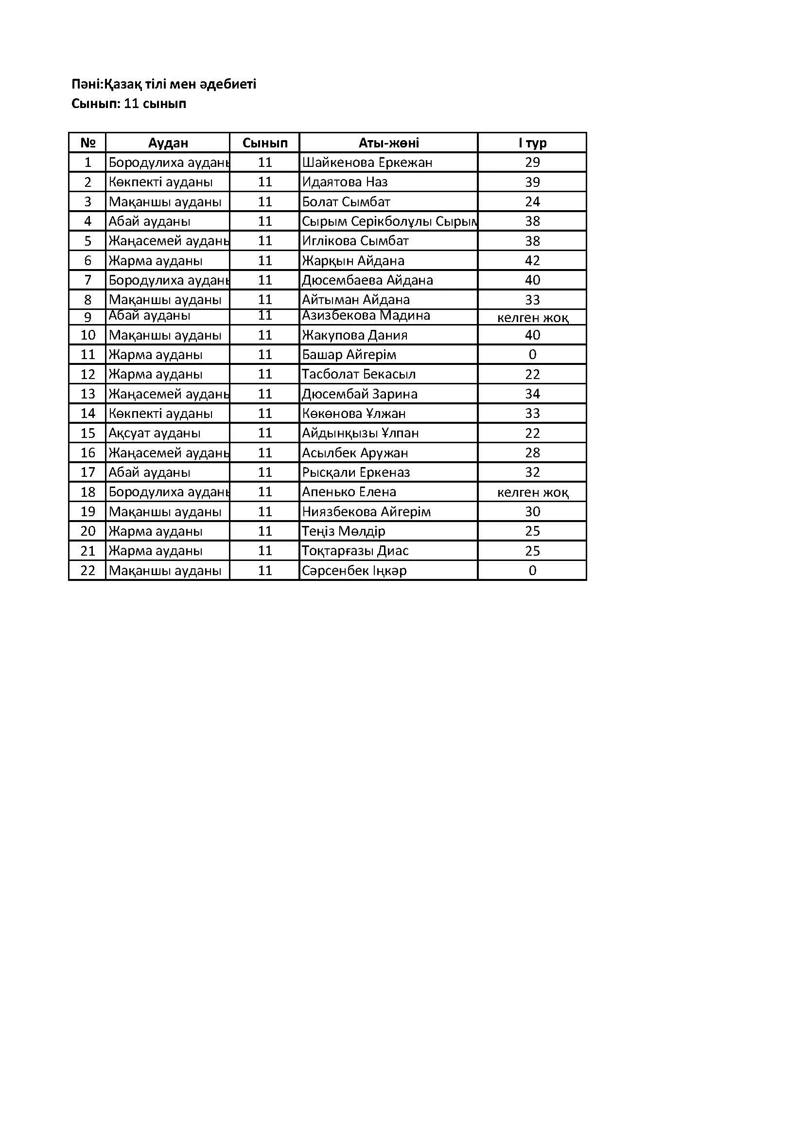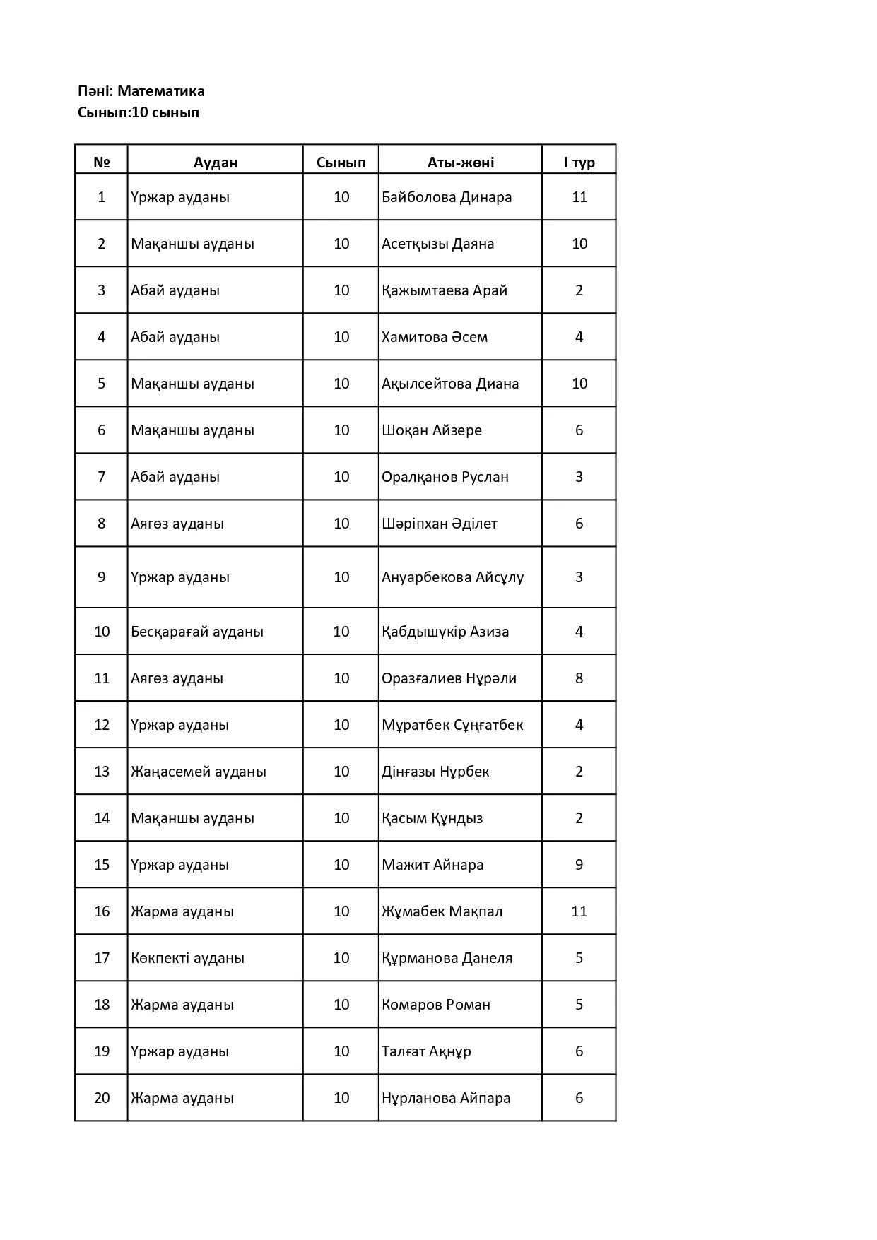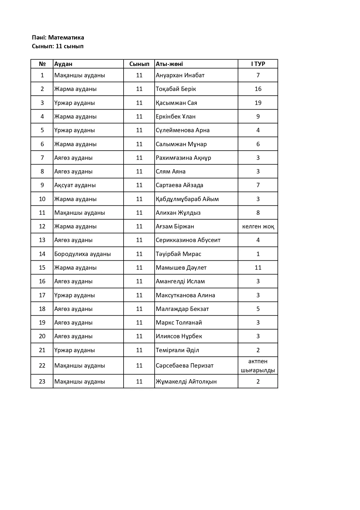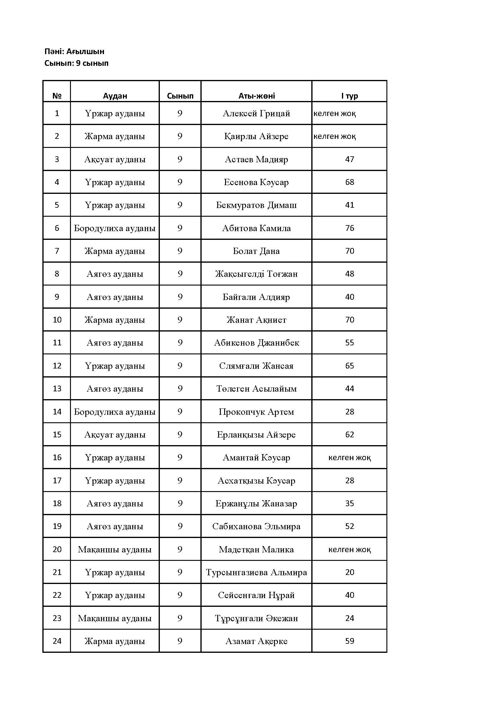 Итоги Областного этапа республиканской олимпиады по общеобразовательным предметам для учащихся 9-11 (12) классов сельских школ (1 тур) Дарын Орталығы 28.10.2025