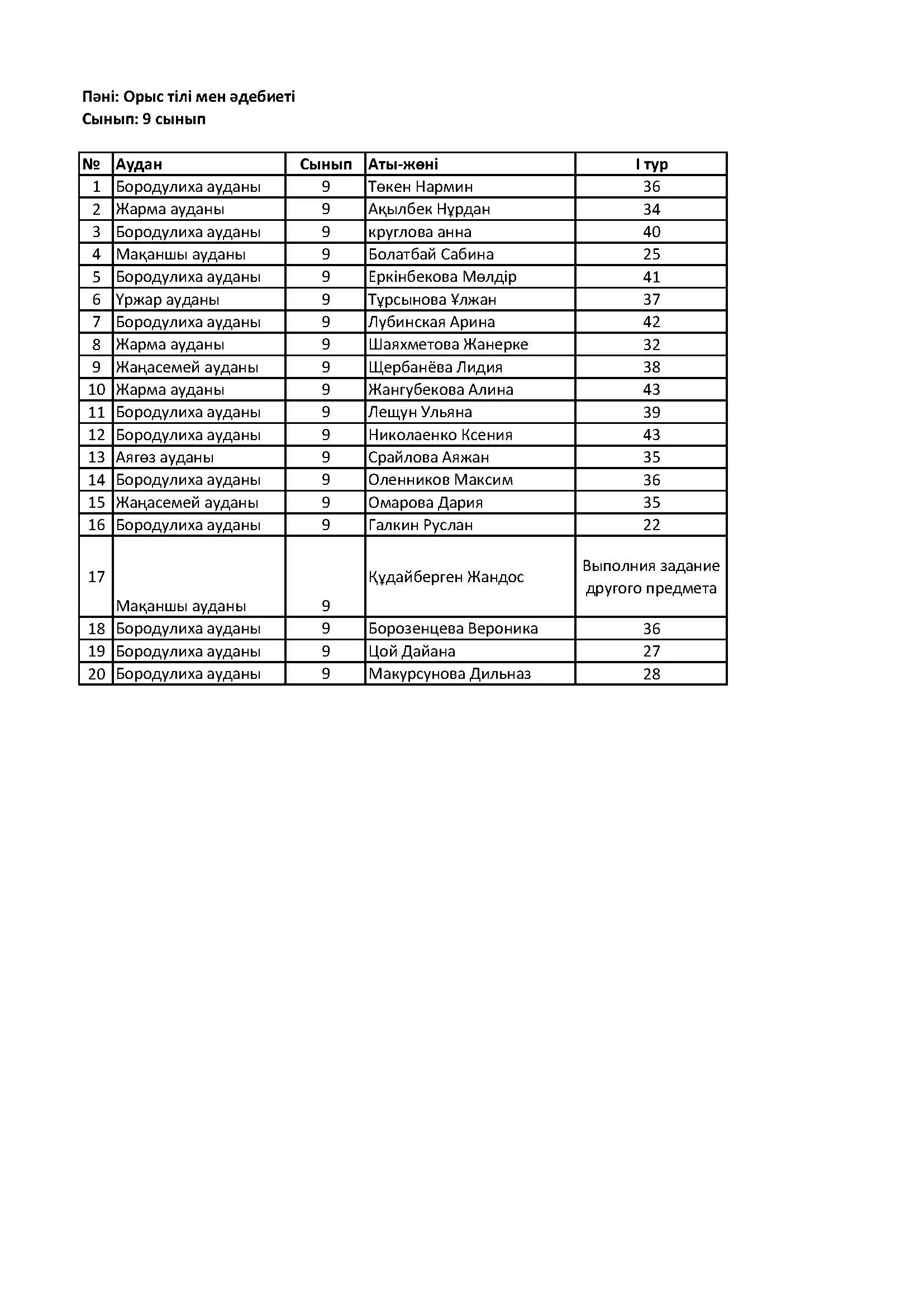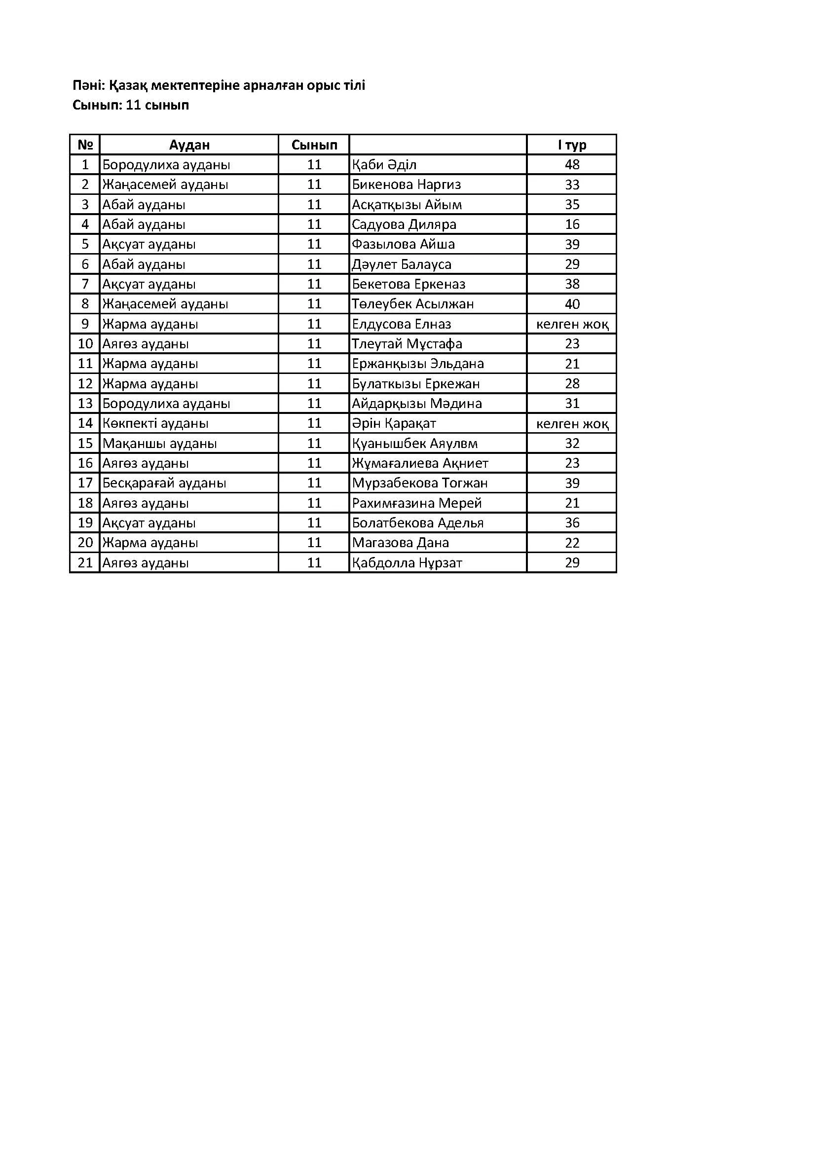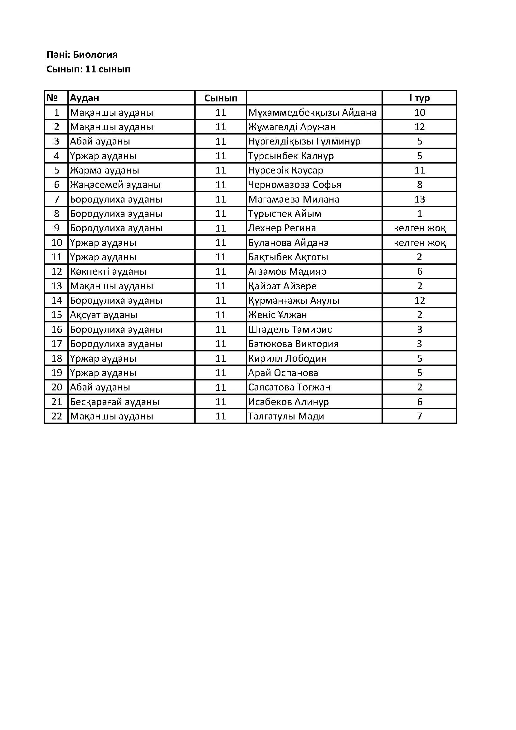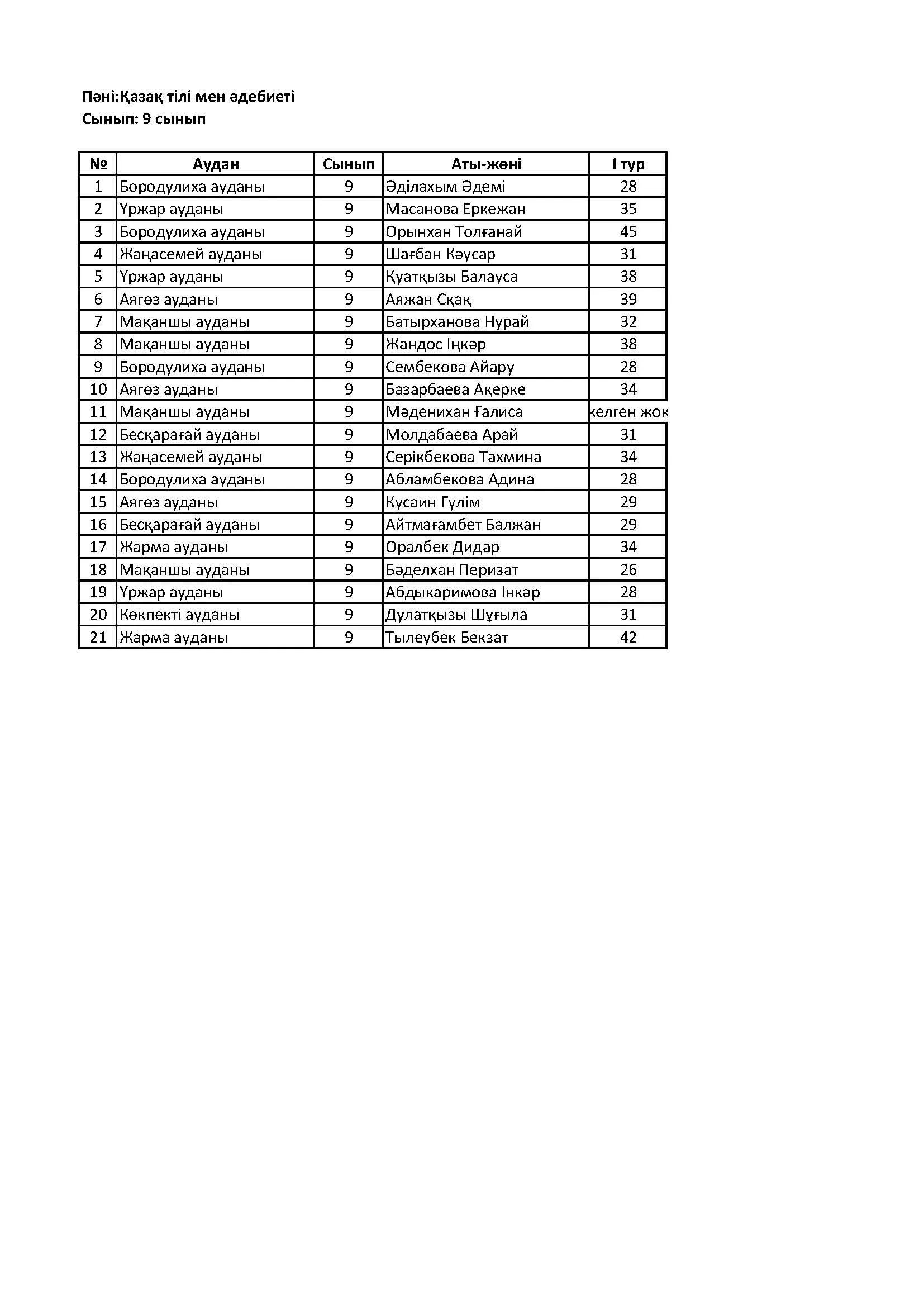 Итоги Областного этапа республиканской олимпиады по общеобразовательным предметам для учащихся 9-11 (12) классов сельских школ (1 тур) Дарын Орталығы 28.10.2025