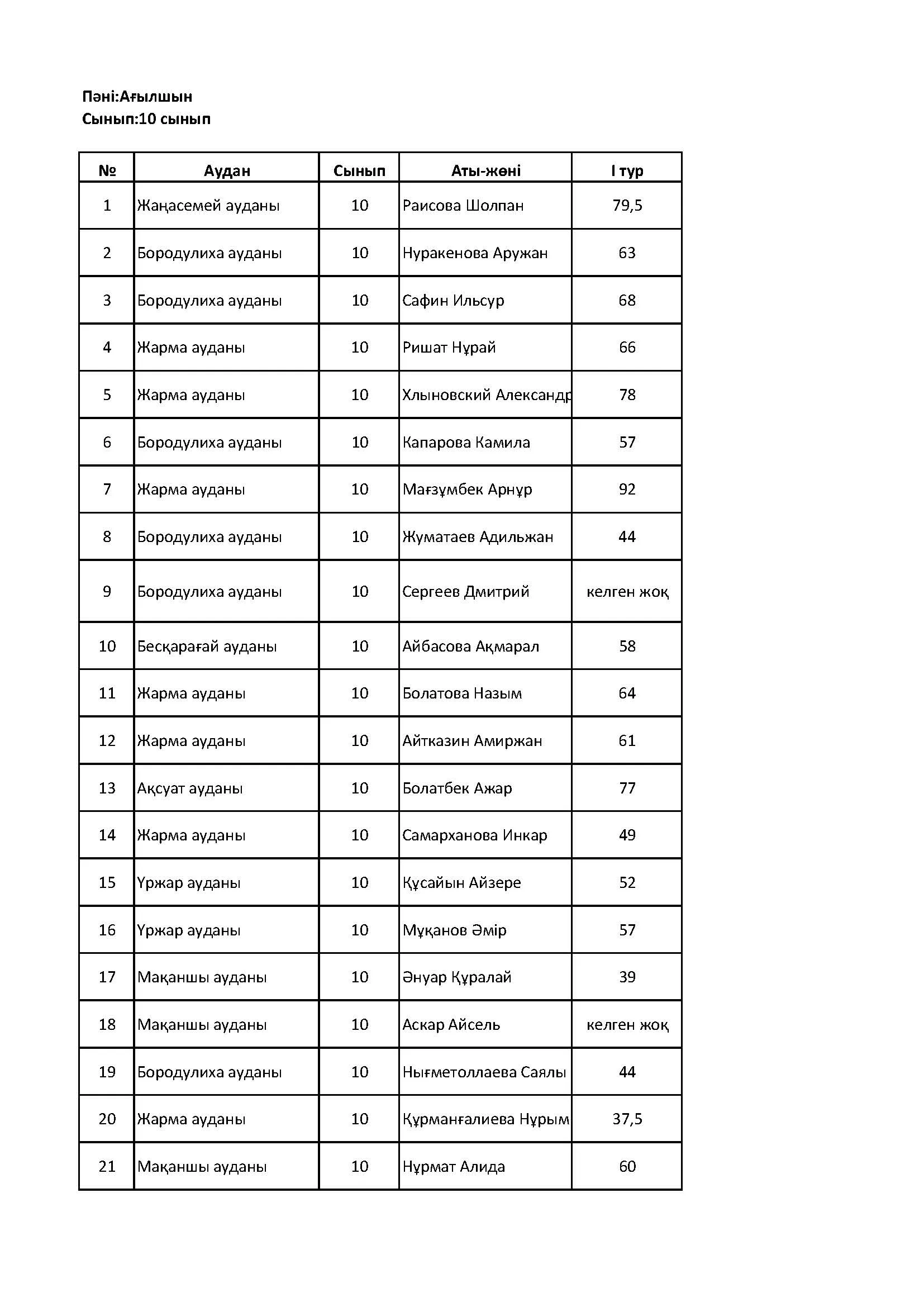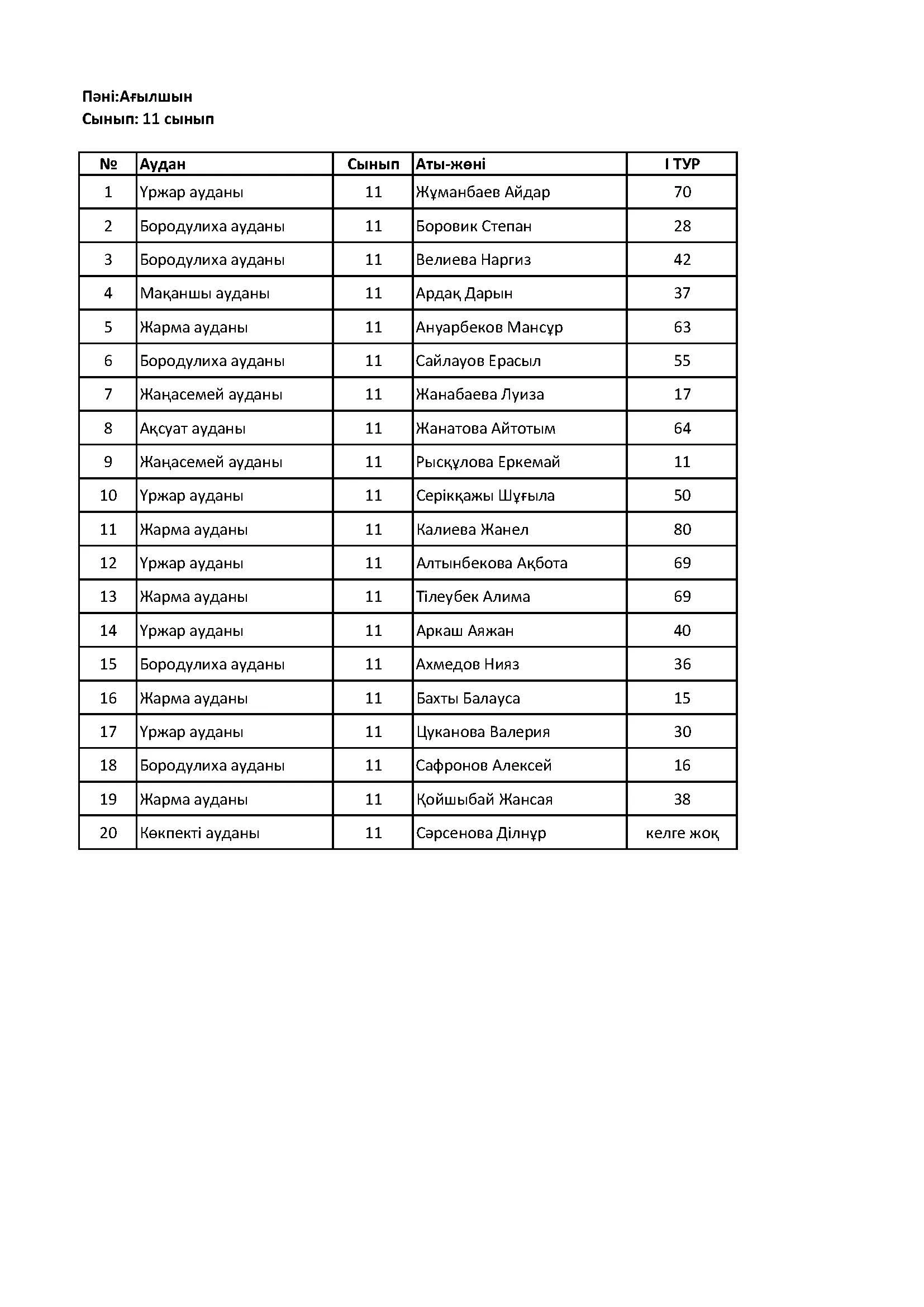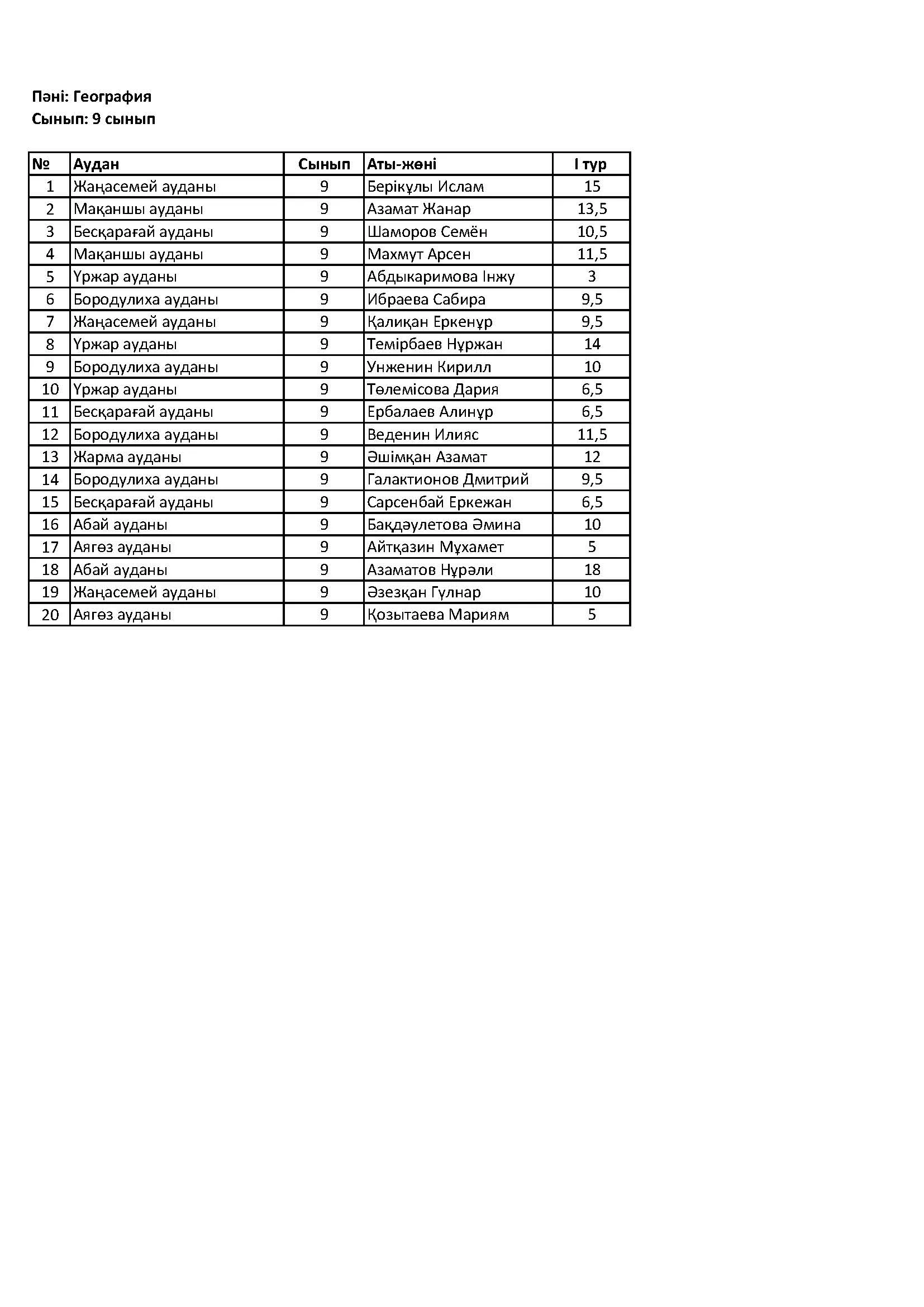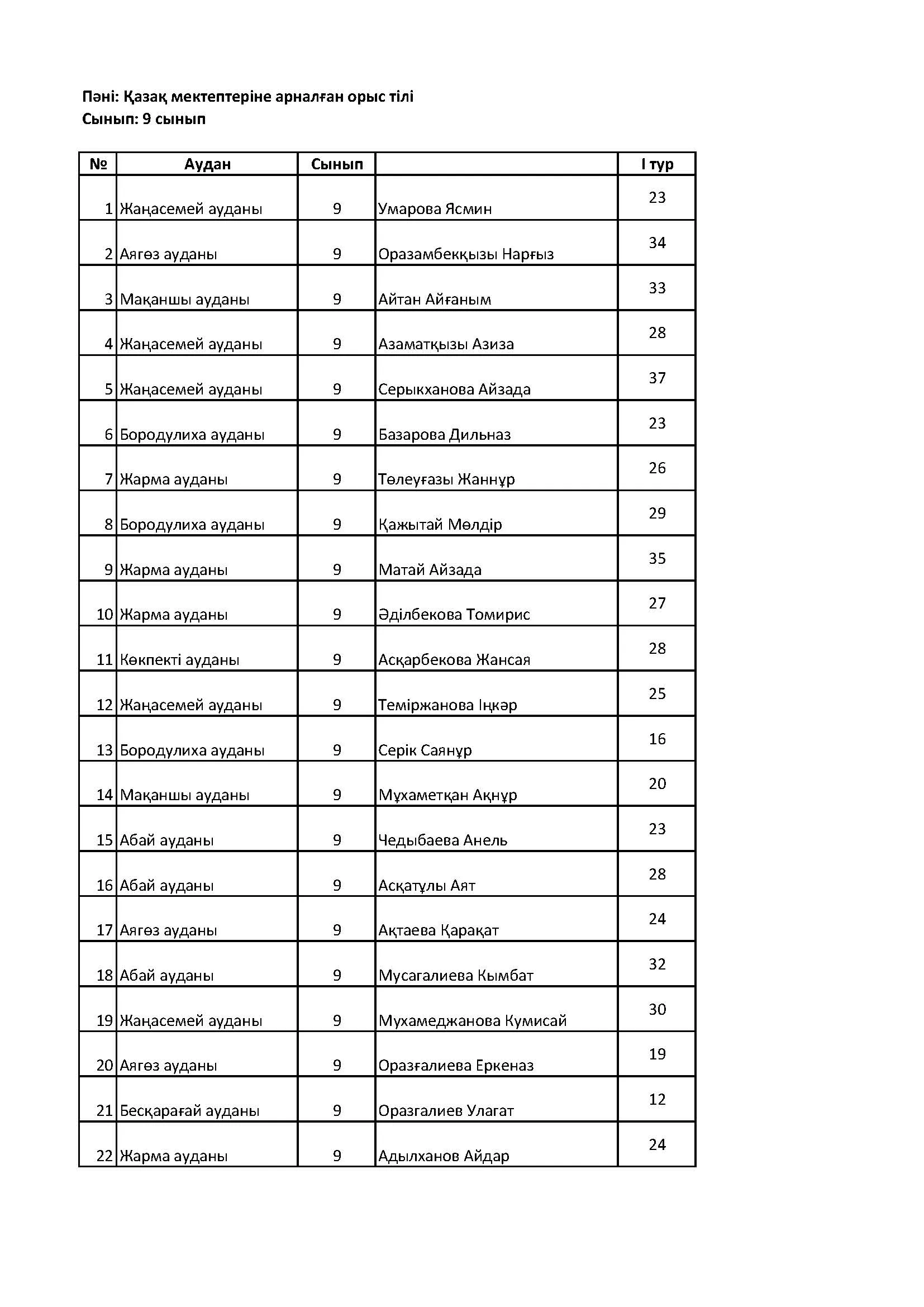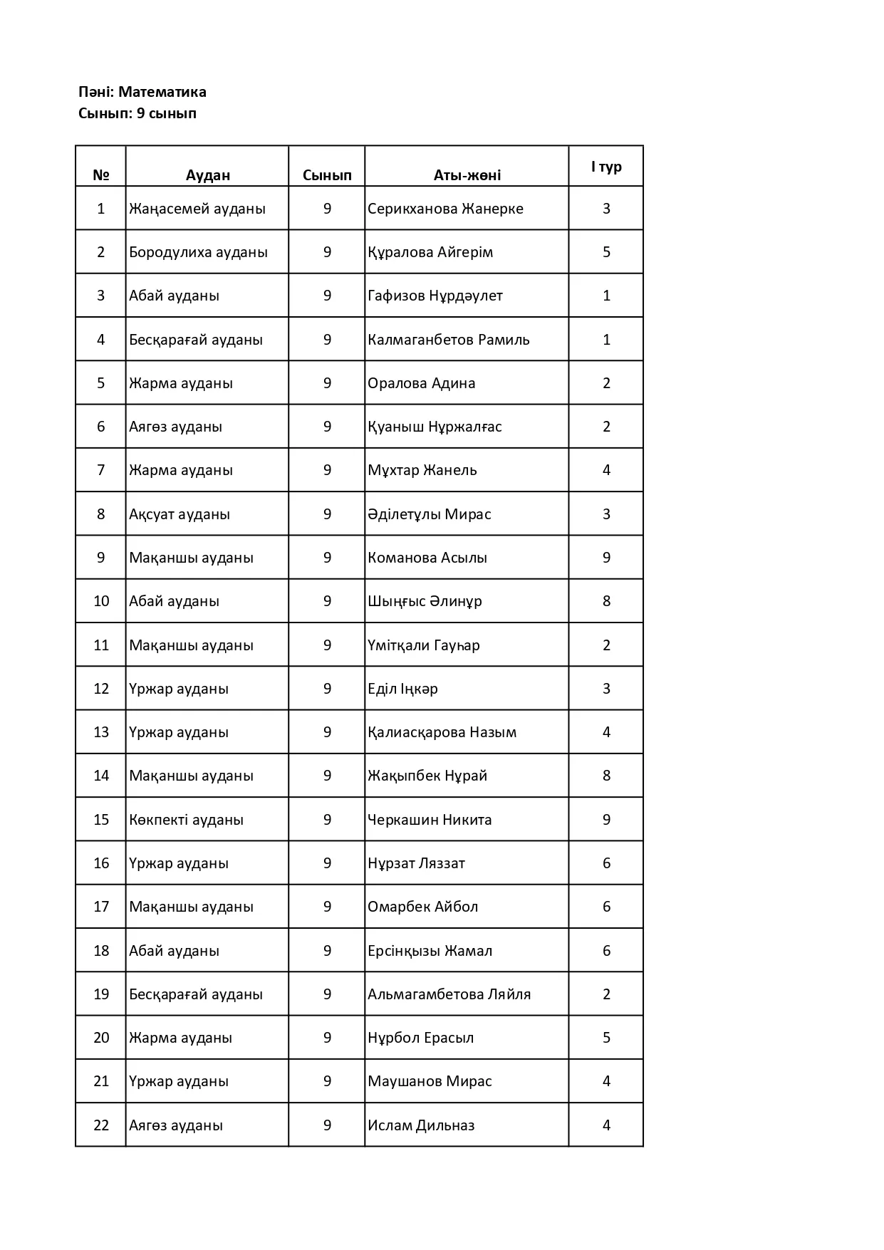 Итоги Областного этапа республиканской олимпиады по общеобразовательным предметам для учащихся 9-11 (12) классов сельских школ (1 тур) Дарын Орталығы 28.10.2025