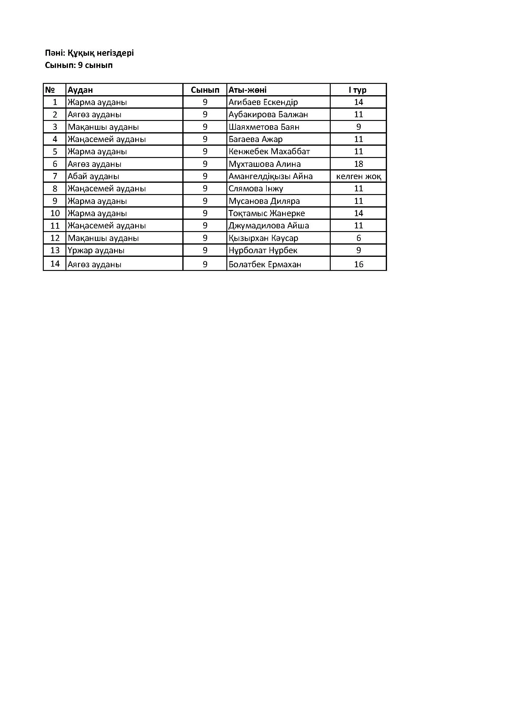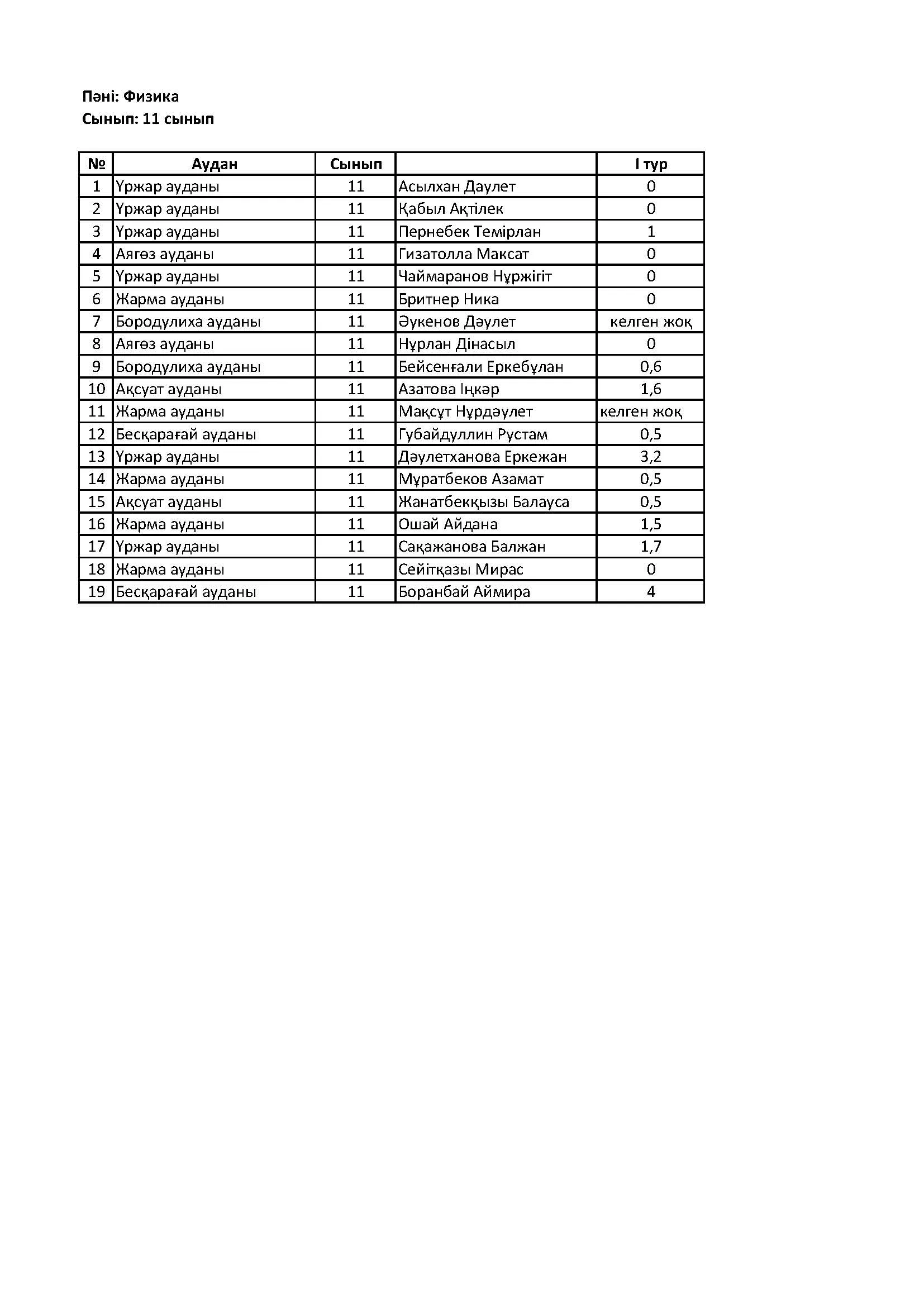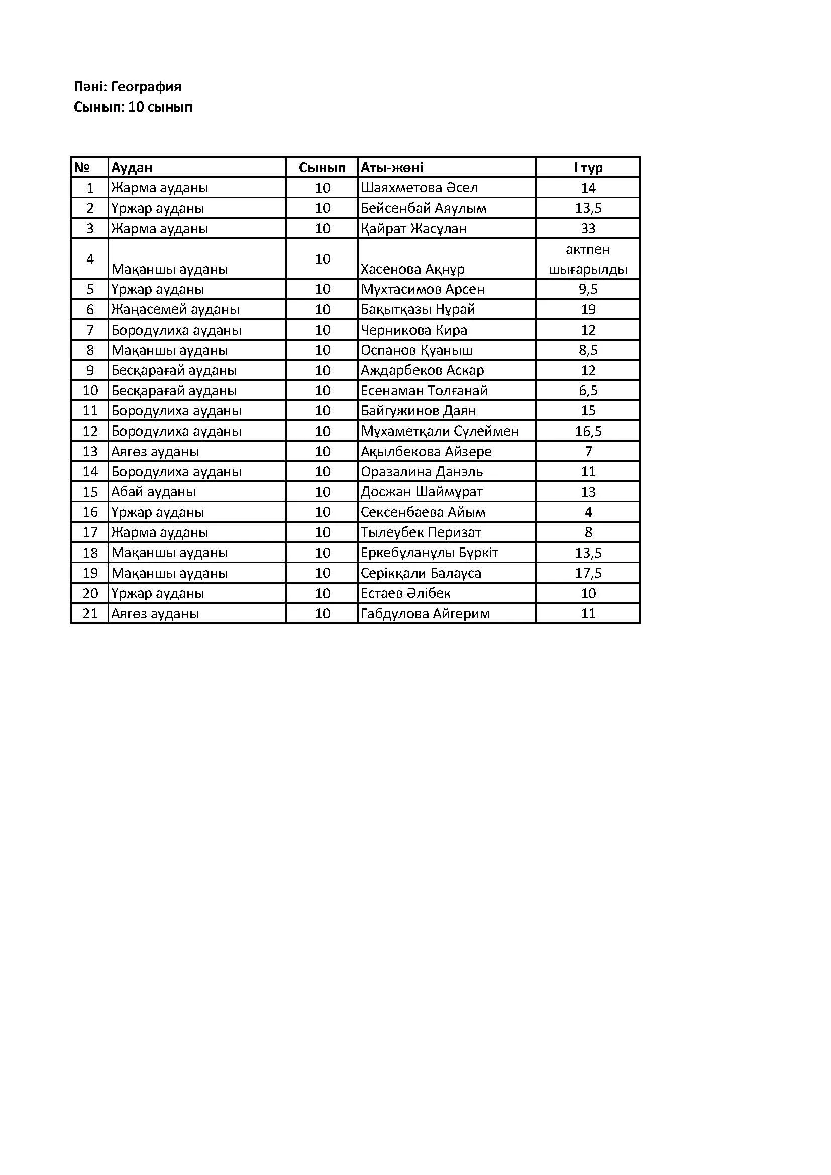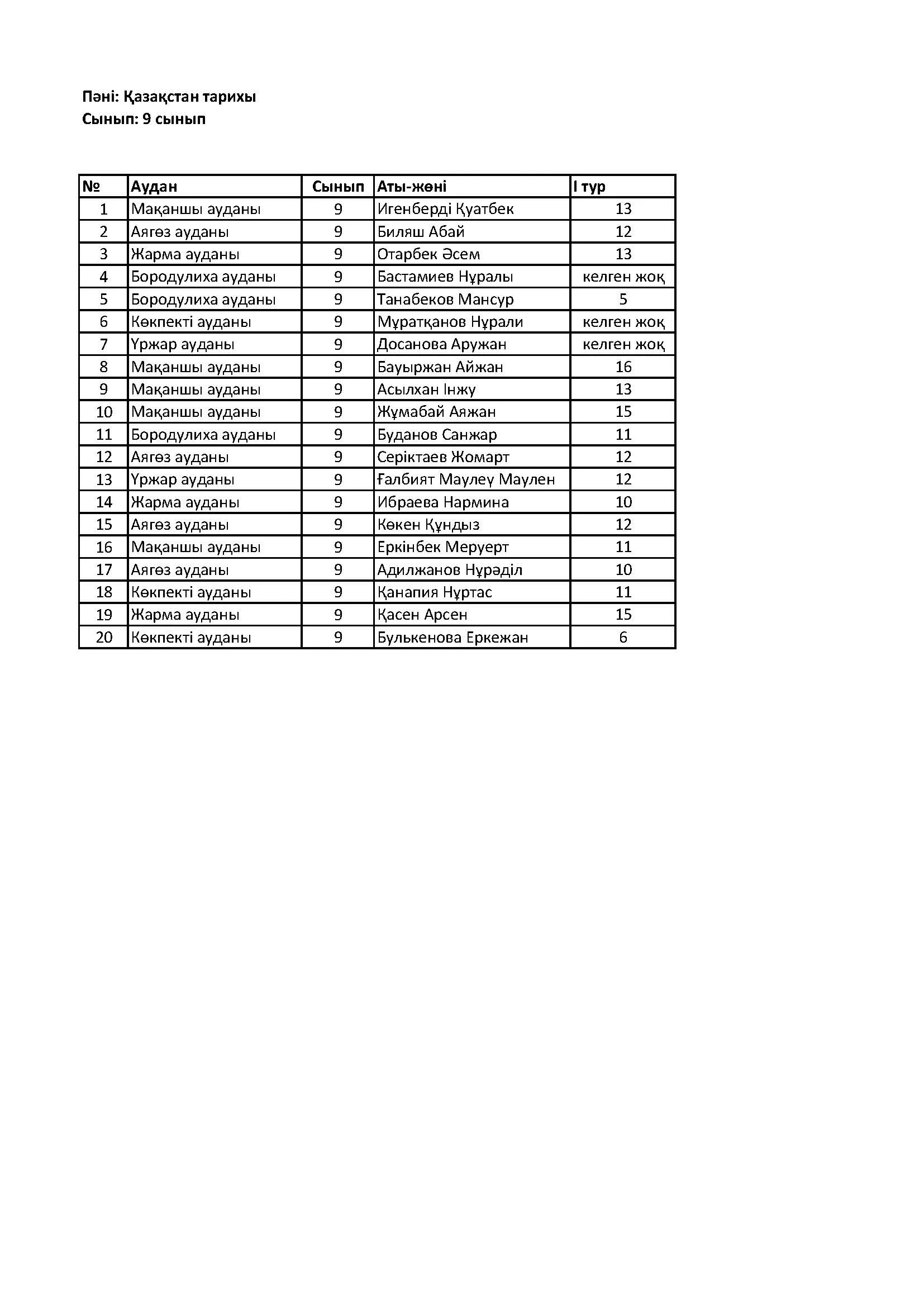Итоги Областного этапа республиканской олимпиады по общеобразовательным предметам для учащихся 9-11 (12) классов сельских школ (1 тур) Дарын Орталығы 28.10.2025