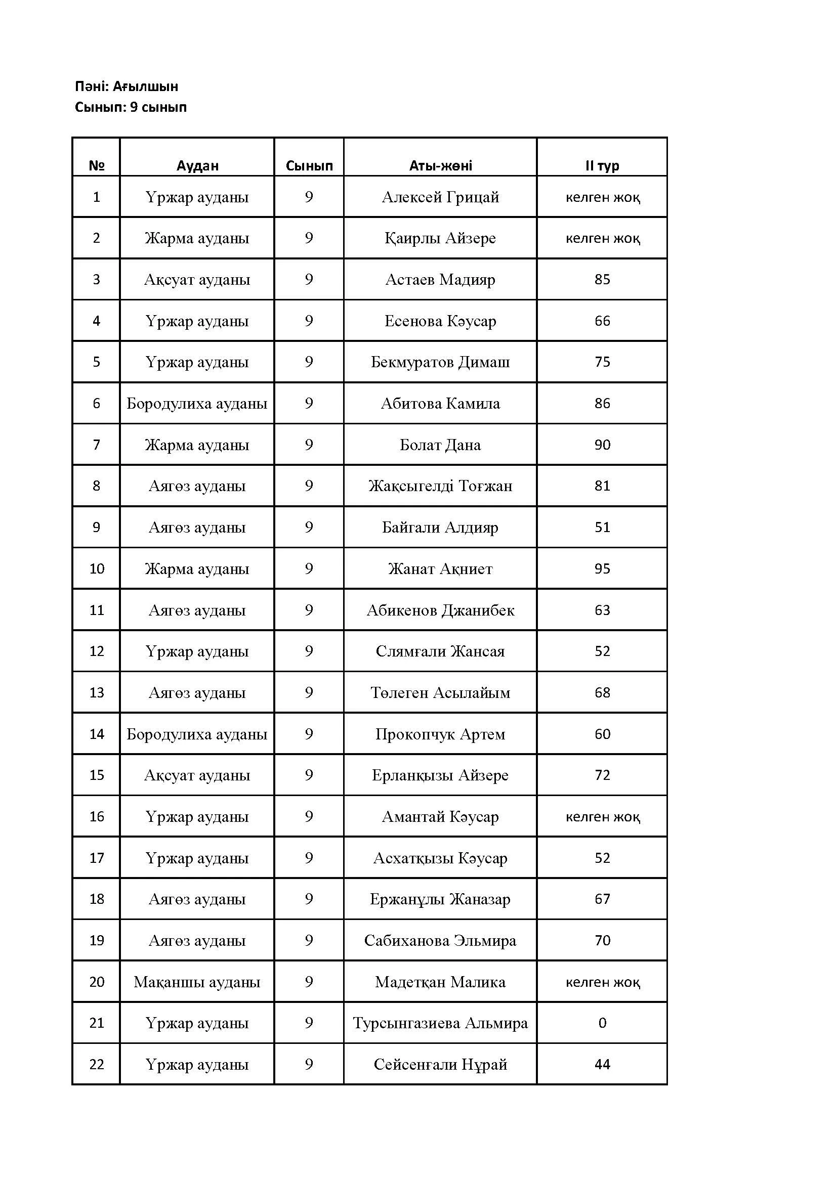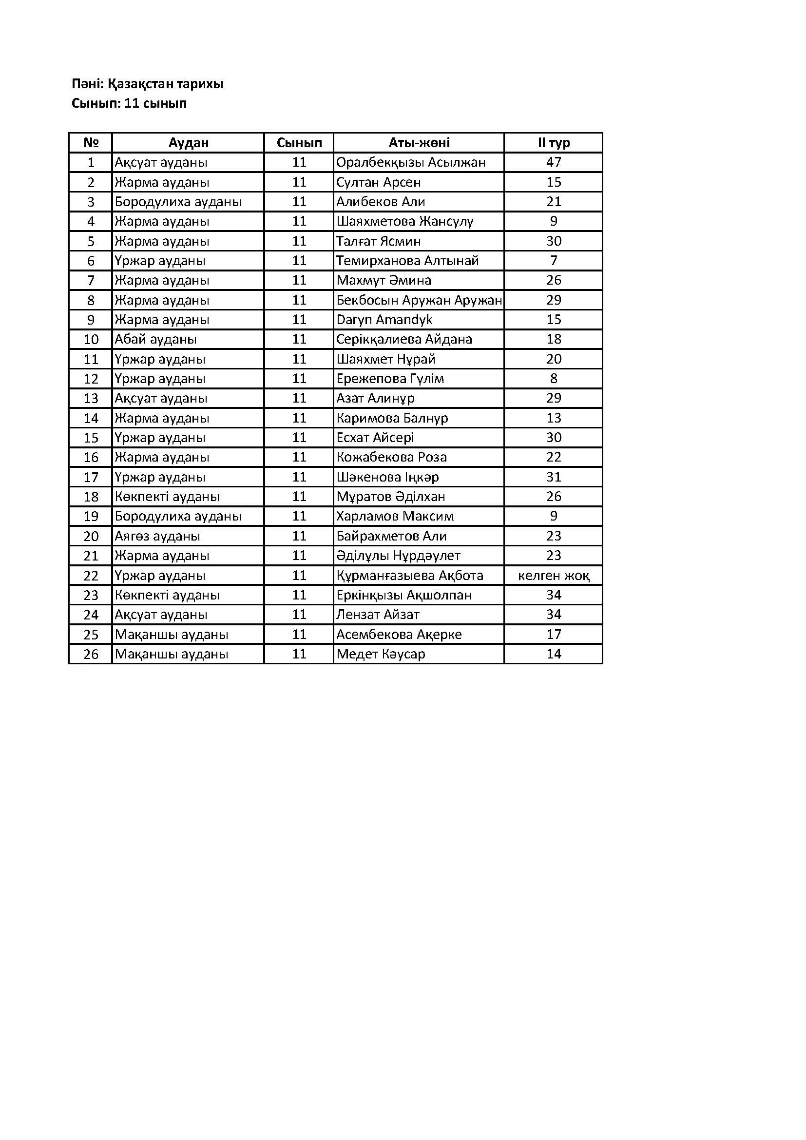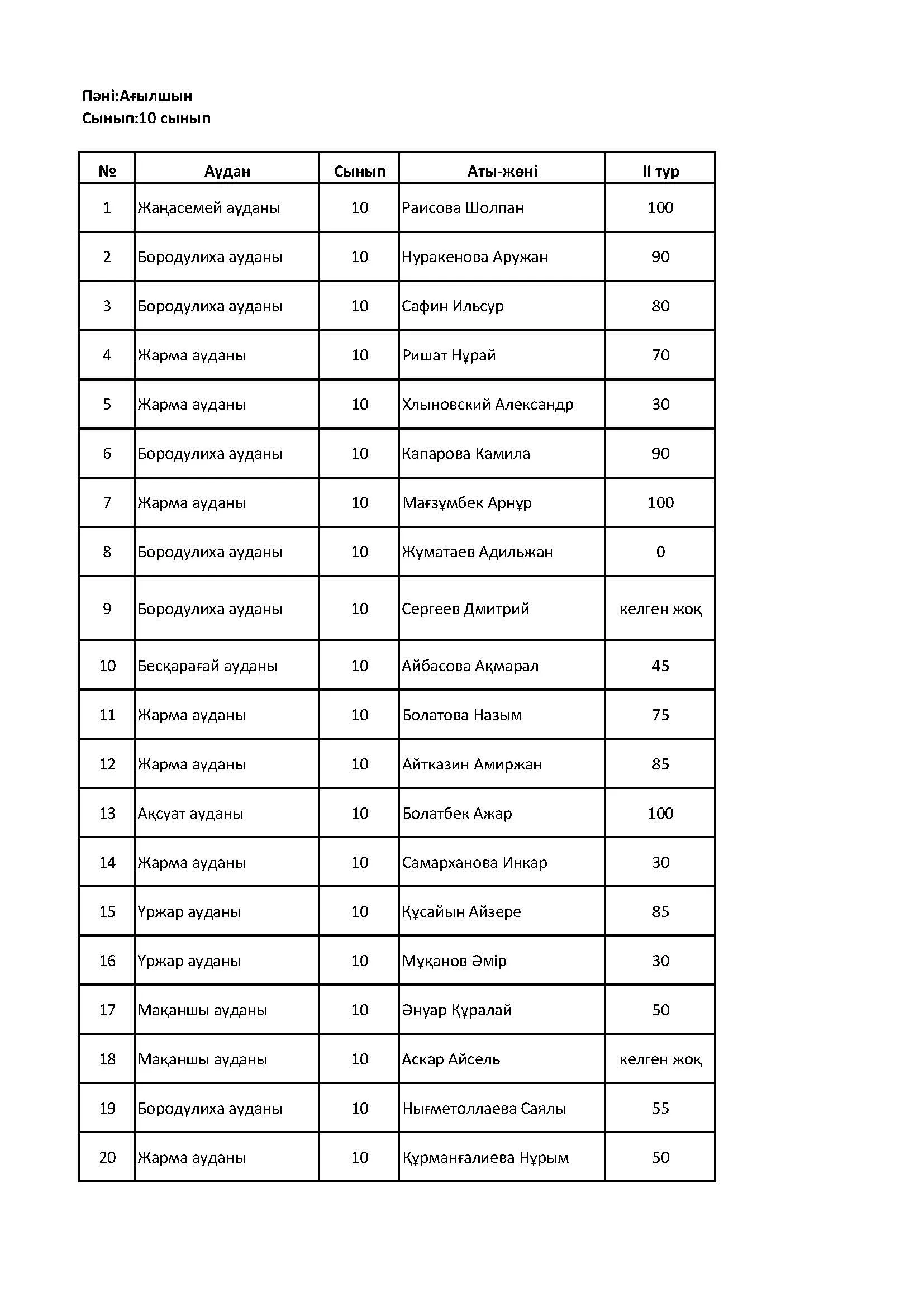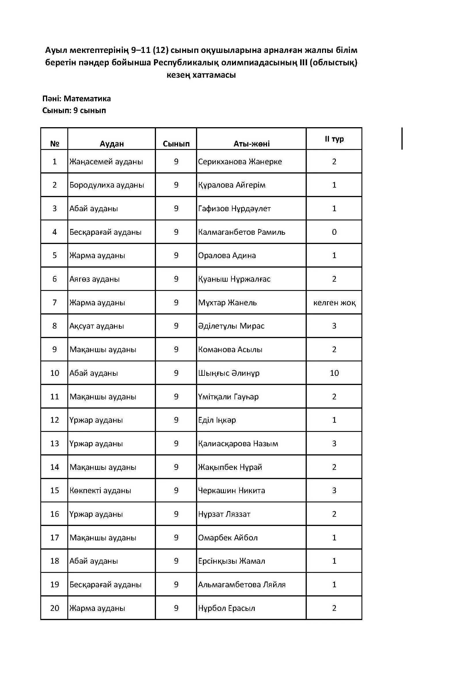 Итоги Областного этапа республиканской олимпиады по общеобразовательным предметам для учащихся 9-11 (12) классов сельских школ (2 тур) Дарын Орталығы 29.10.2025