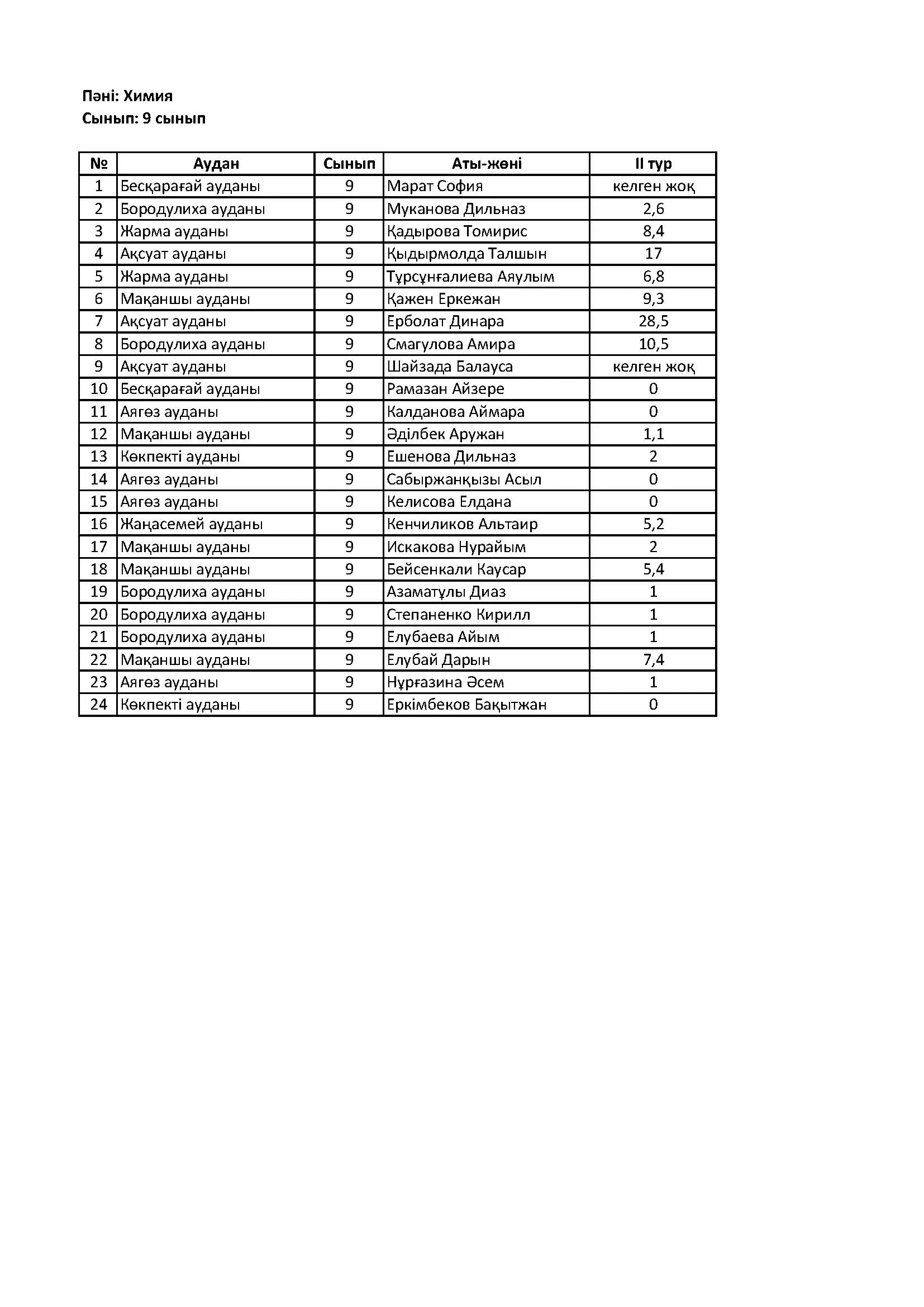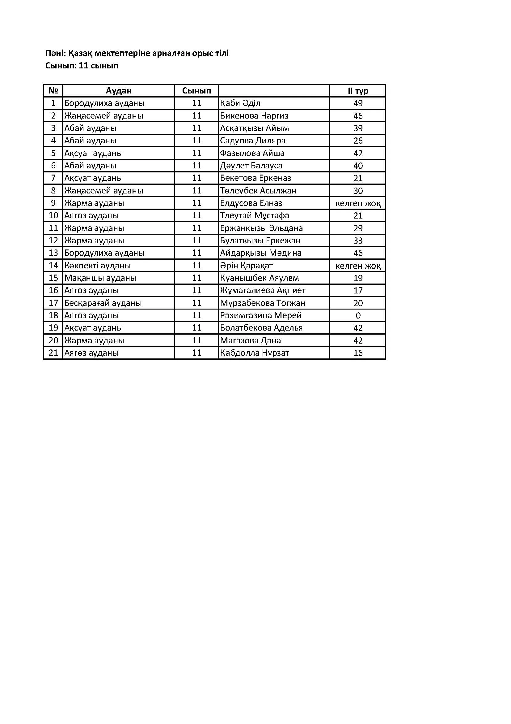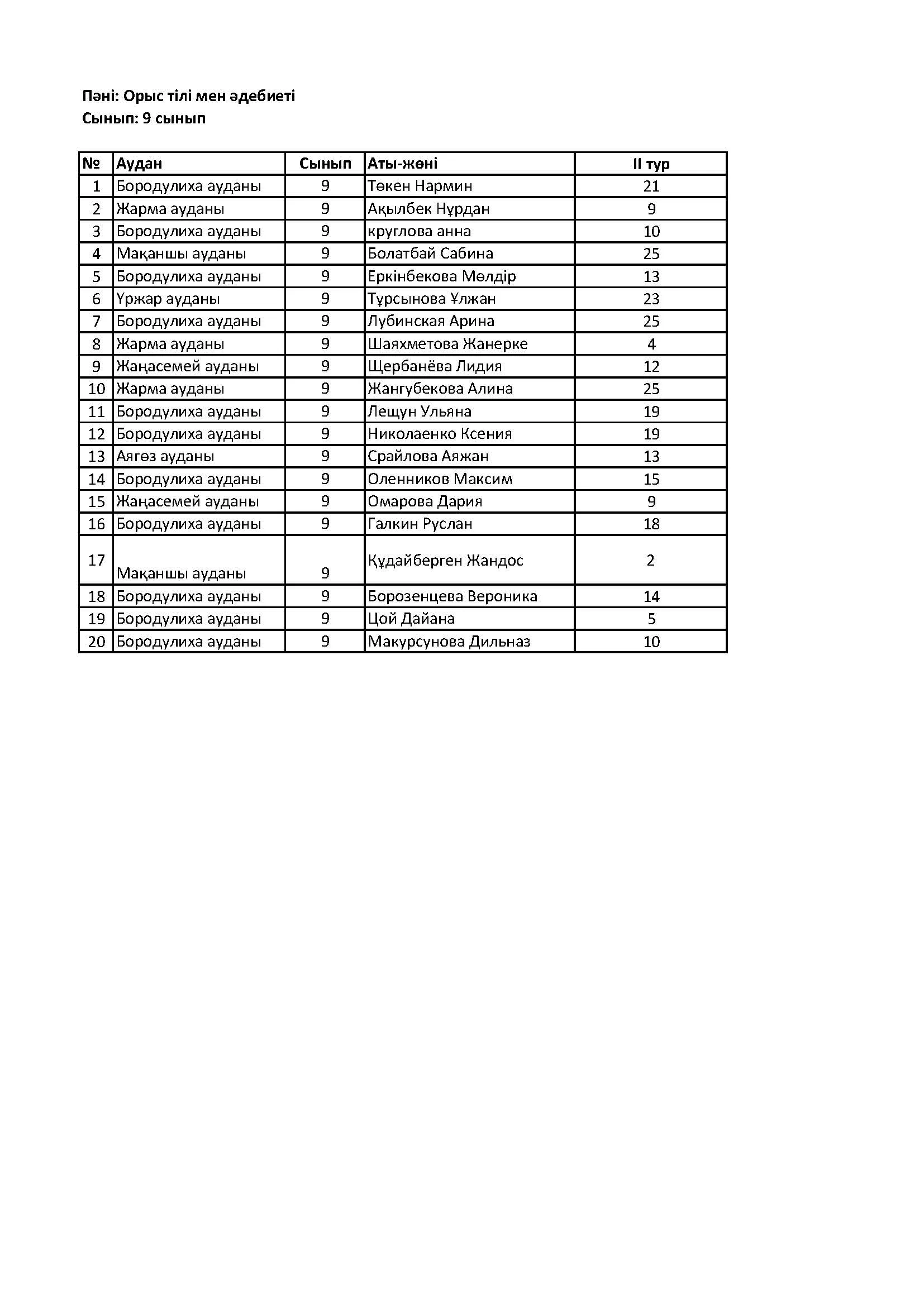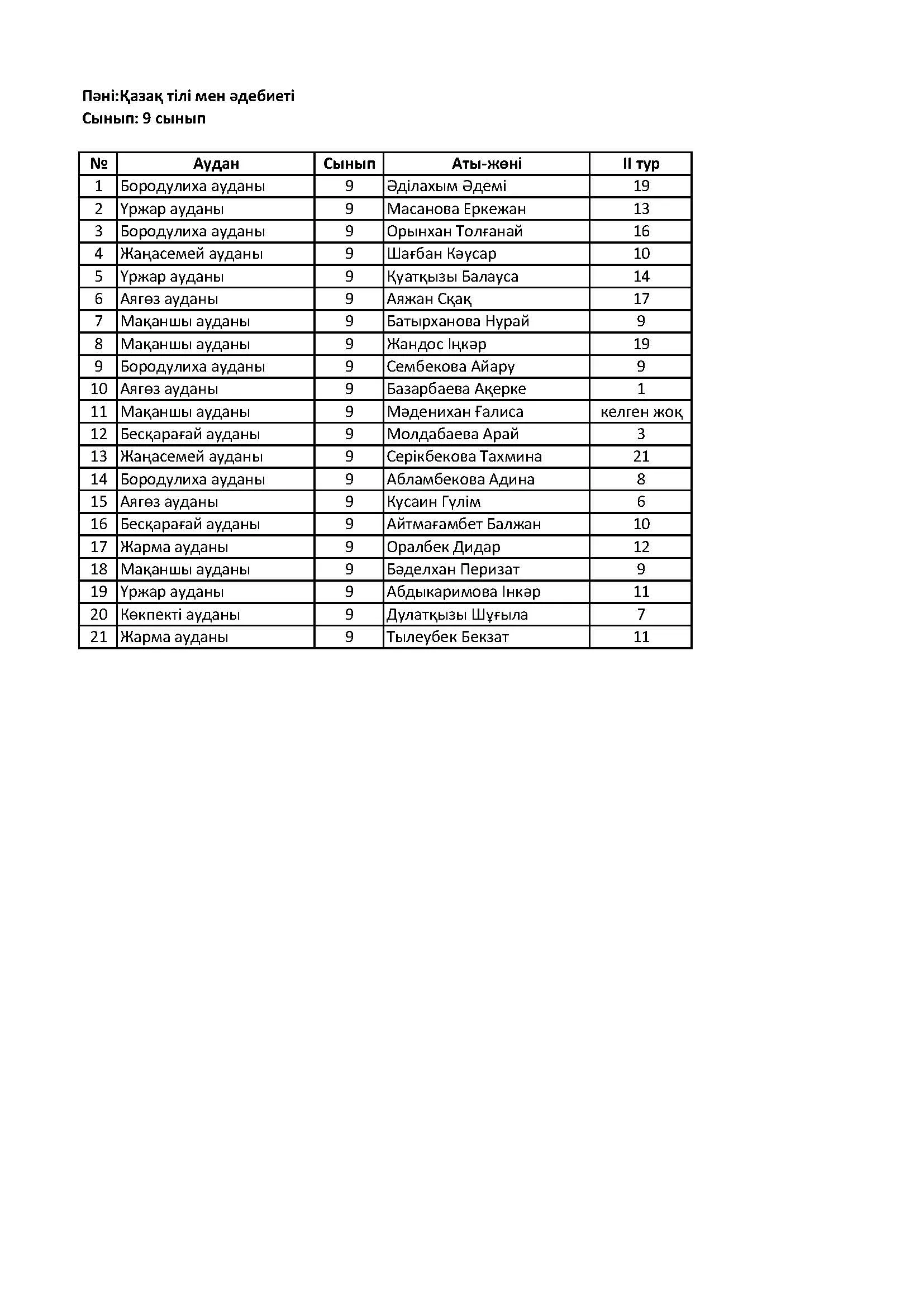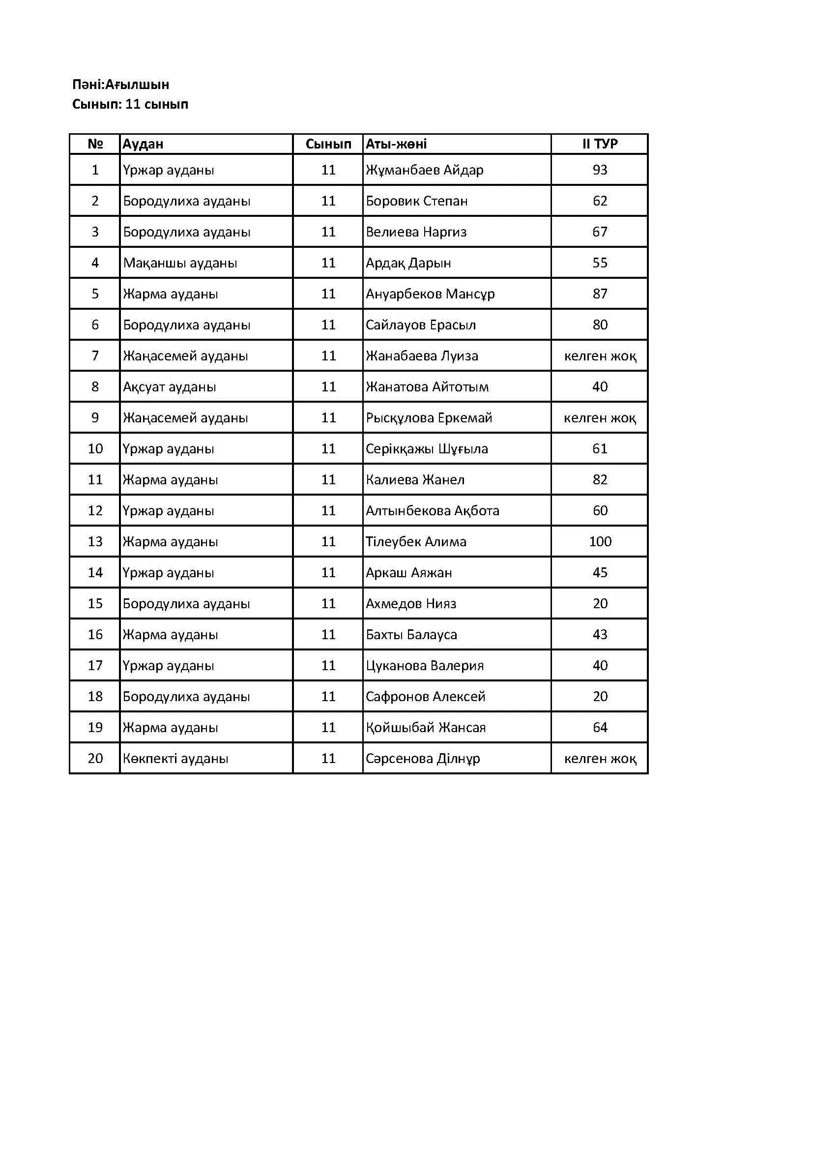 Итоги Областного этапа республиканской олимпиады по общеобразовательным предметам для учащихся 9-11 (12) классов сельских школ (2 тур) Дарын Орталығы 29.10.2025