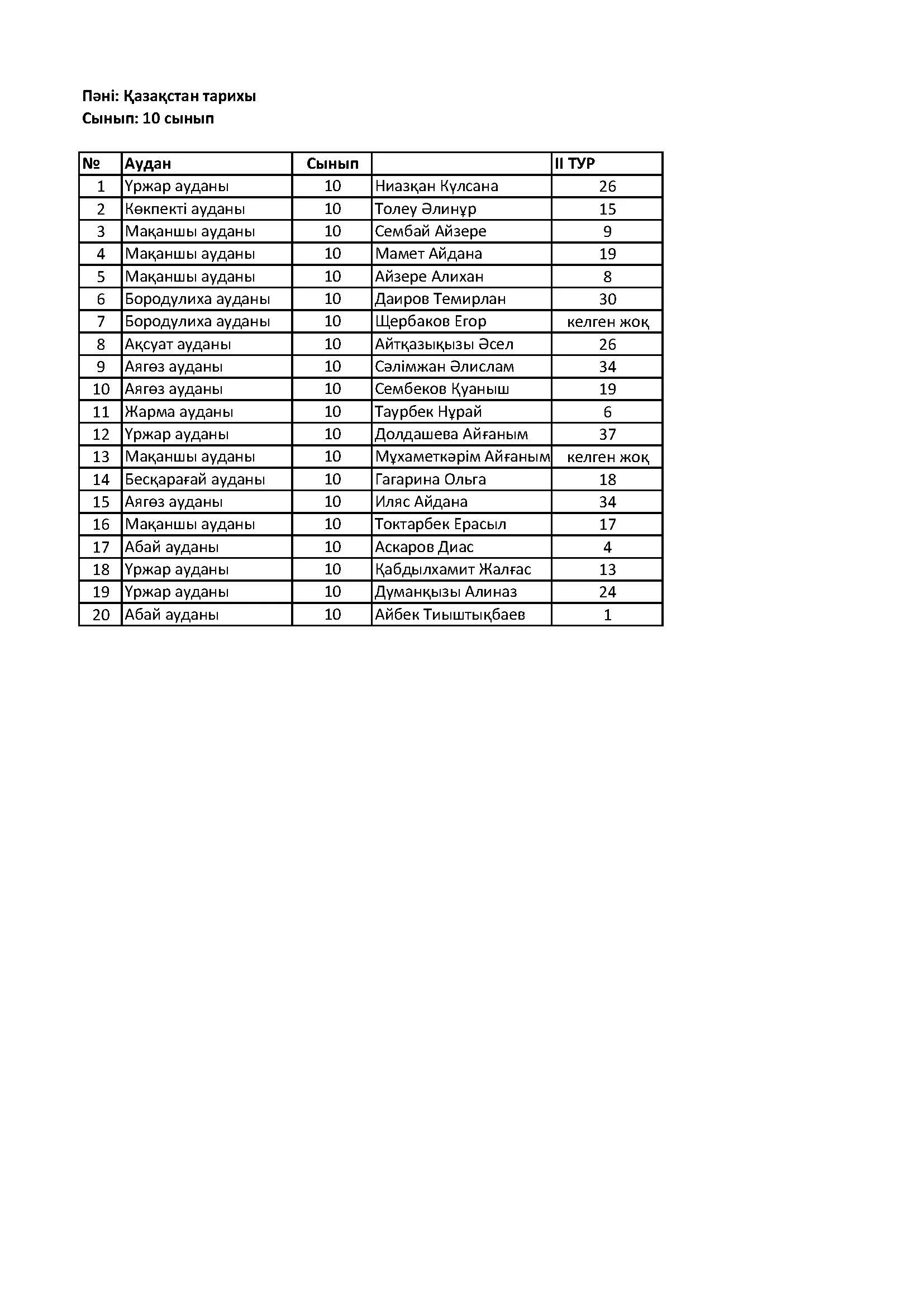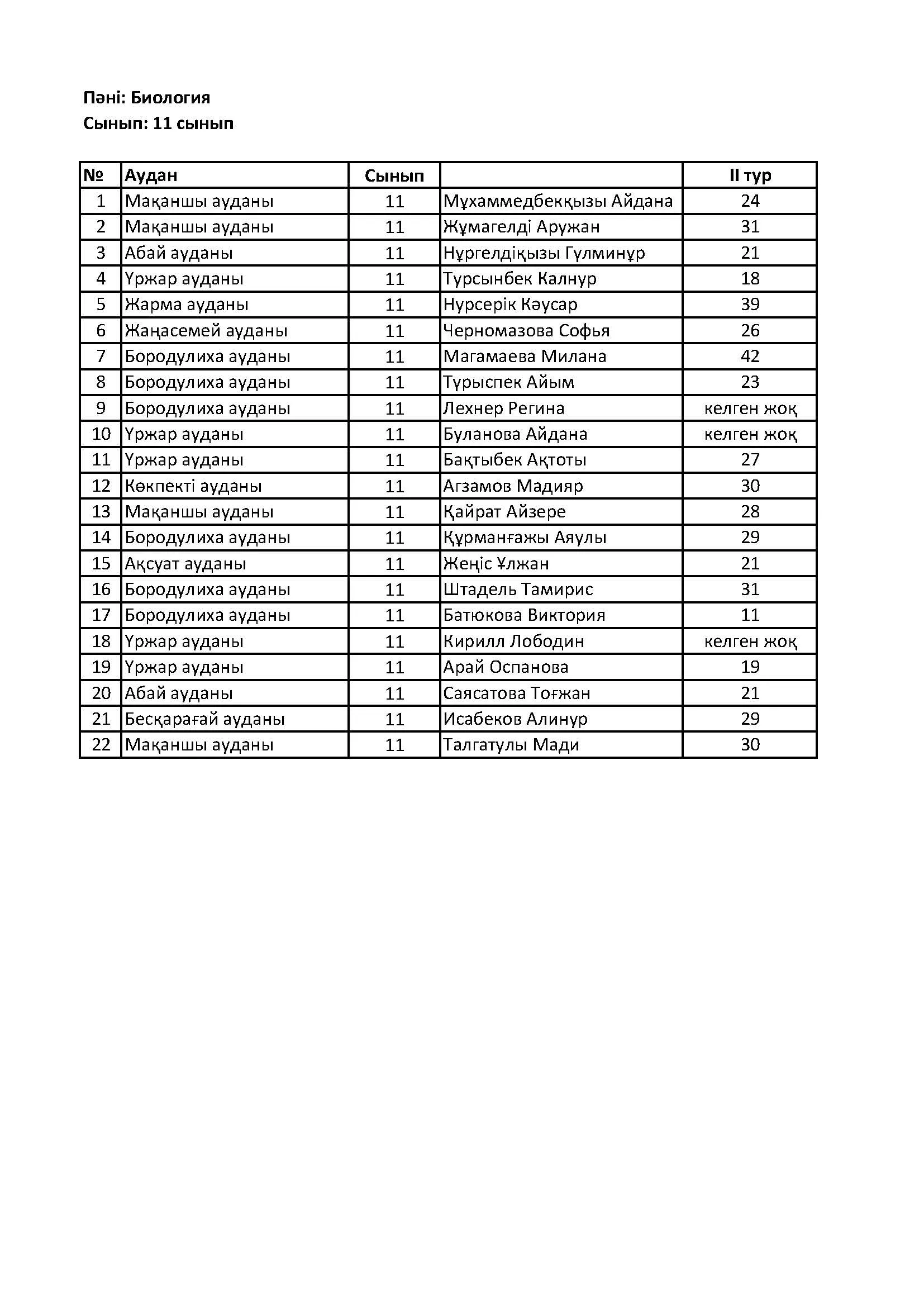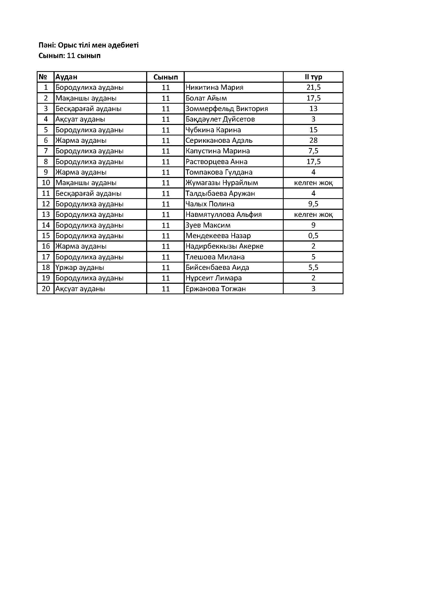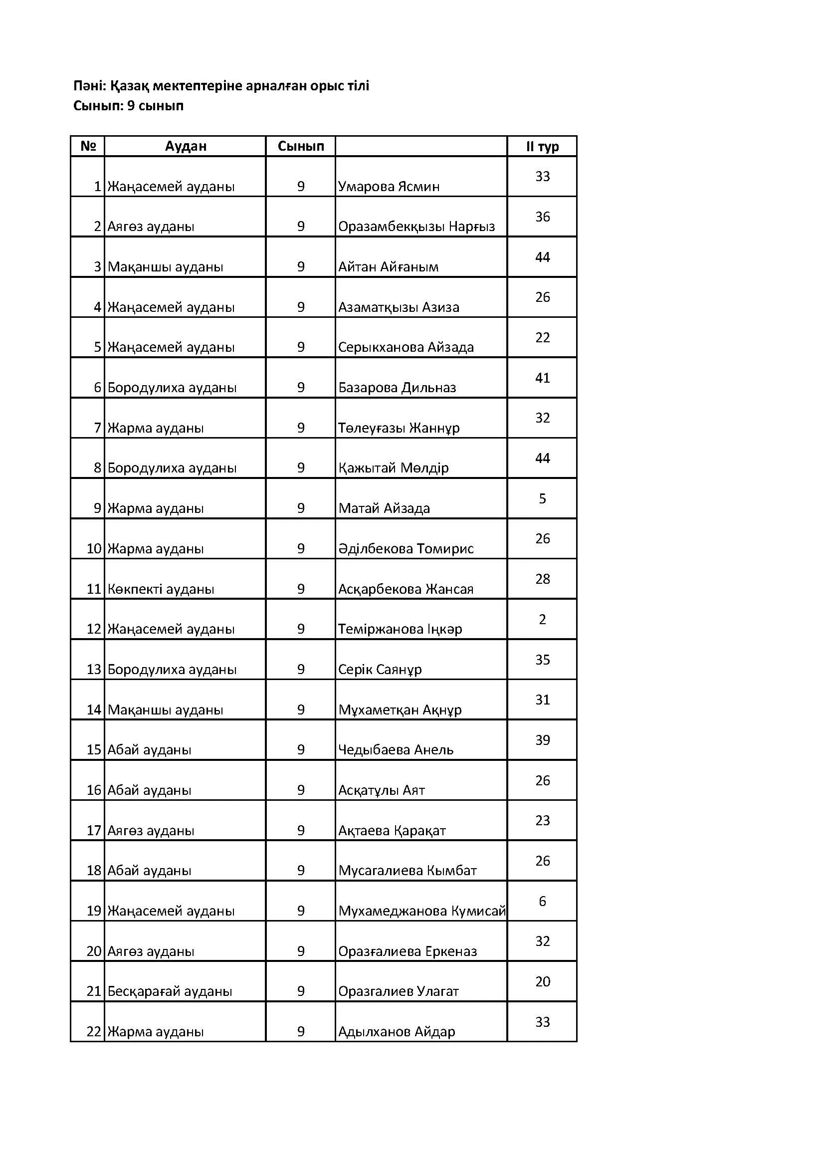 Итоги Областного этапа республиканской олимпиады по общеобразовательным предметам для учащихся 9-11 (12) классов сельских школ (2 тур) Дарын Орталығы 29.10.2025