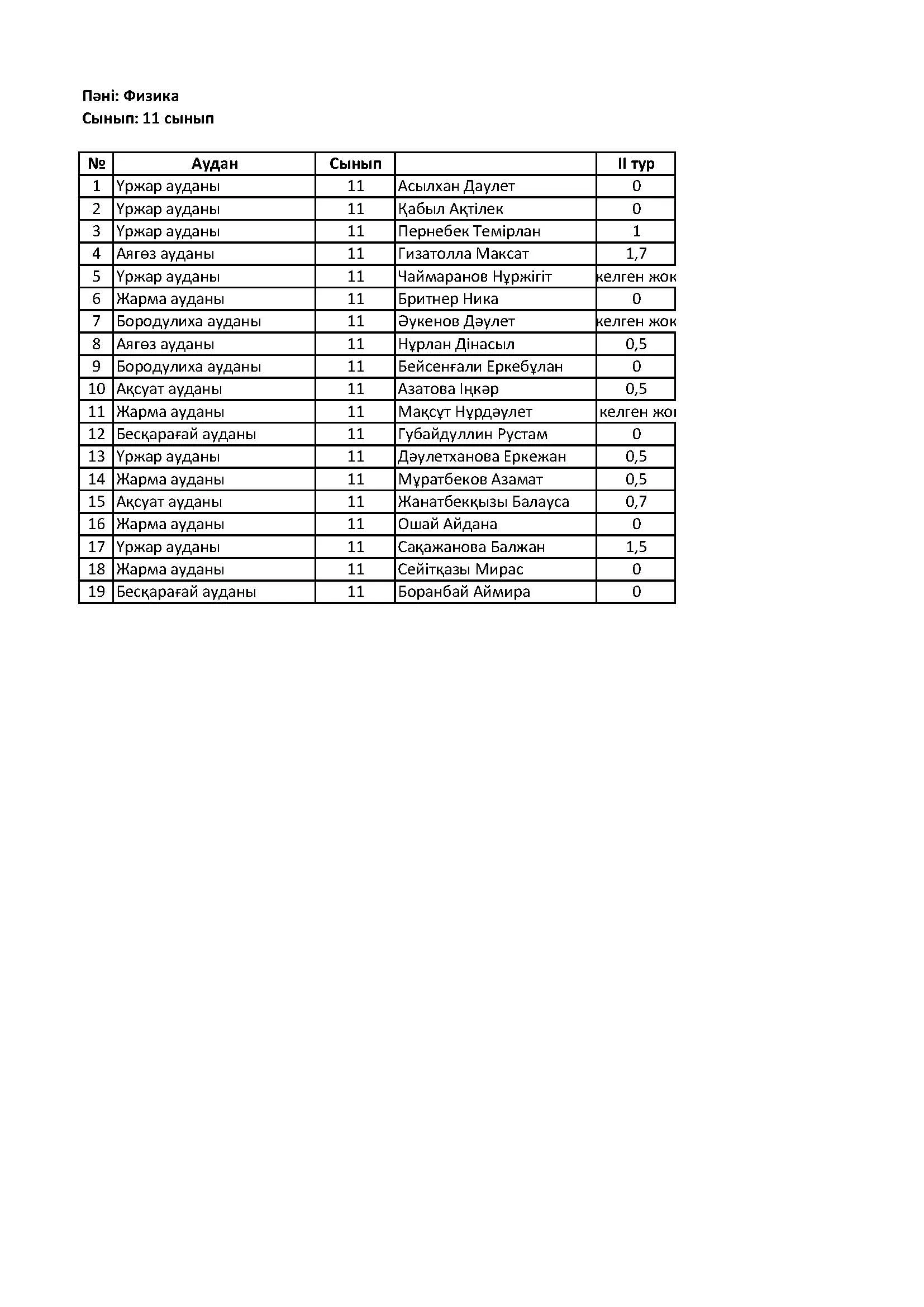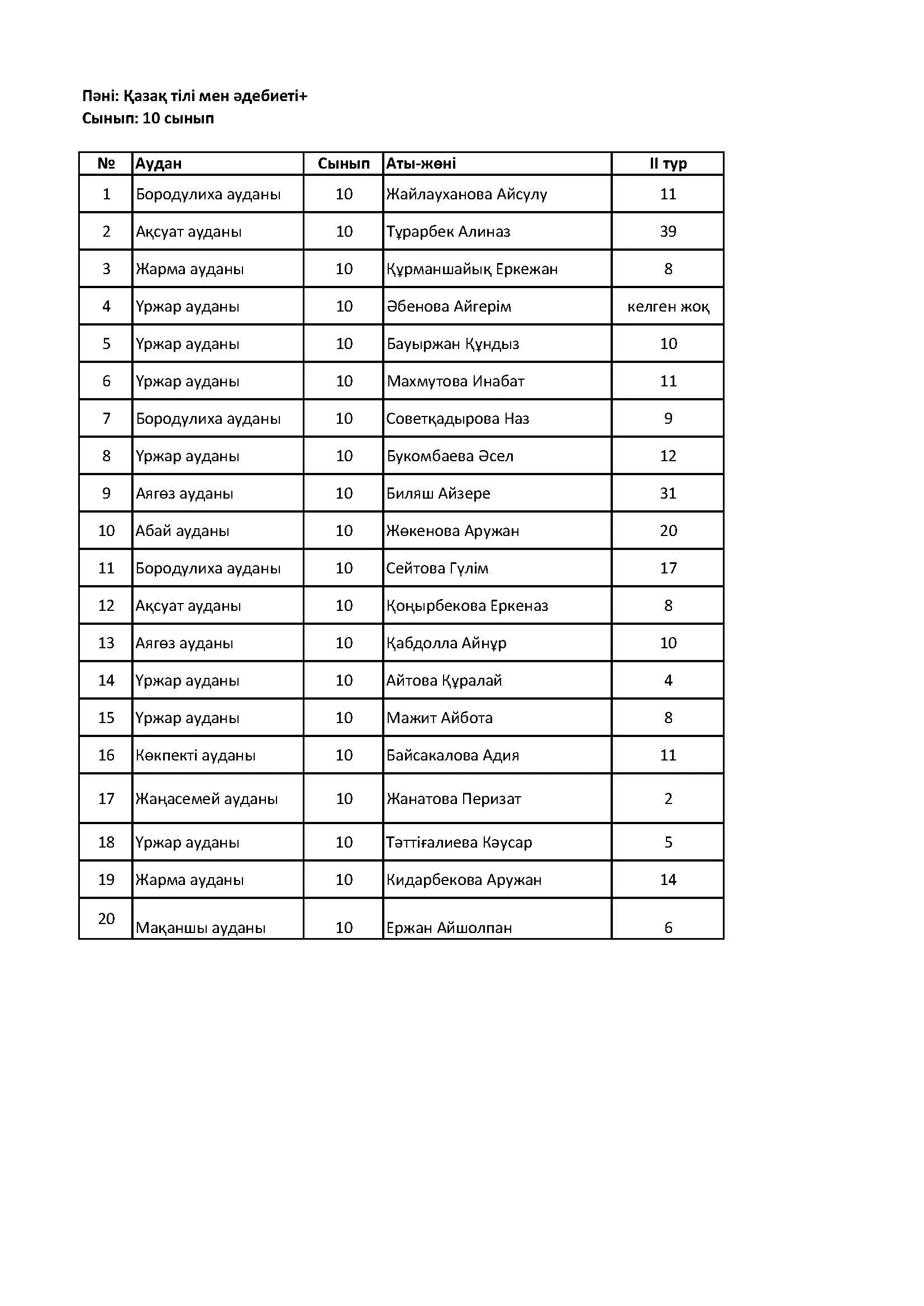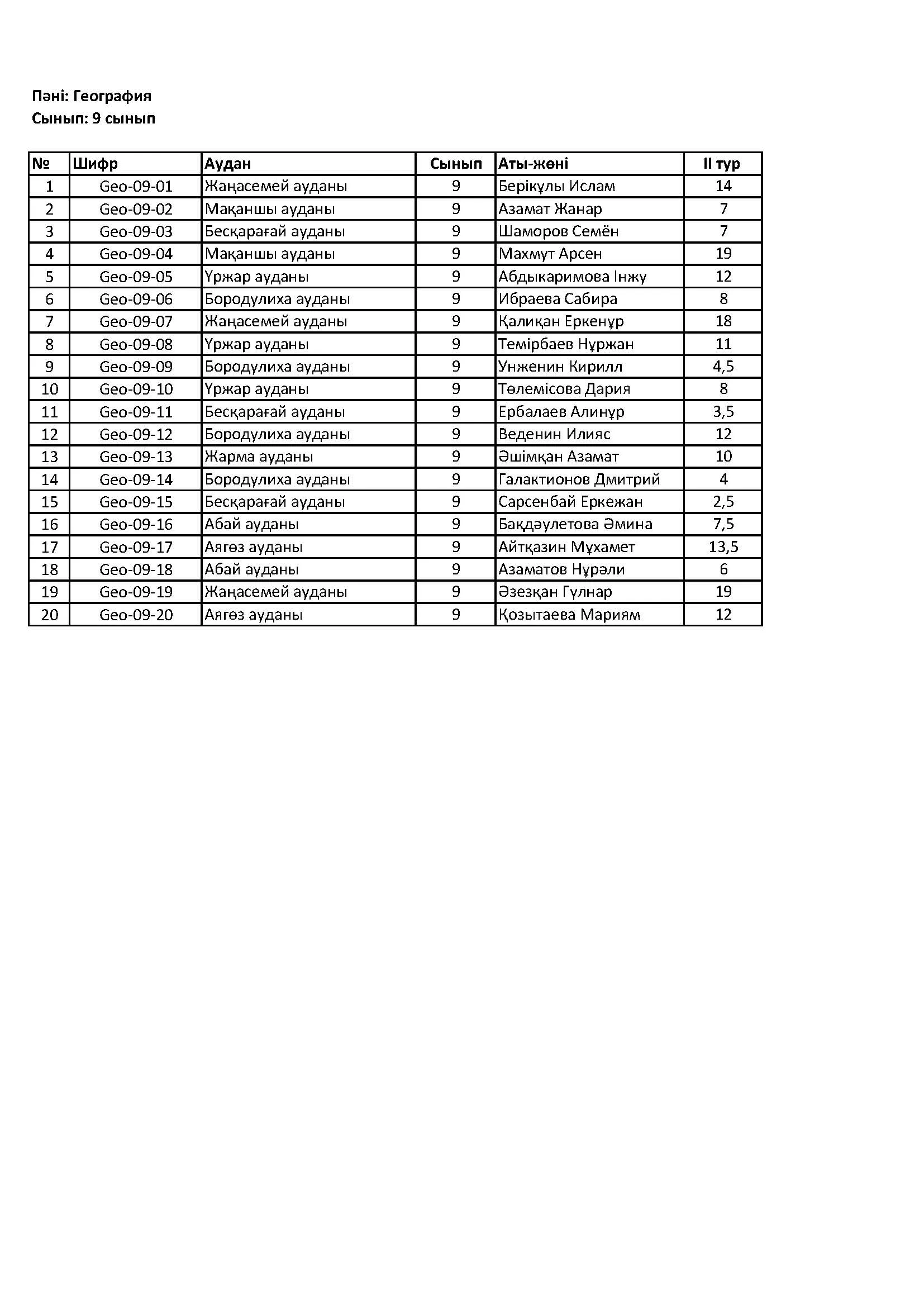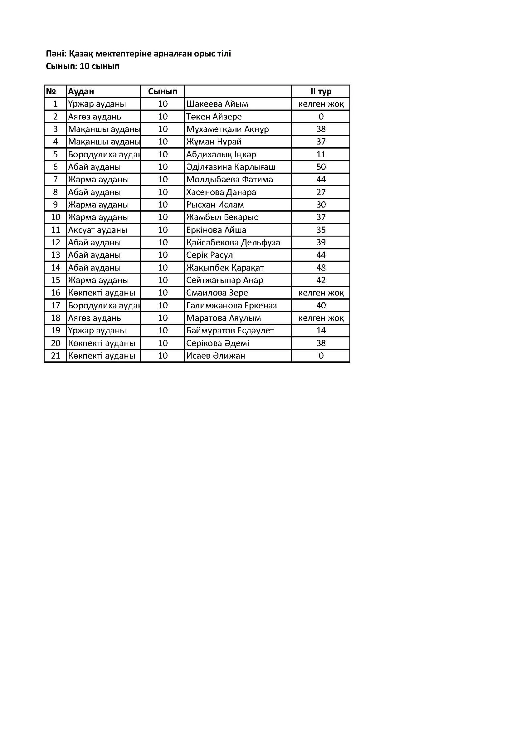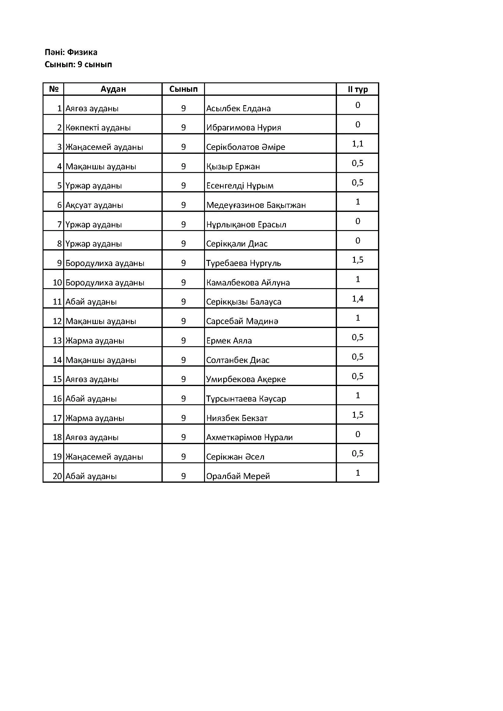 Итоги Областного этапа республиканской олимпиады по общеобразовательным предметам для учащихся 9-11 (12) классов сельских школ (2 тур) Дарын Орталығы 29.10.2025