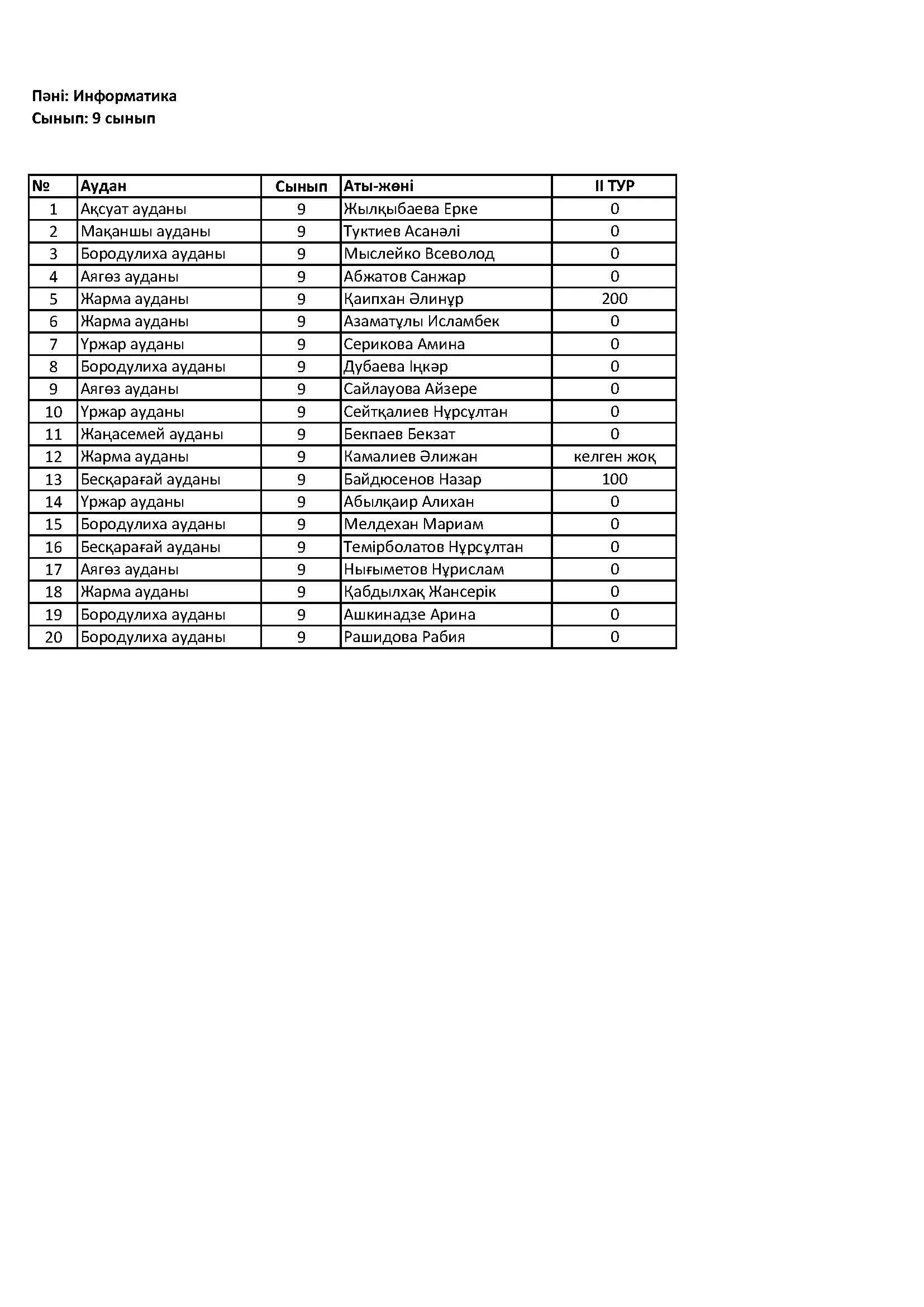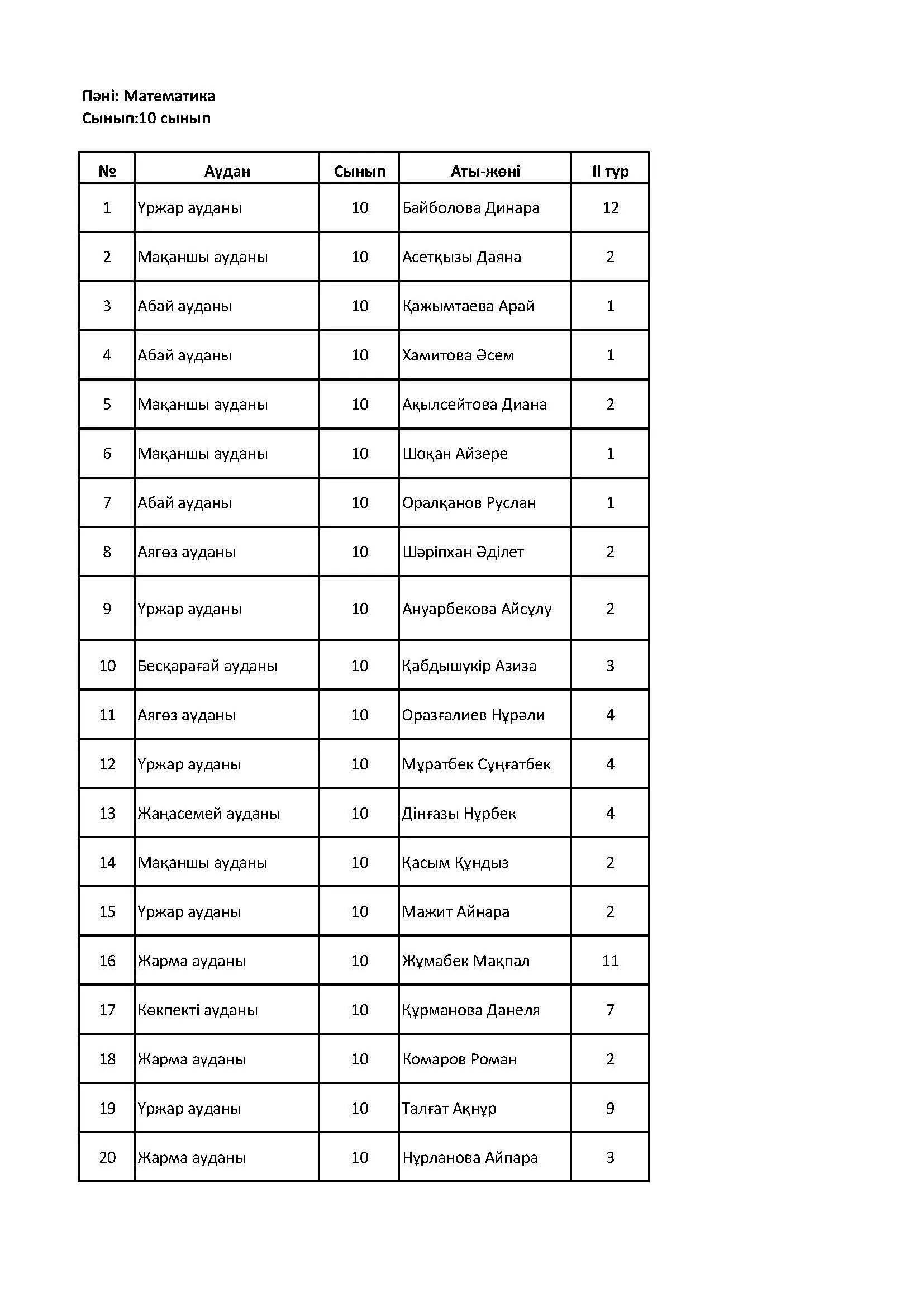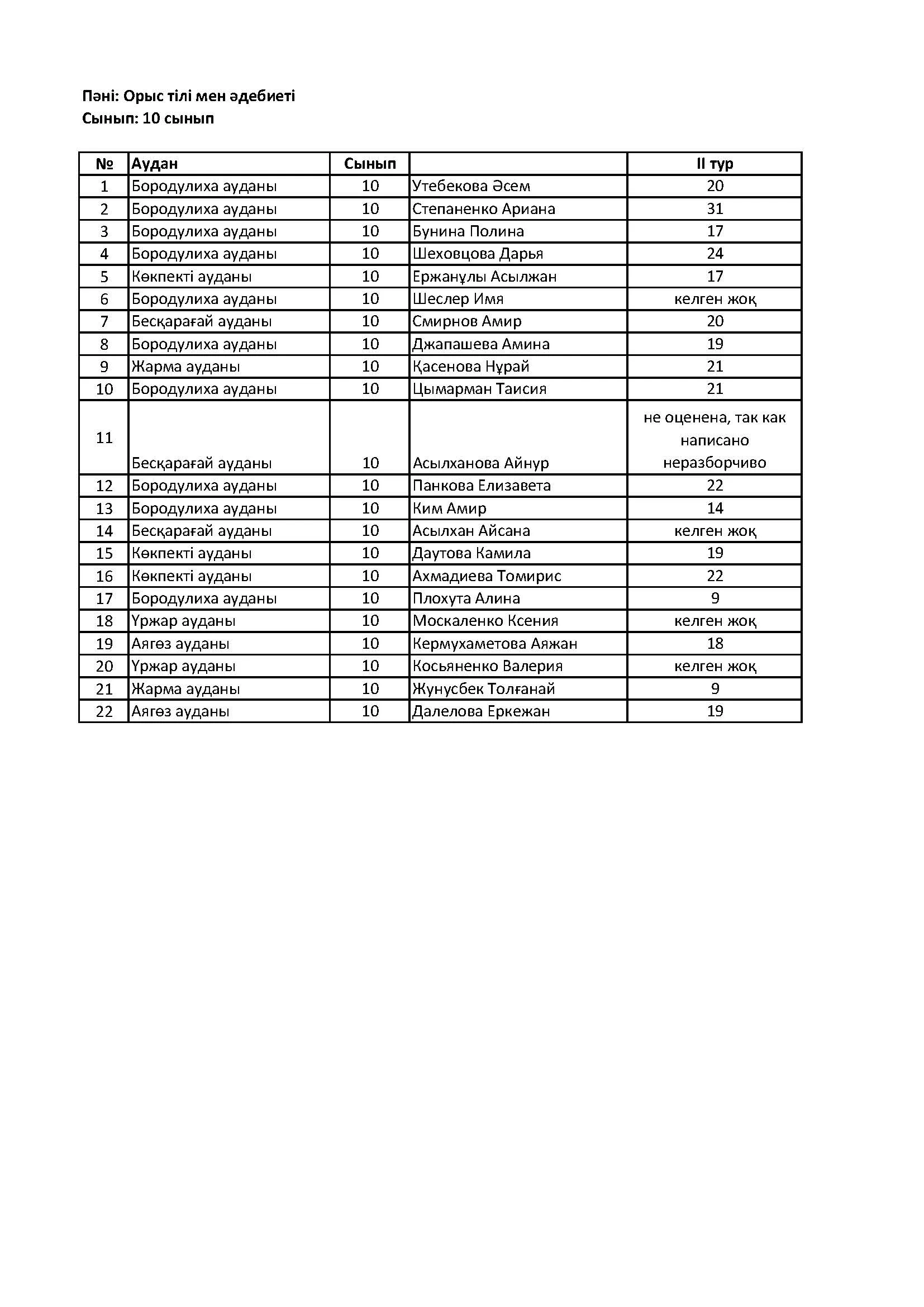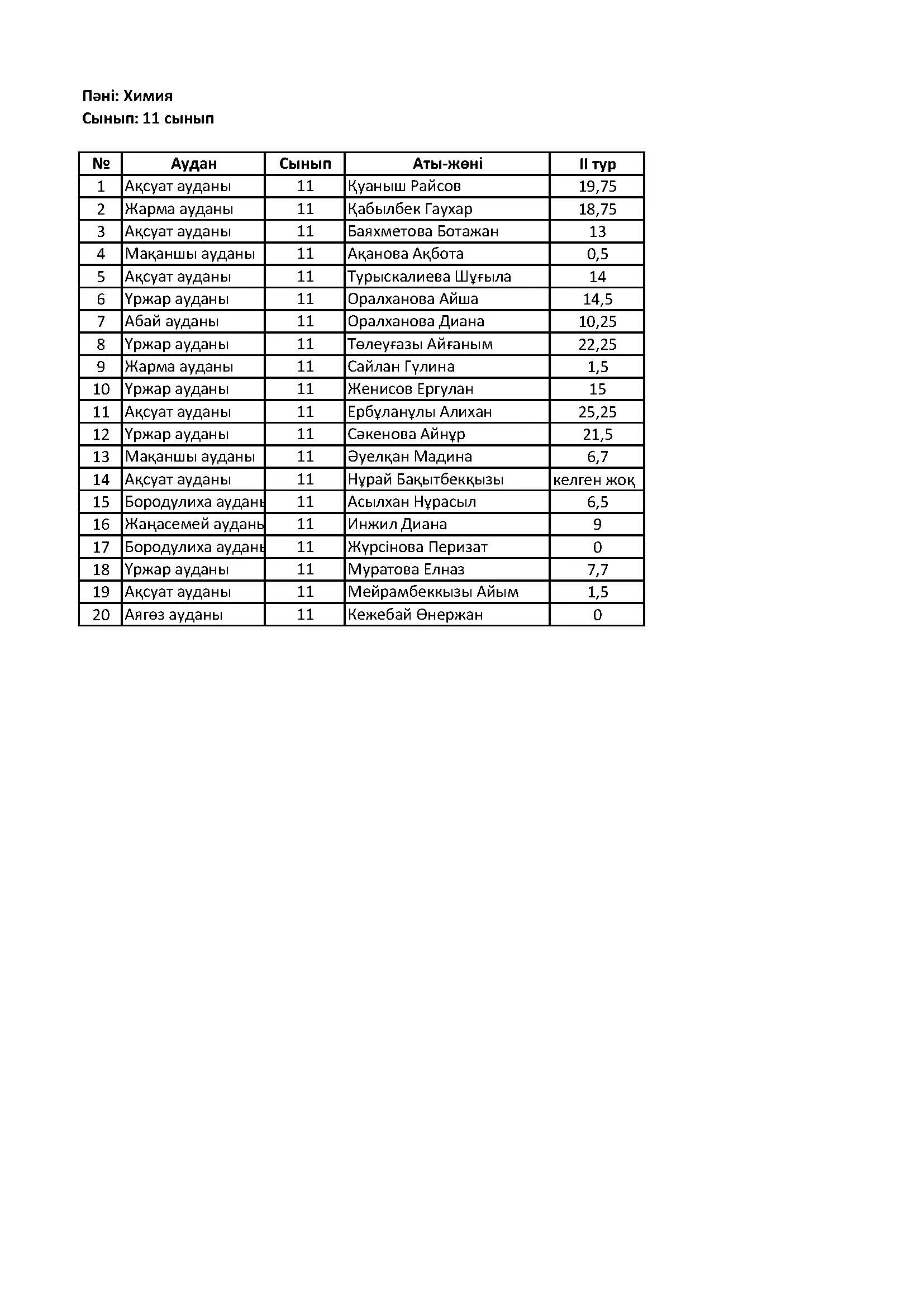 Итоги Областного этапа республиканской олимпиады по общеобразовательным предметам для учащихся 9-11 (12) классов сельских школ (2 тур) Дарын Орталығы 29.10.2025