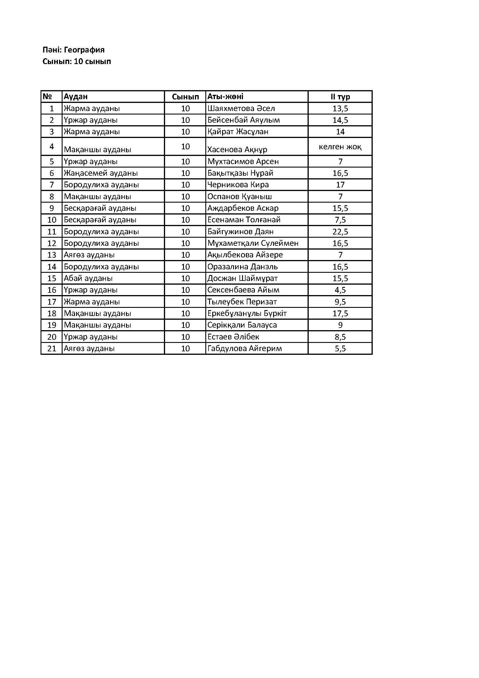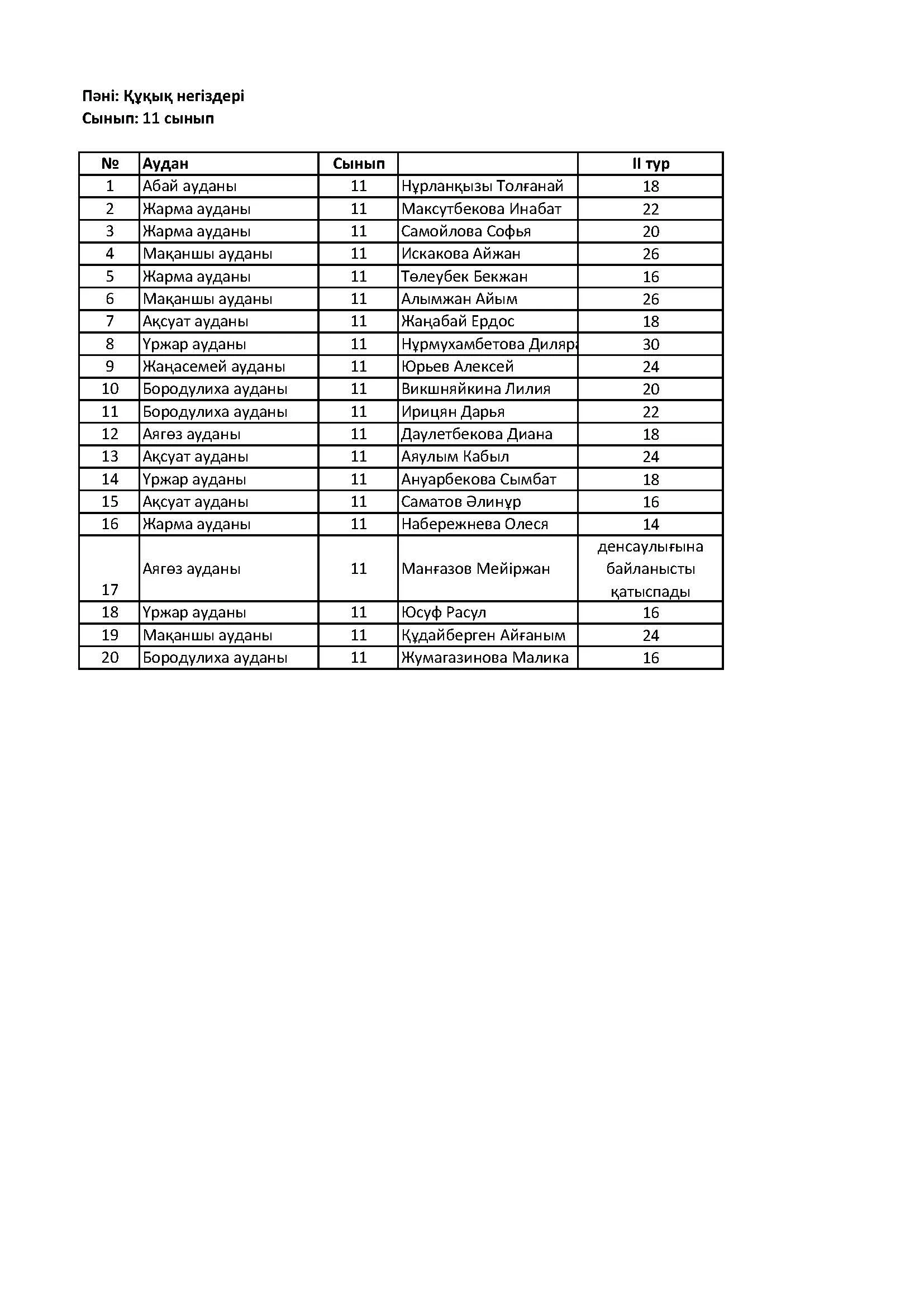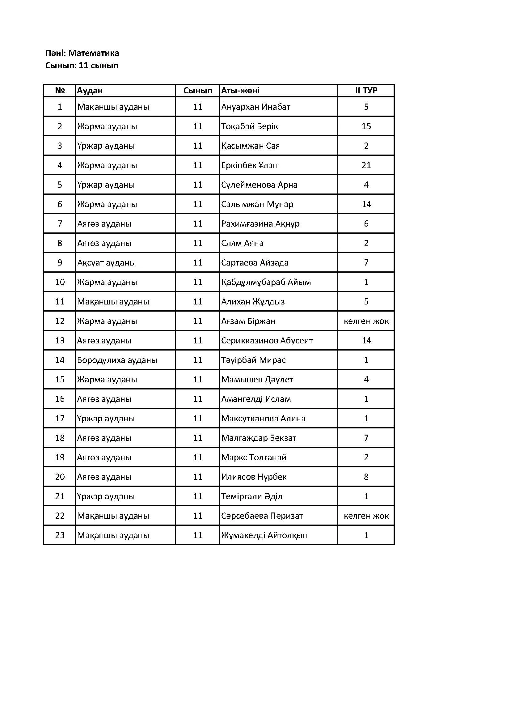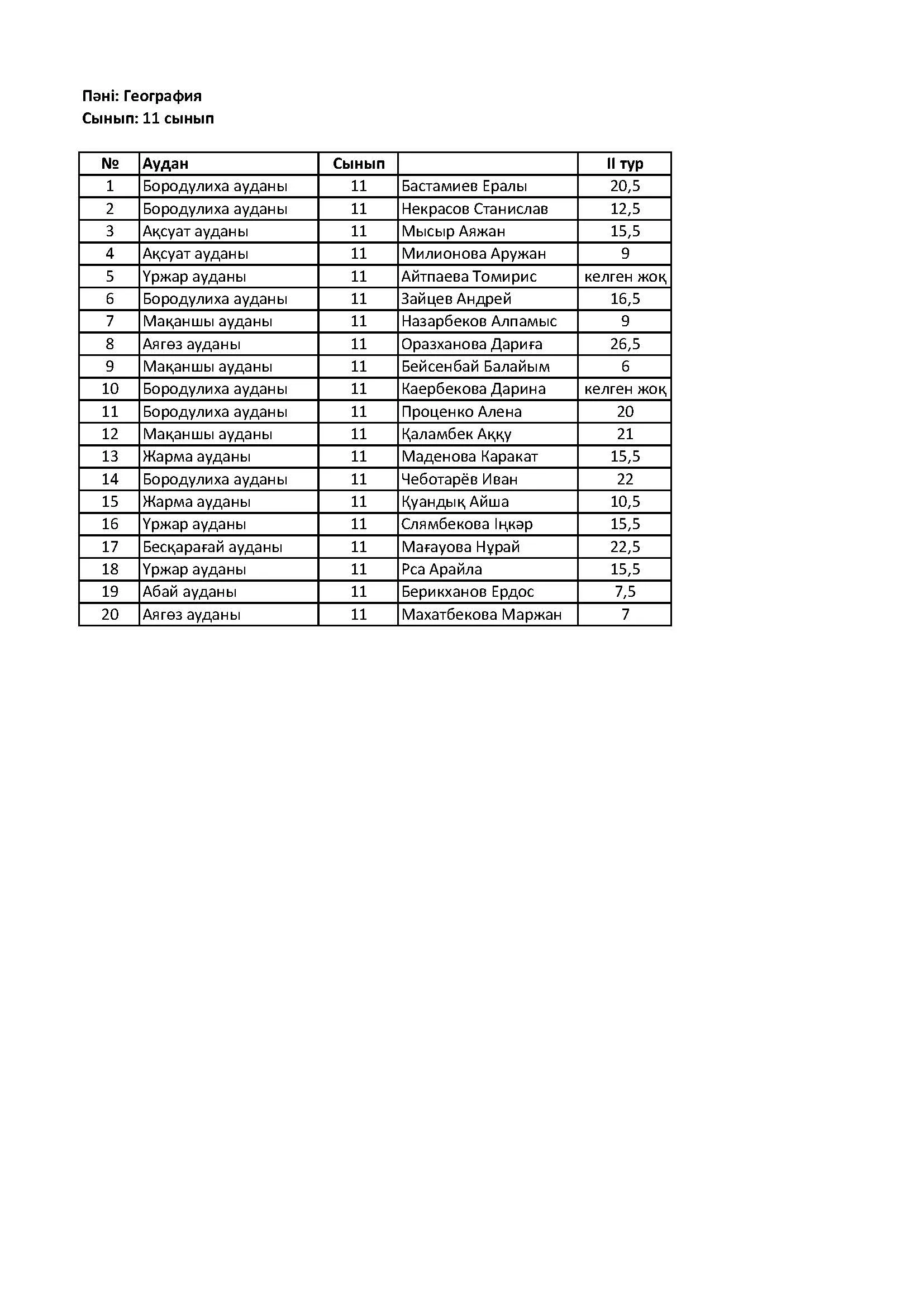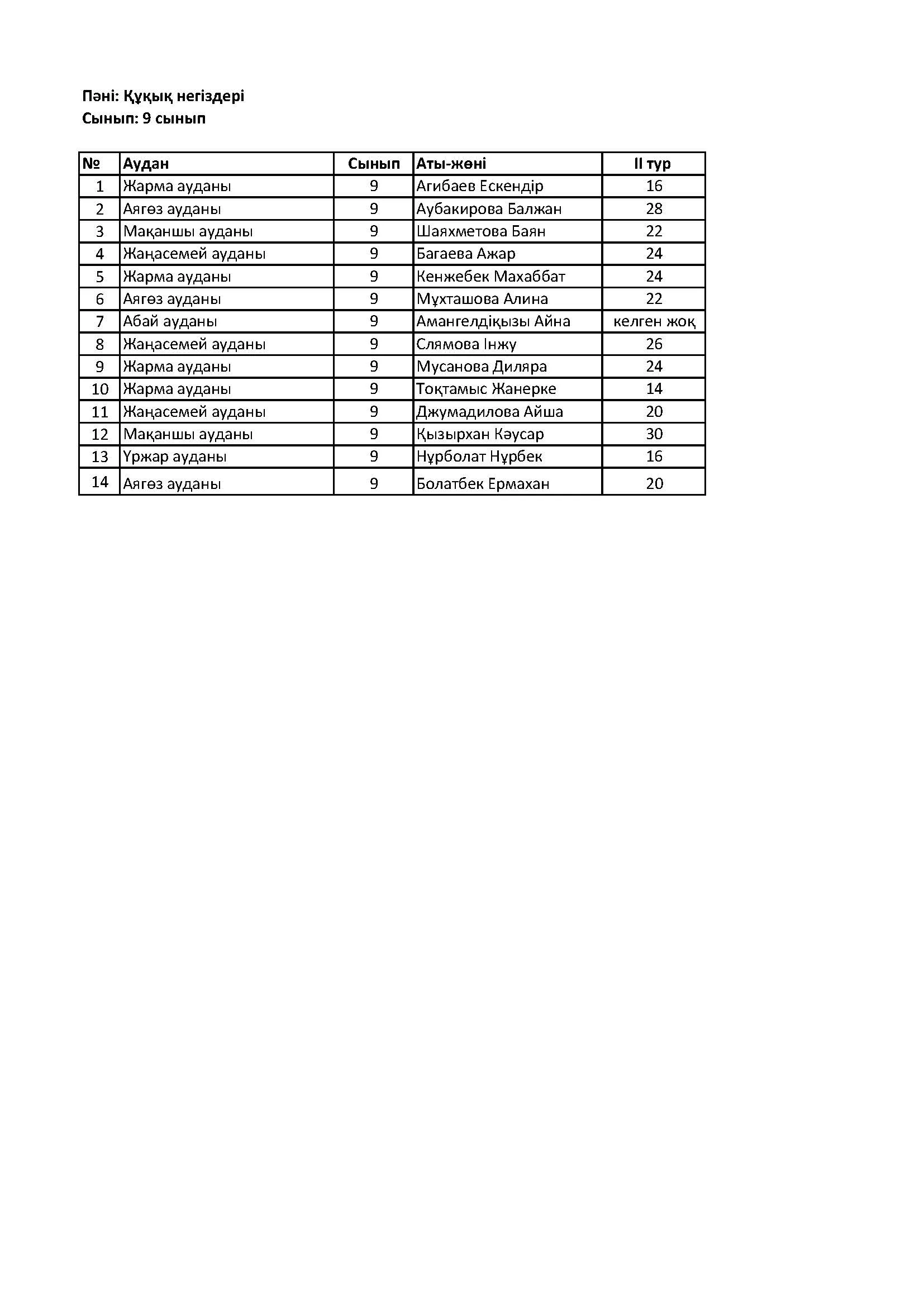 Итоги Областного этапа республиканской олимпиады по общеобразовательным предметам для учащихся 9-11 (12) классов сельских школ (2 тур) Дарын Орталығы 29.10.2025