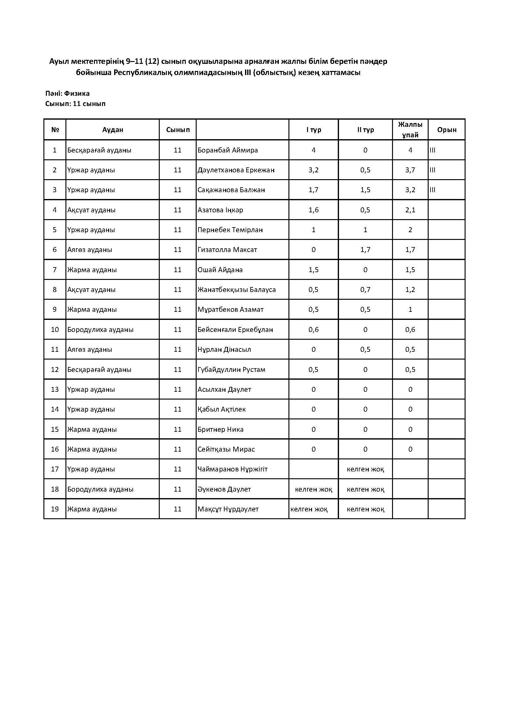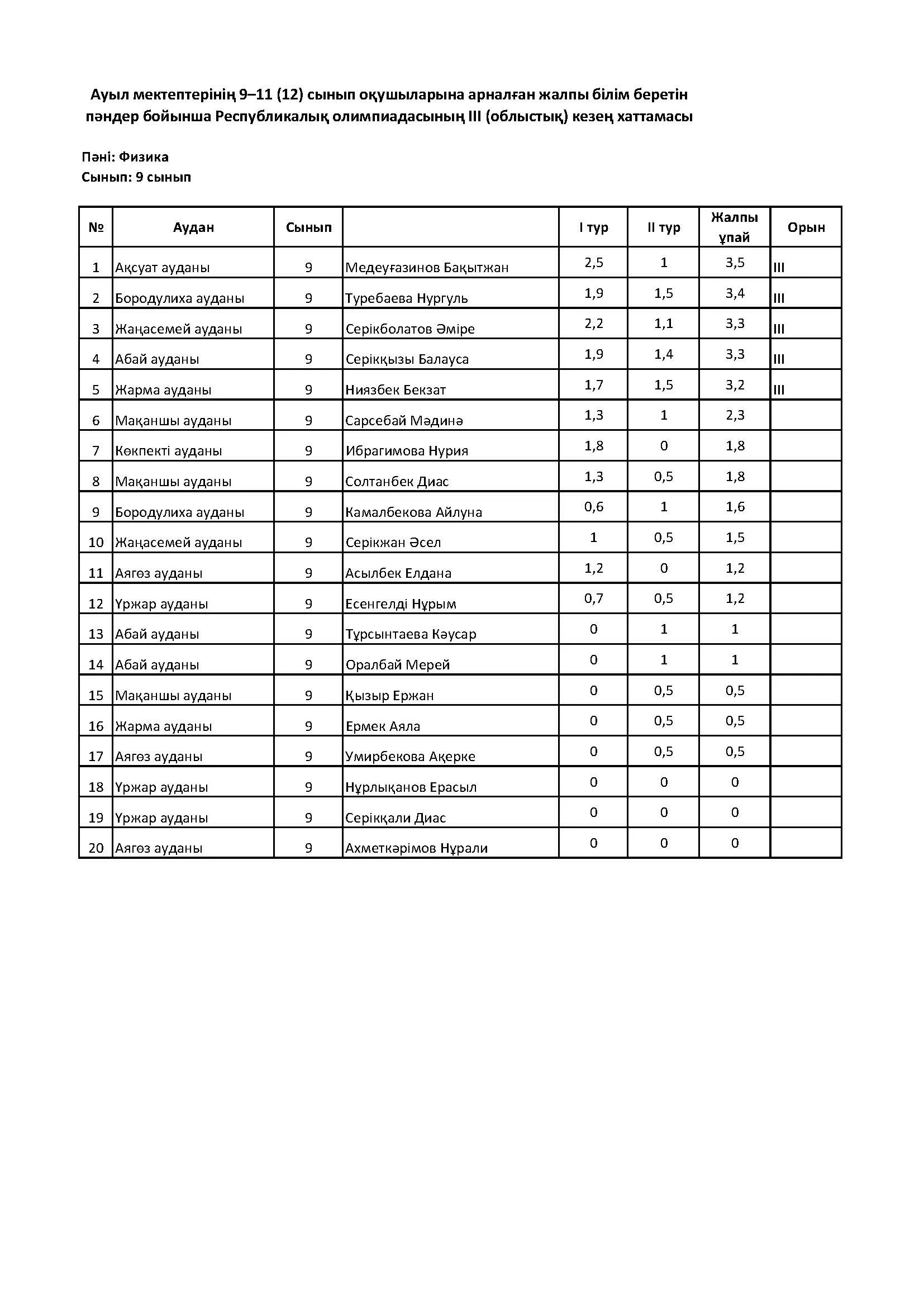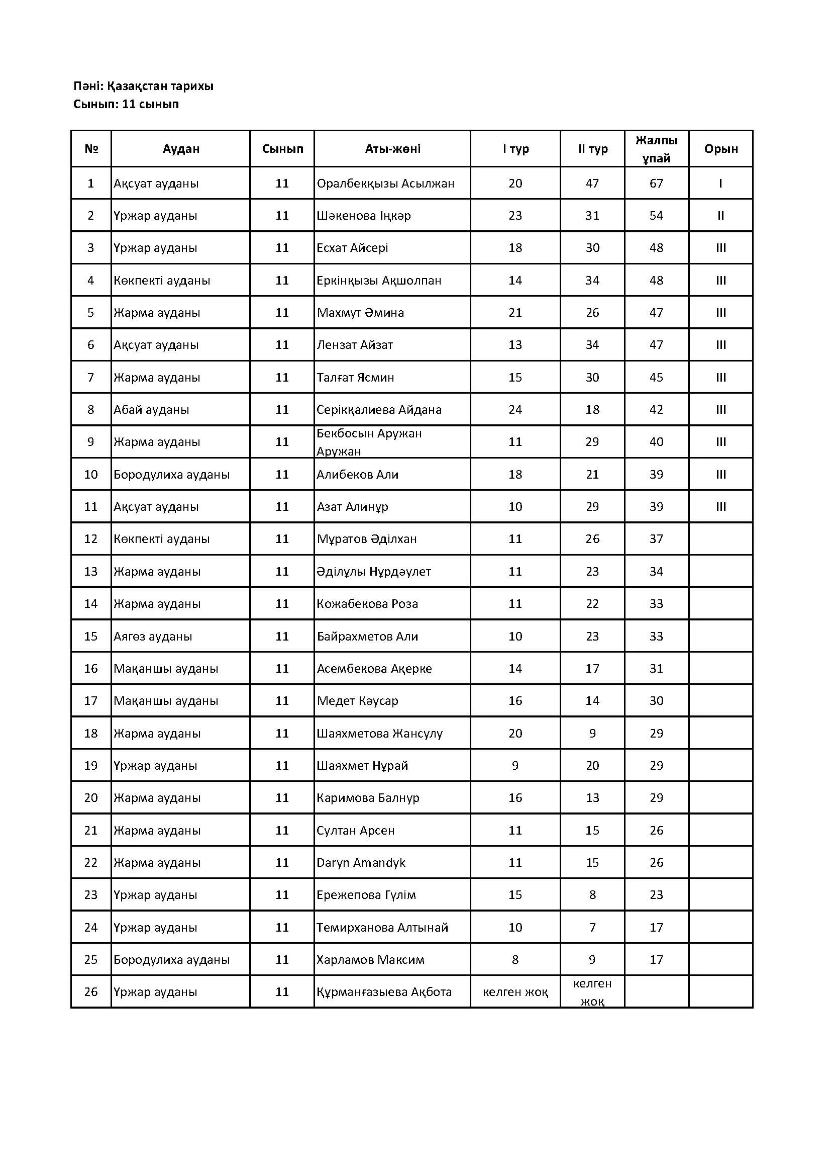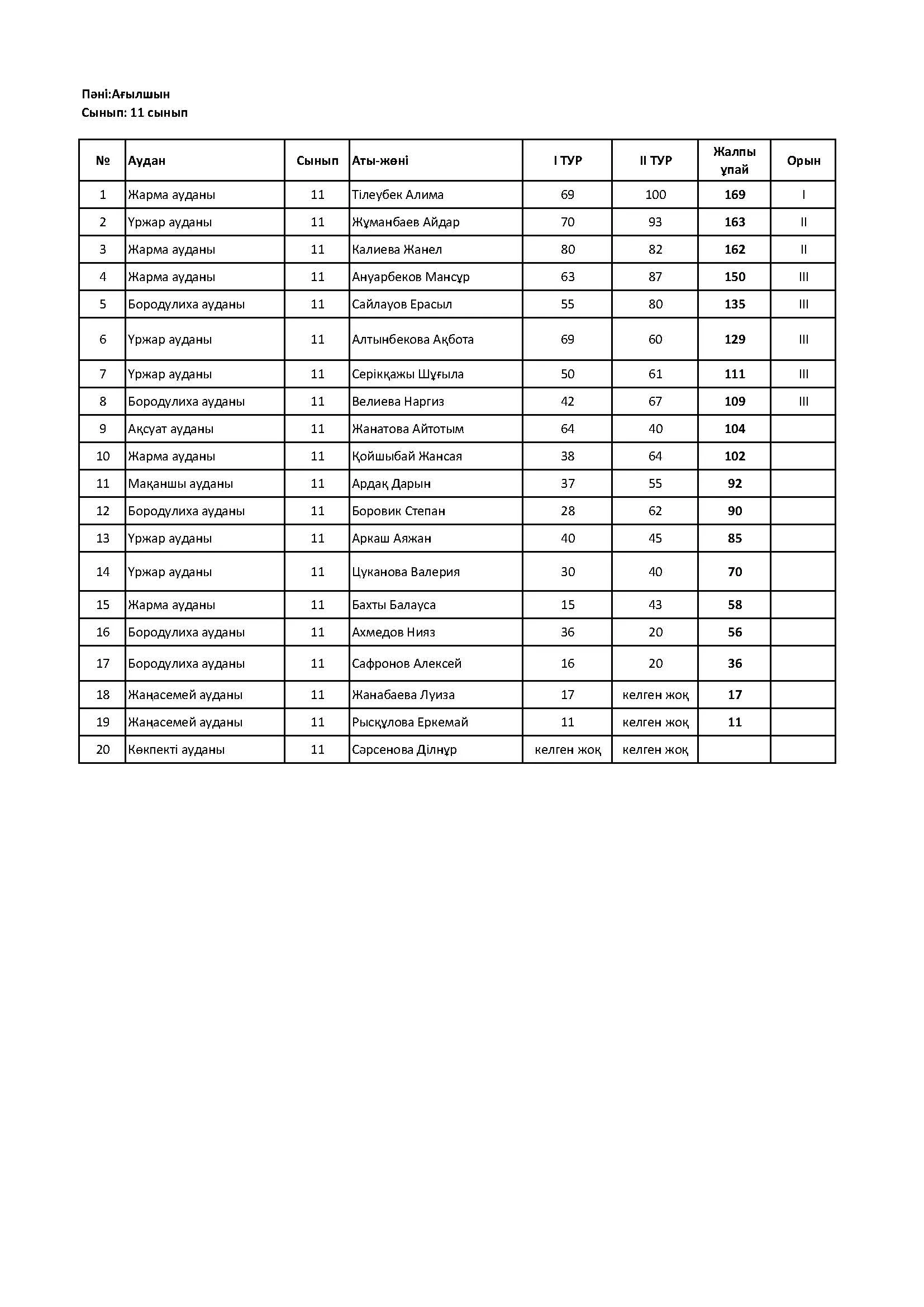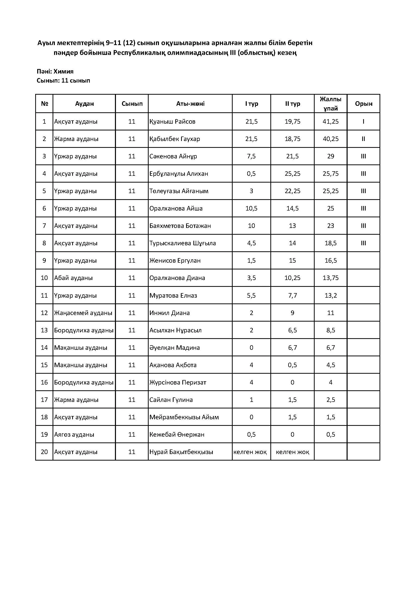 Итоги Областного этапа республиканской олимпиады по общеобразовательным предметам для учащихся 9-11 (12) классов сельских школ Дарын Орталығы 30.10.2025