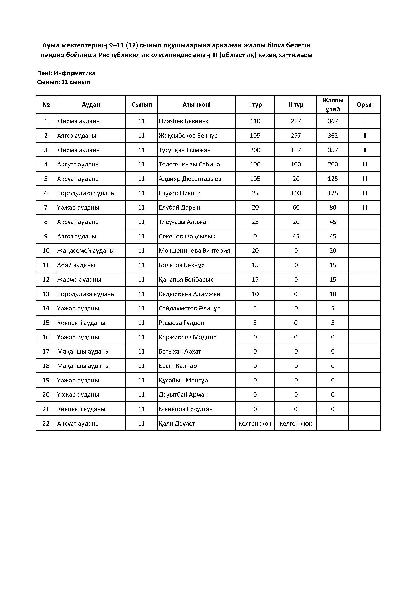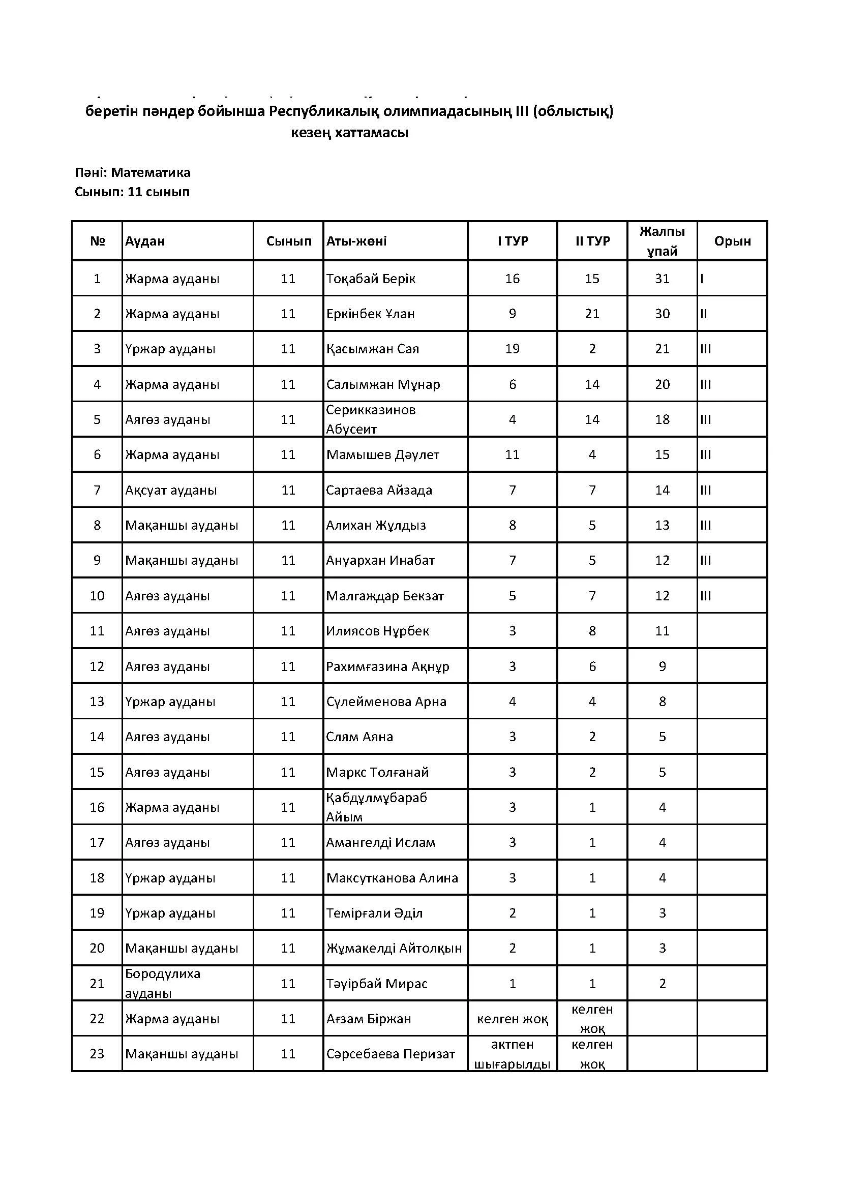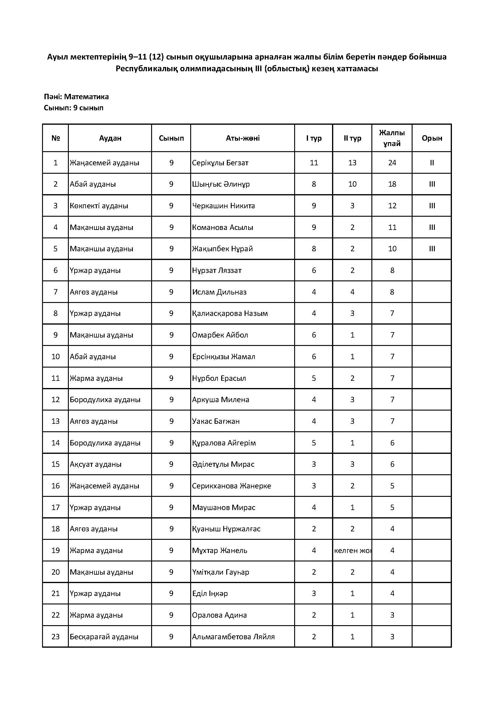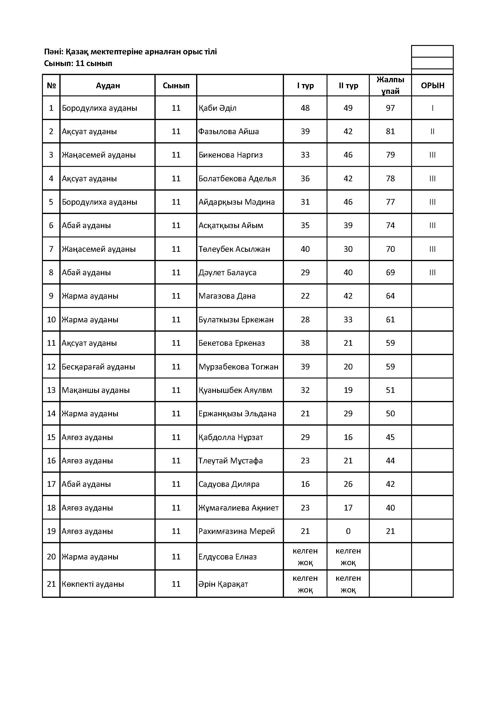 Итоги Областного этапа республиканской олимпиады по общеобразовательным предметам для учащихся 9-11 (12) классов сельских школ Дарын Орталығы 30.10.2025