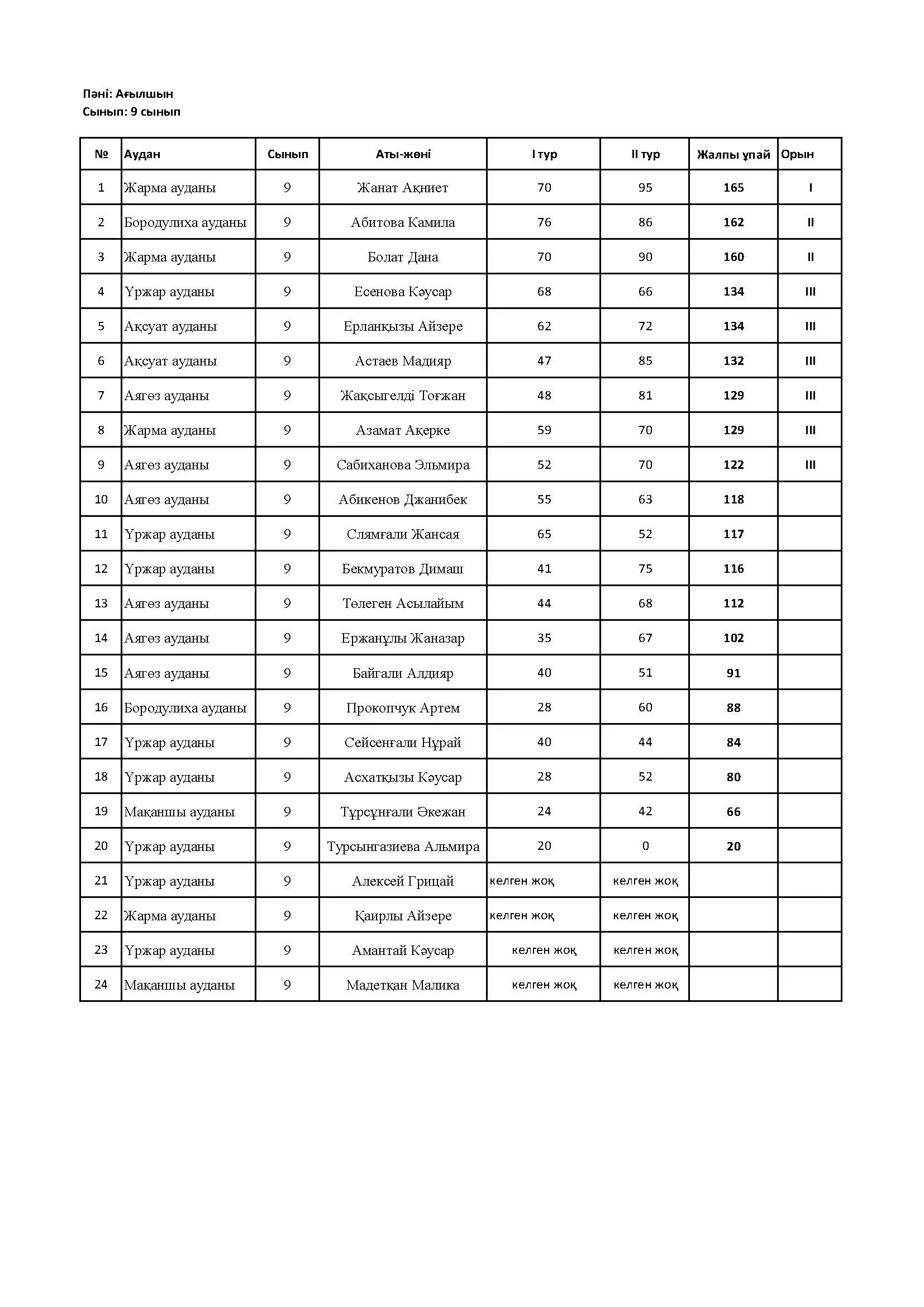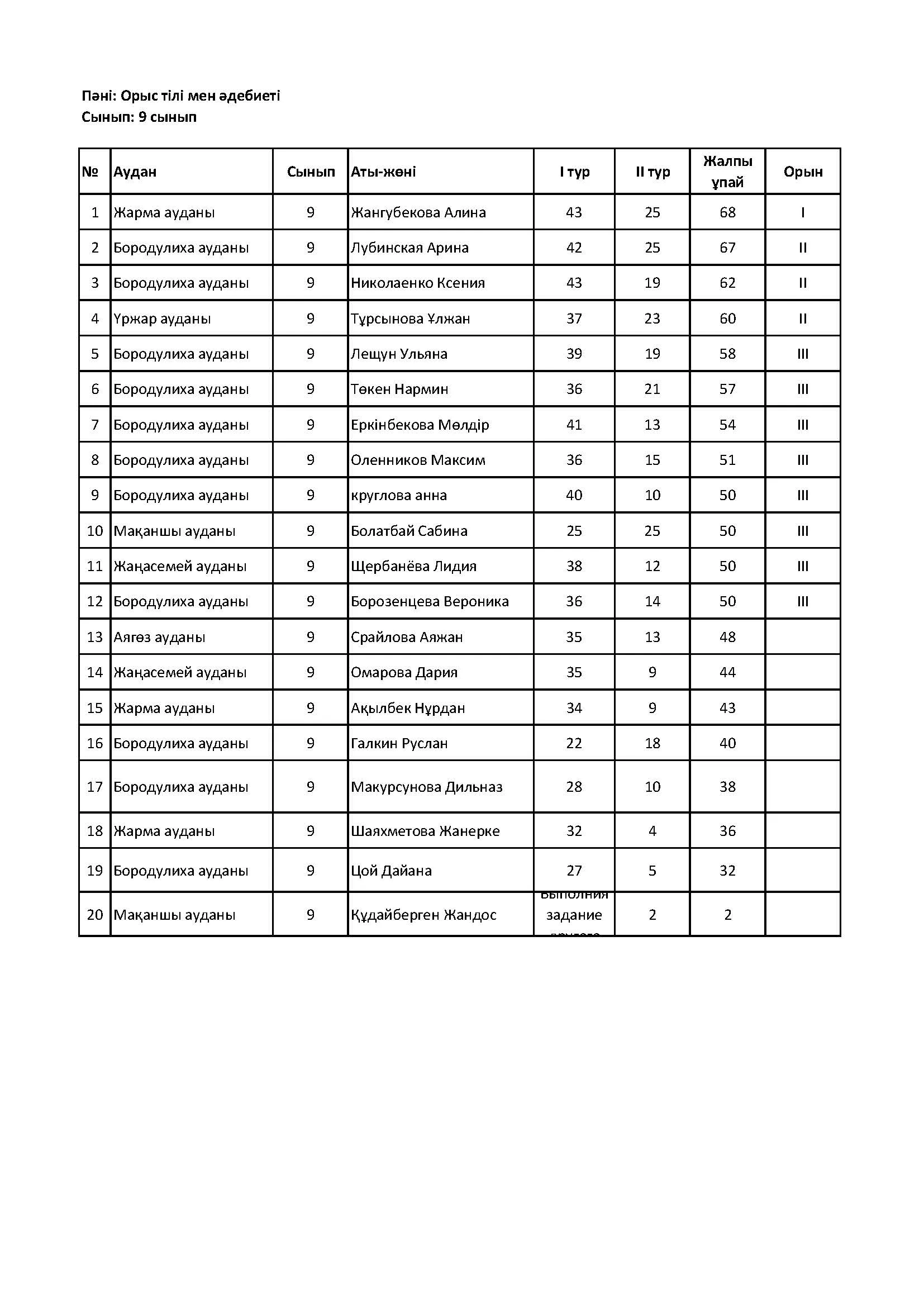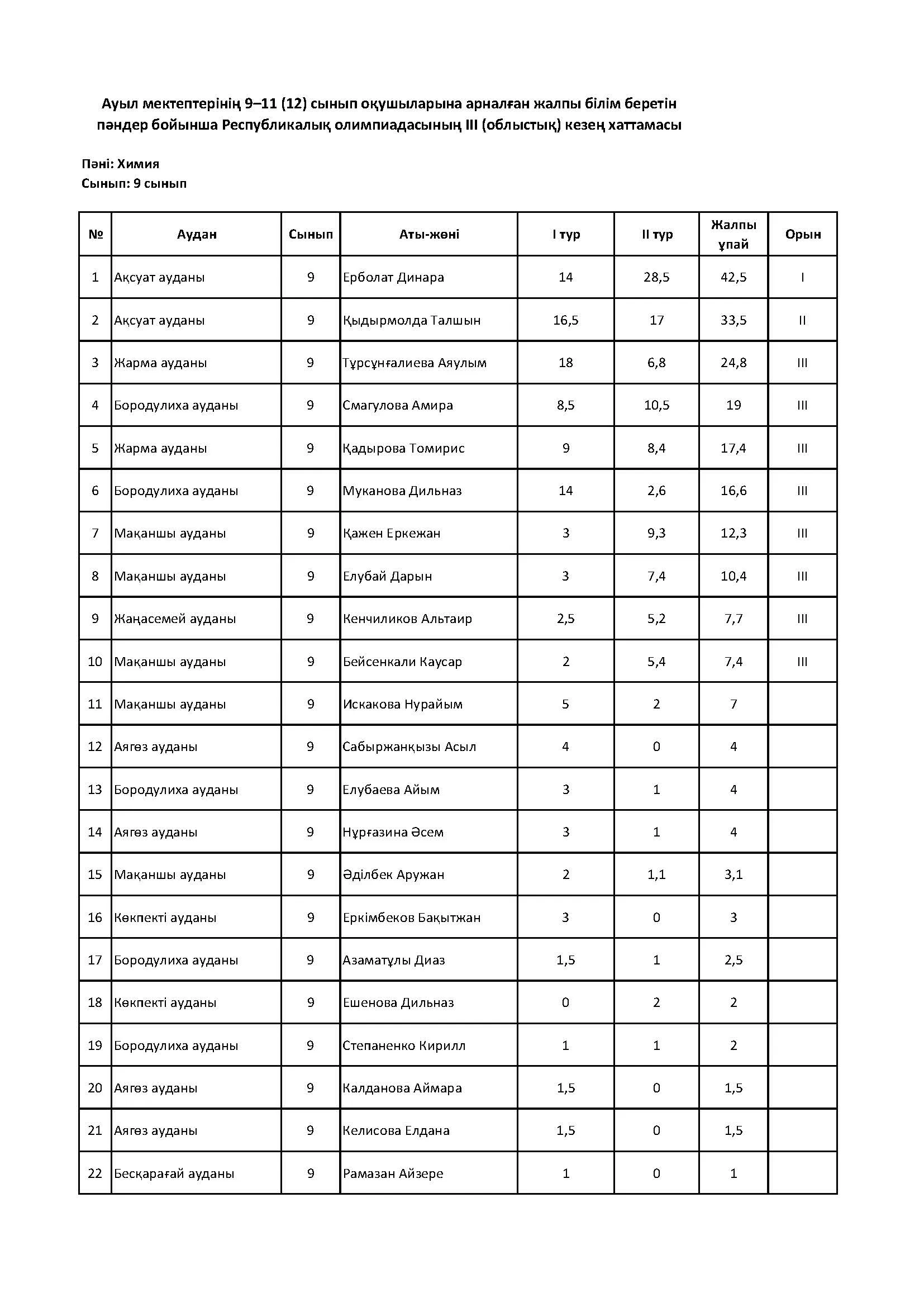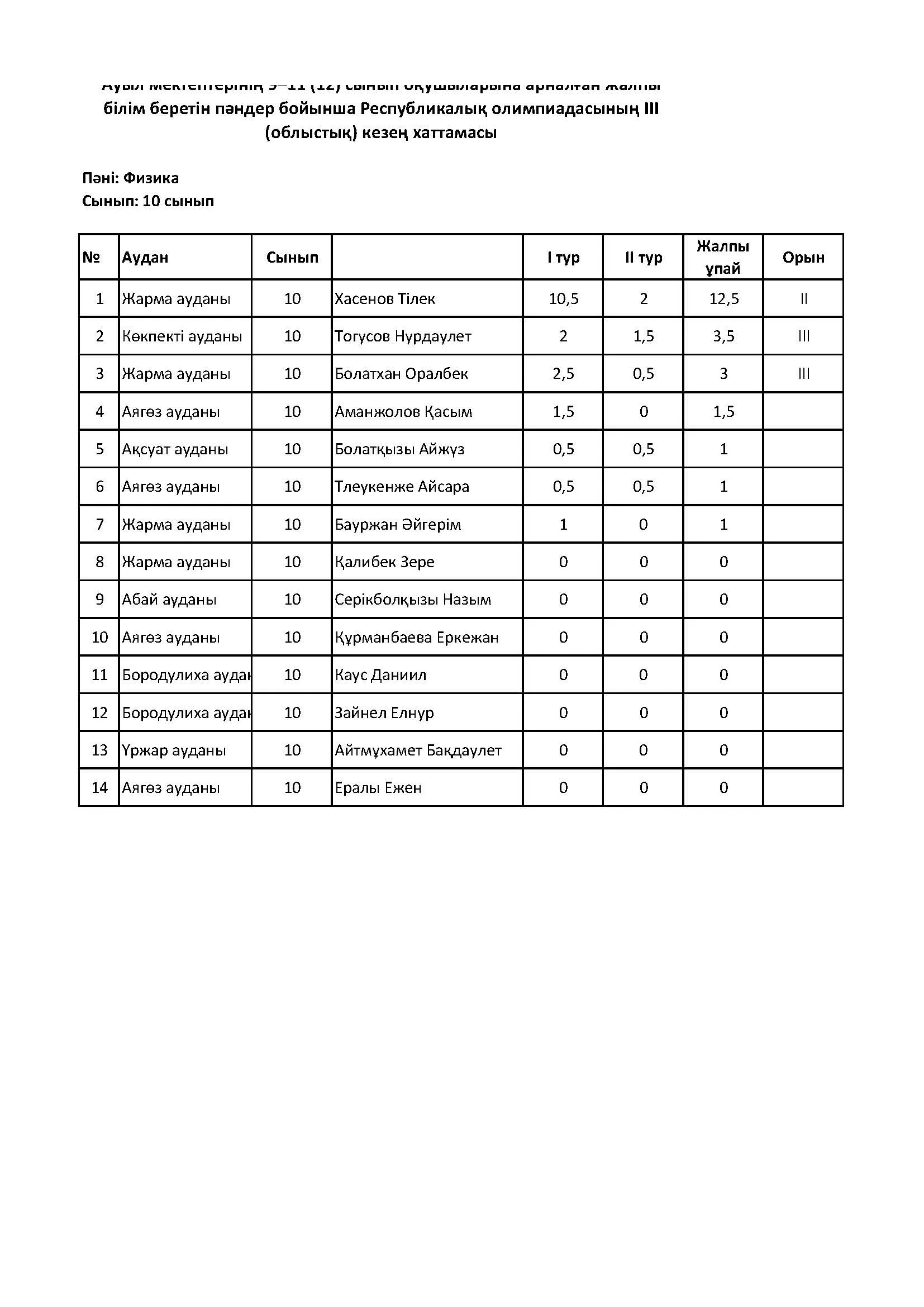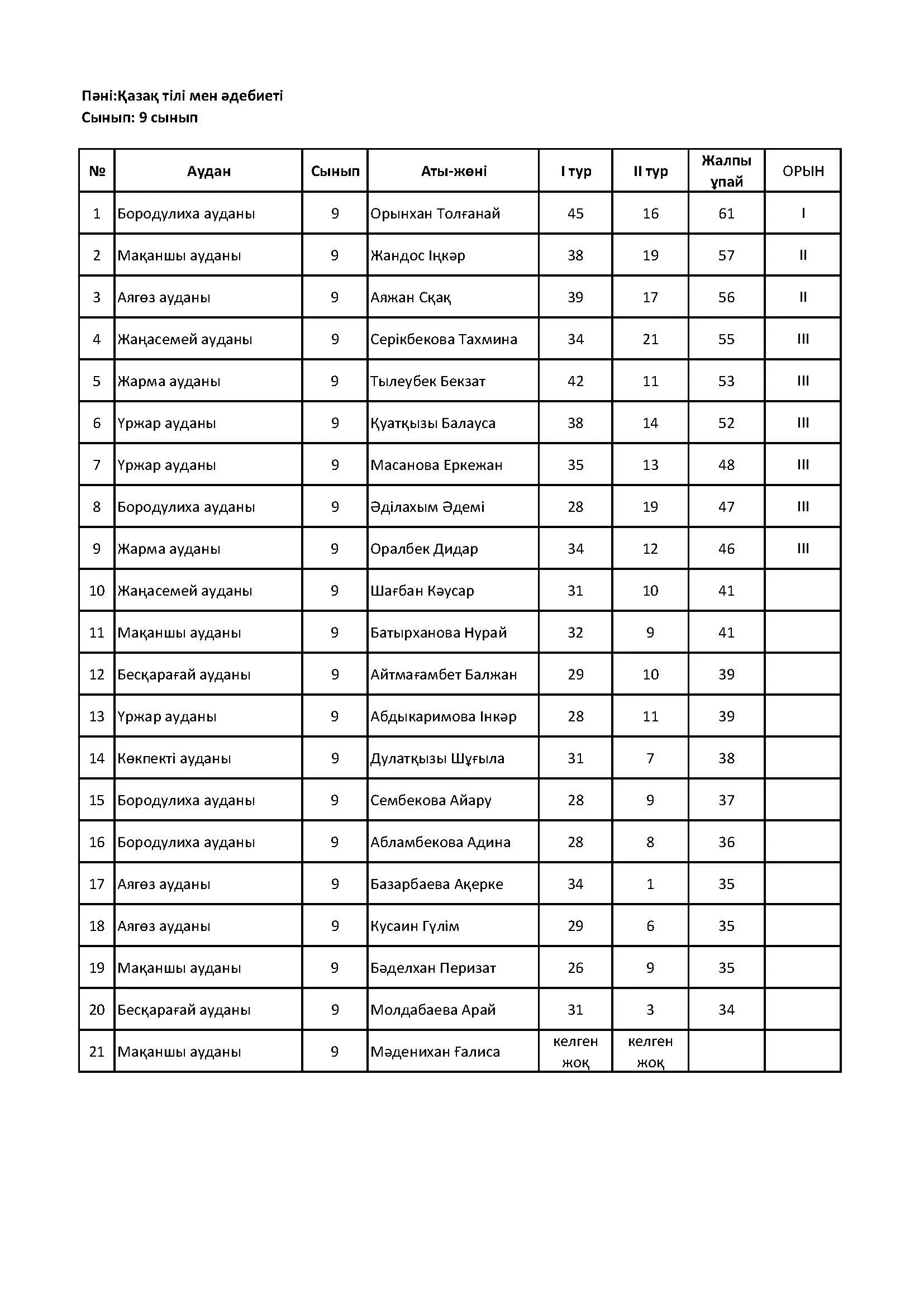 Итоги Областного этапа республиканской олимпиады по общеобразовательным предметам для учащихся 9-11 (12) классов сельских школ Дарын Орталығы 30.10.2025