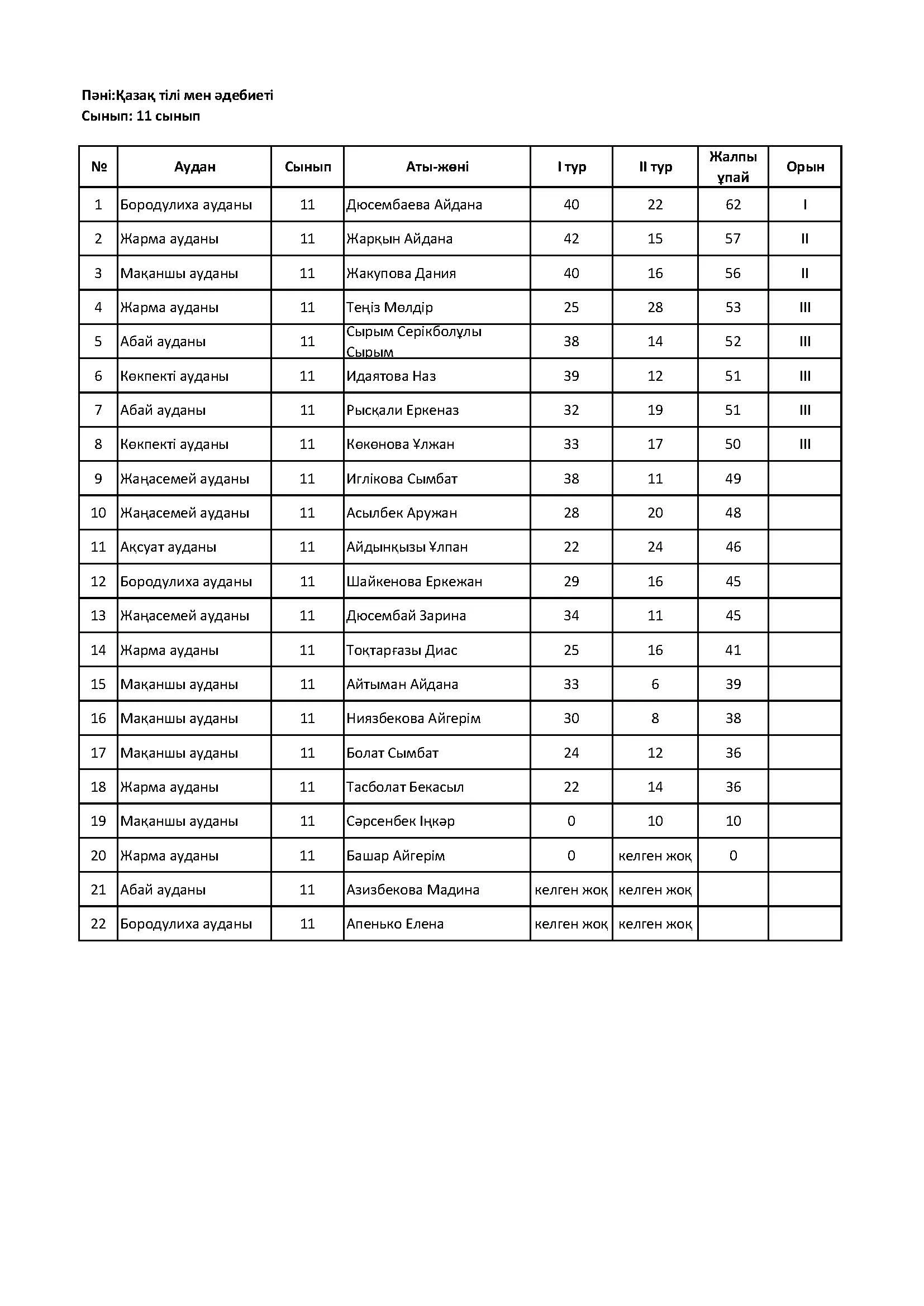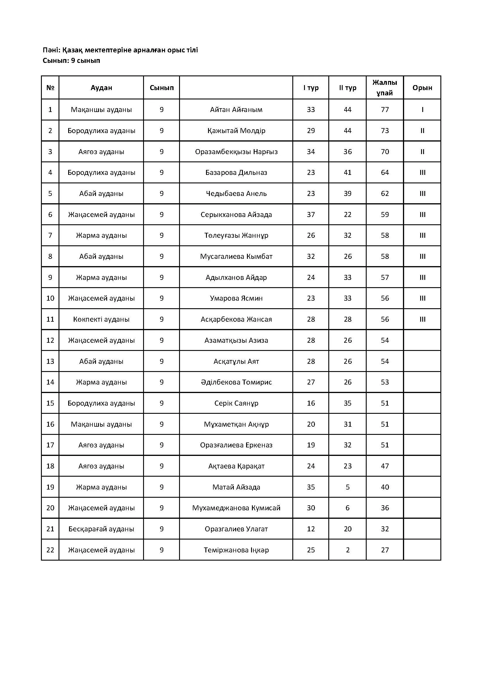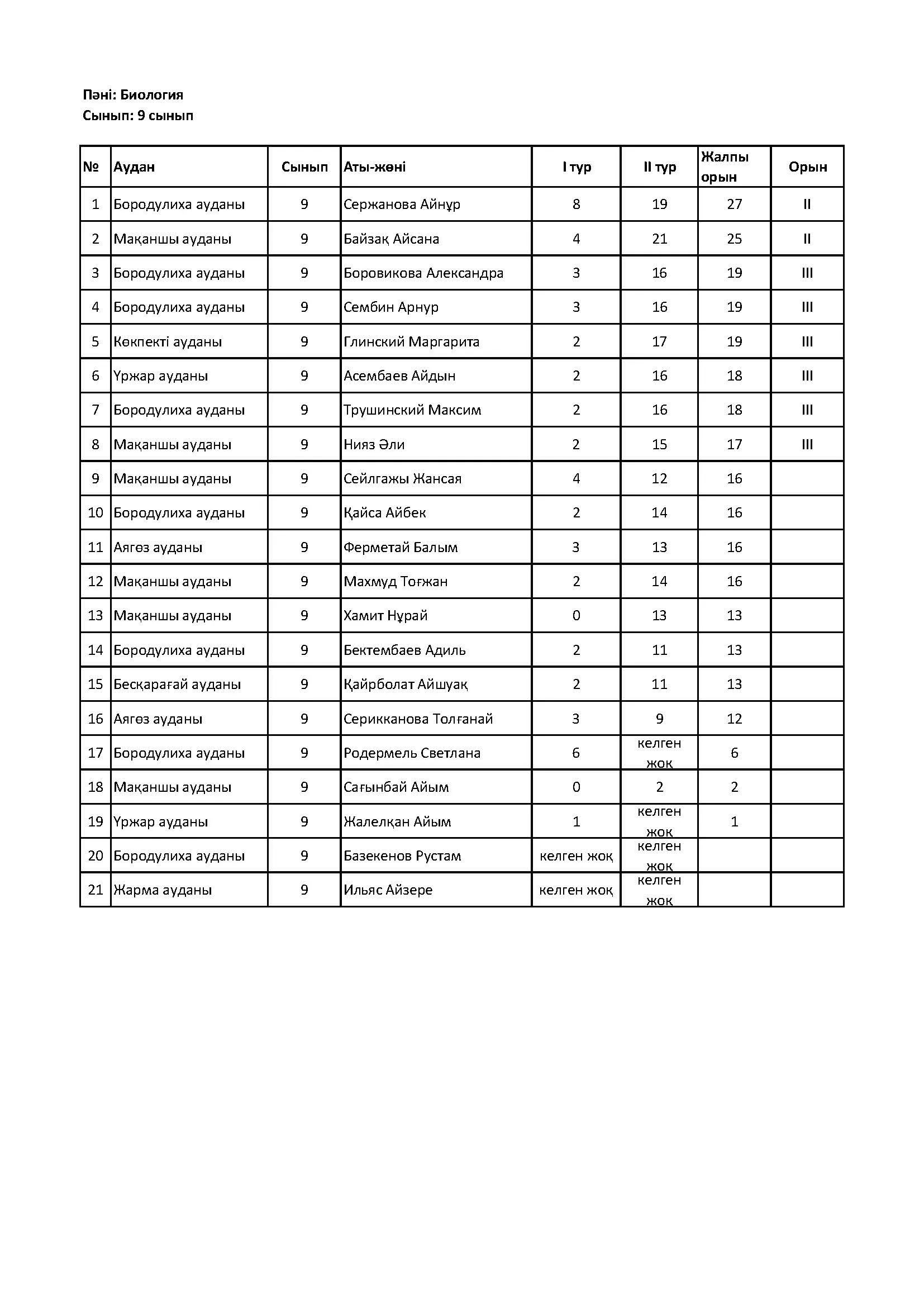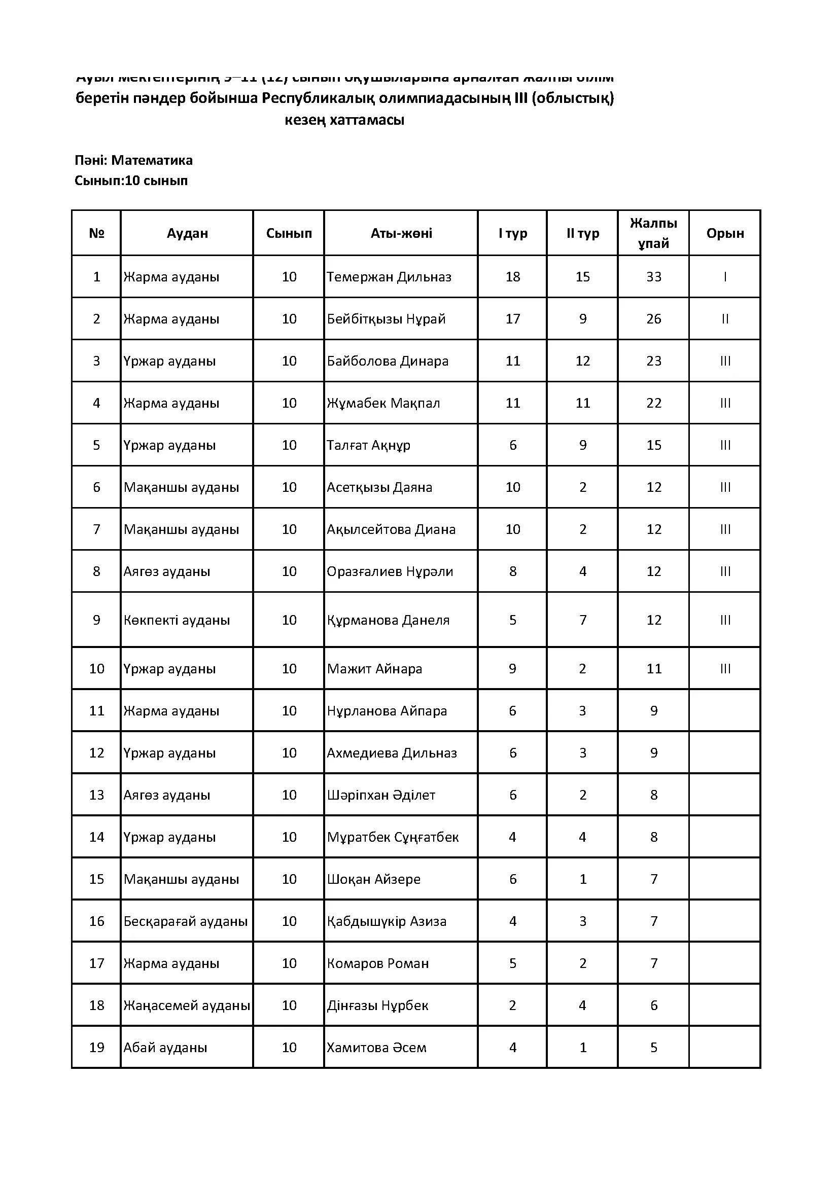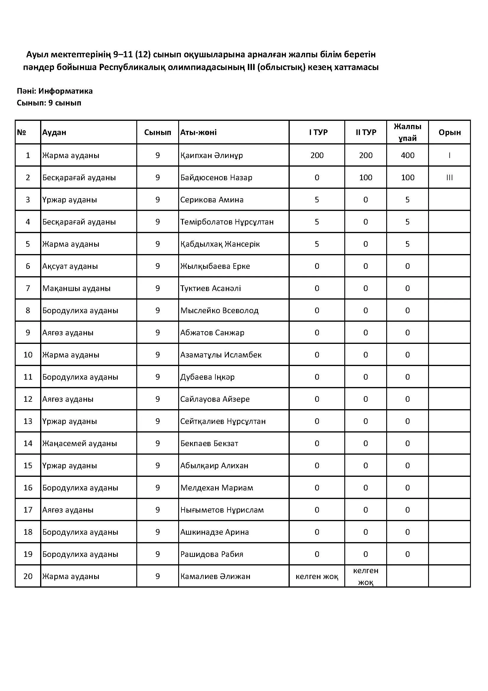 Итоги Областного этапа республиканской олимпиады по общеобразовательным предметам для учащихся 9-11 (12) классов сельских школ Дарын Орталығы 30.10.2025