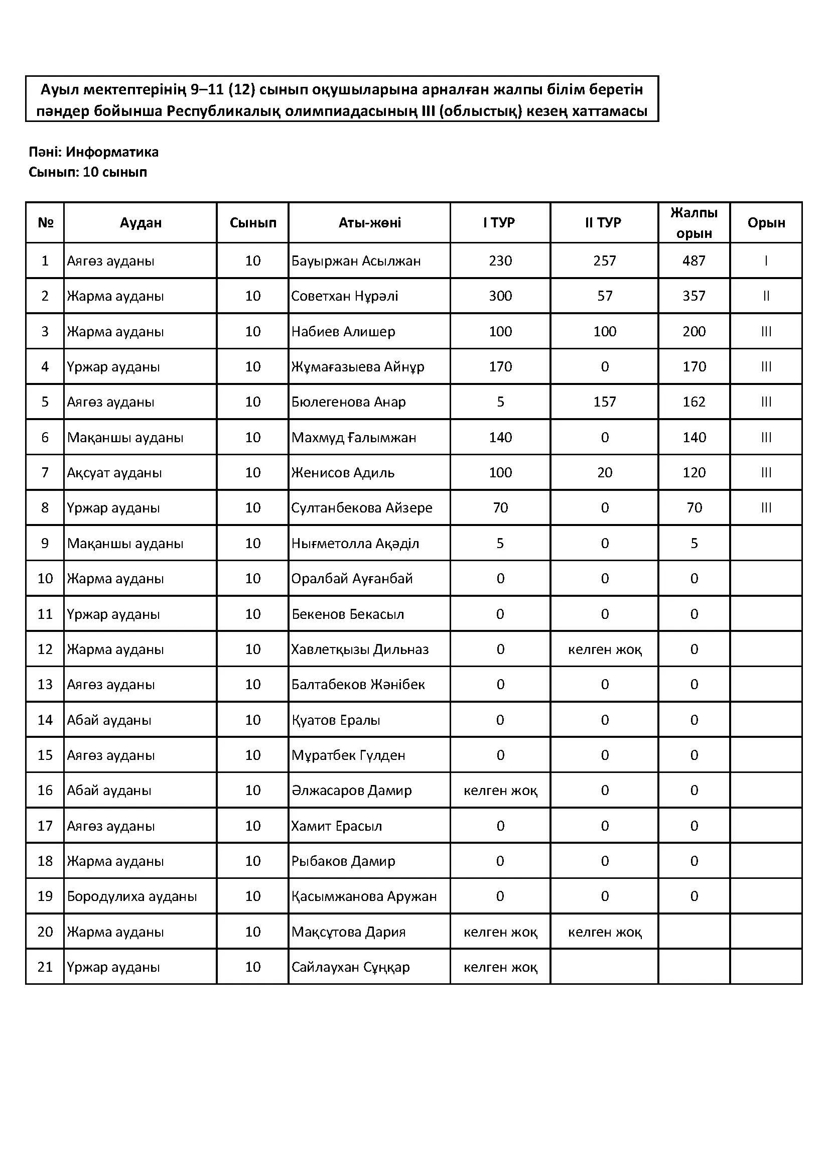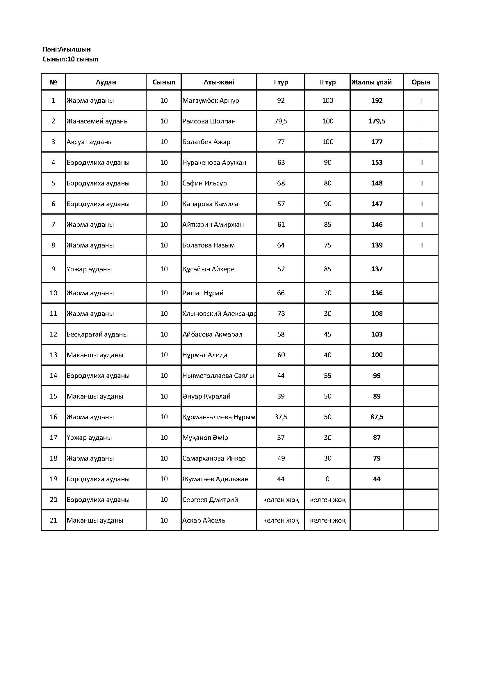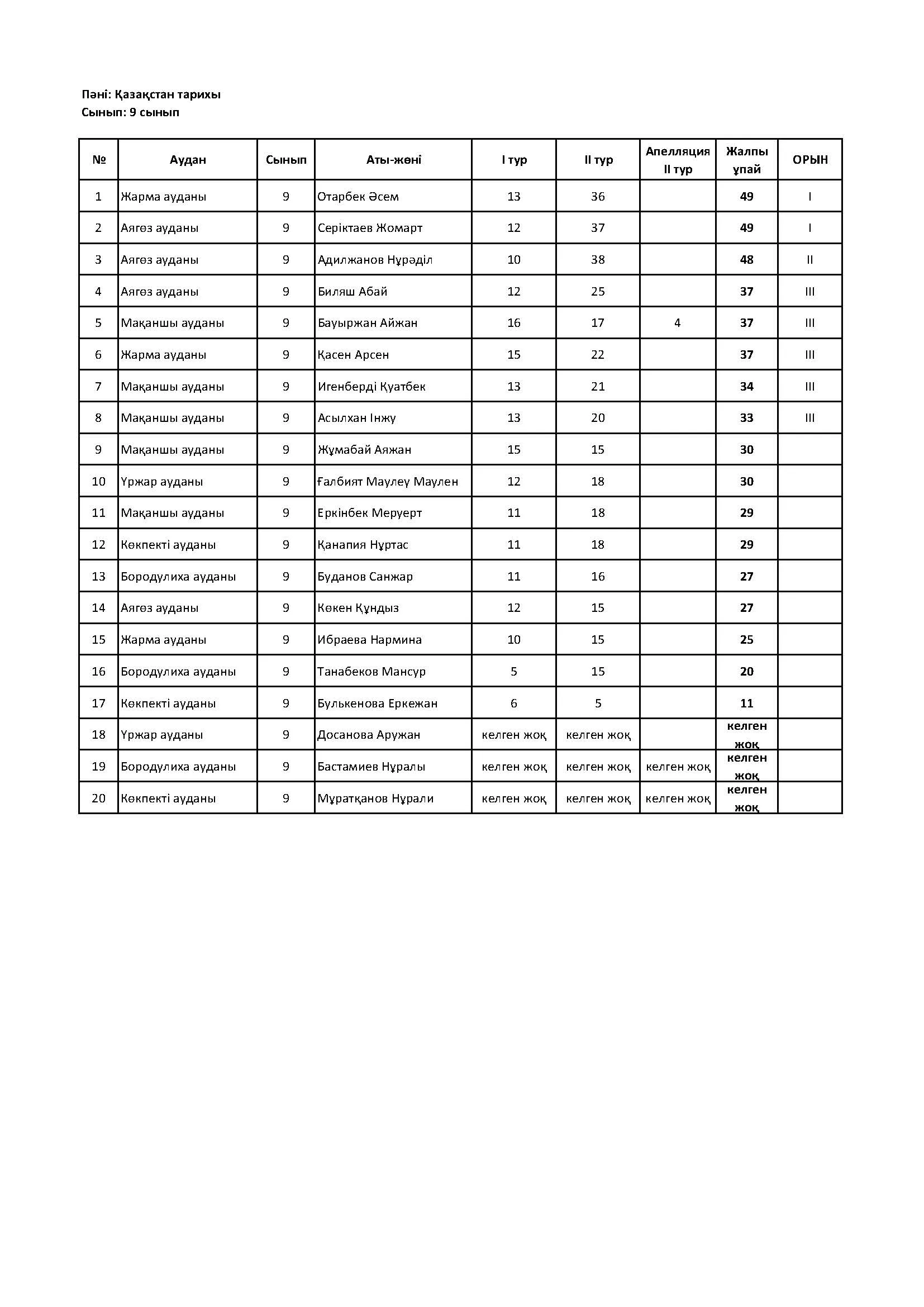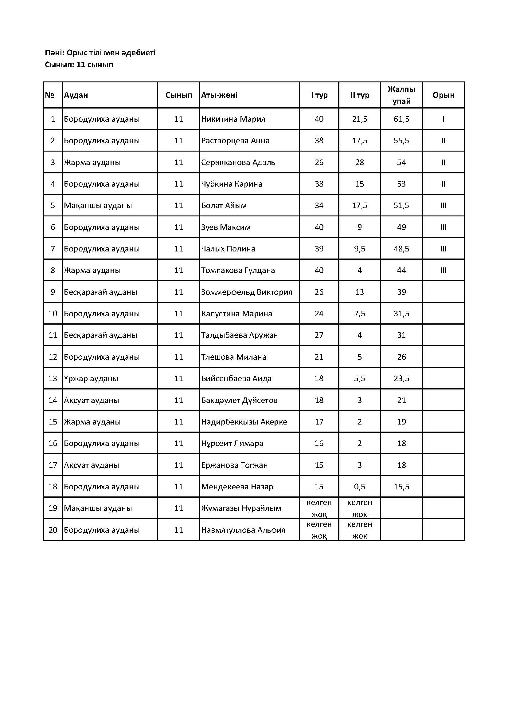 Итоги Областного этапа республиканской олимпиады по общеобразовательным предметам для учащихся 9-11 (12) классов сельских школ Дарын Орталығы 30.10.2025