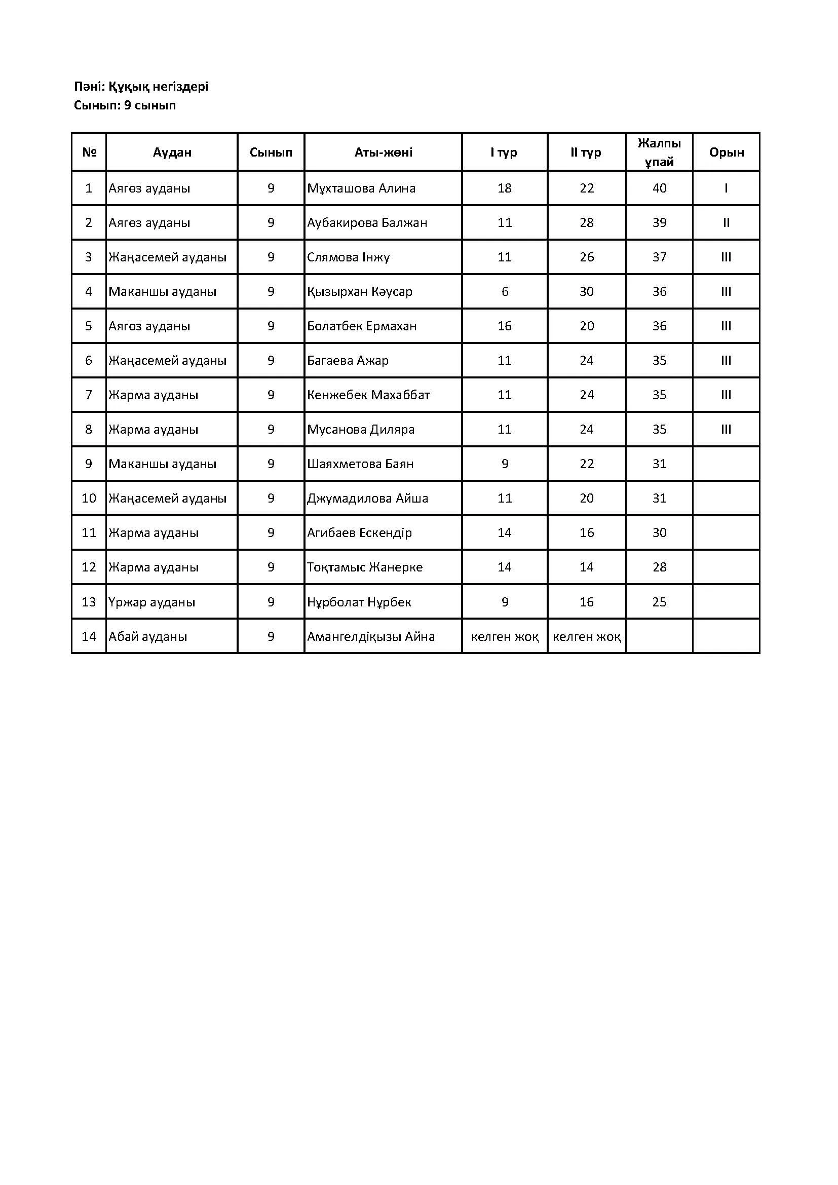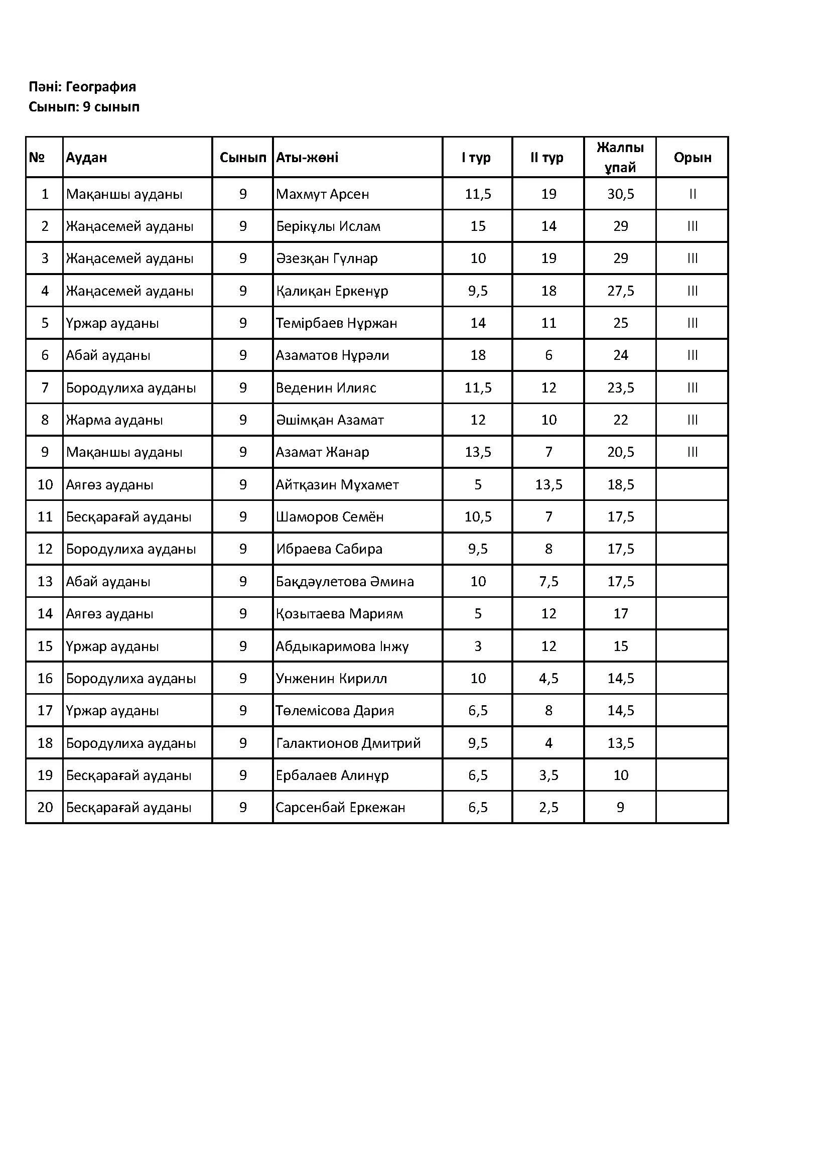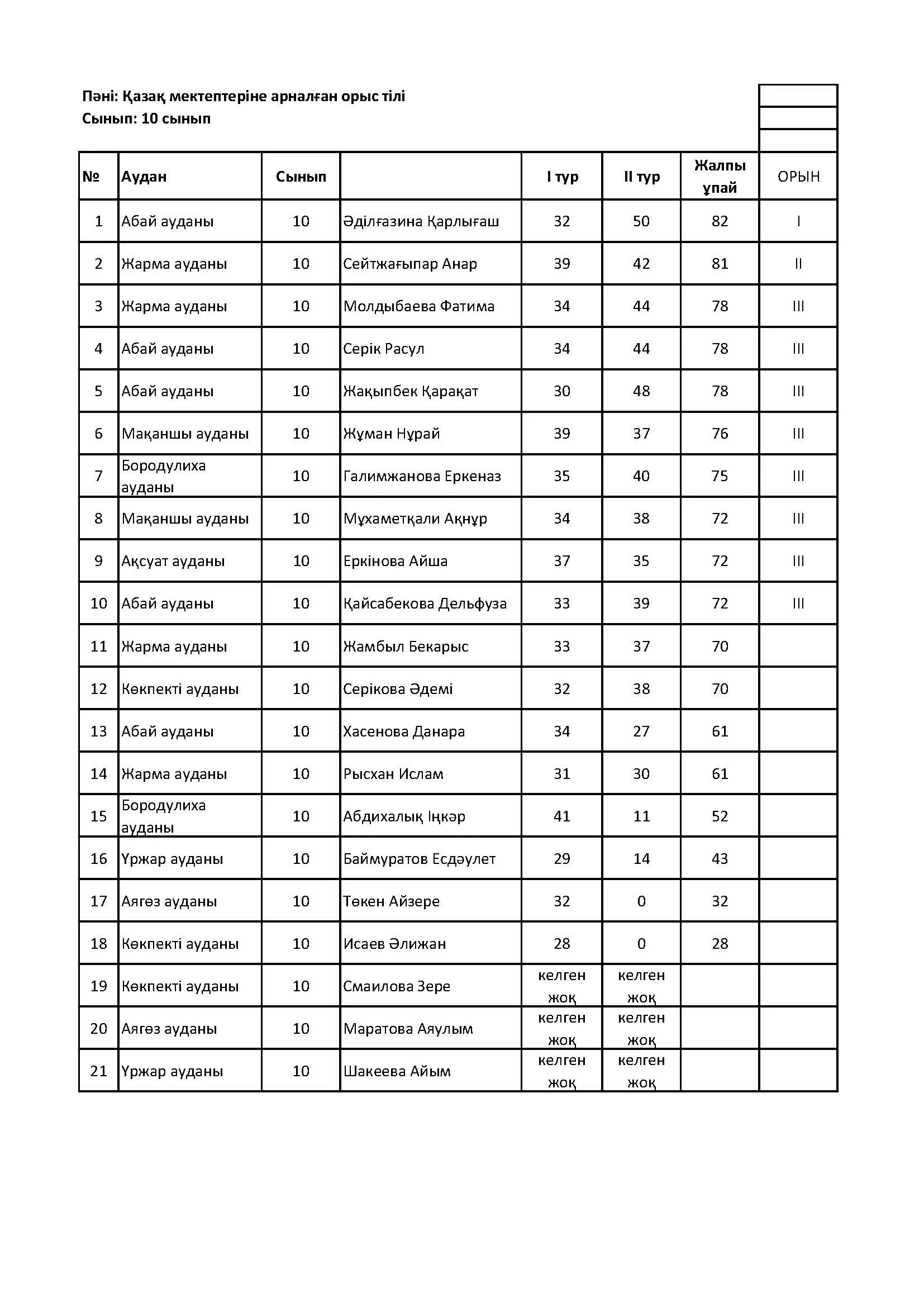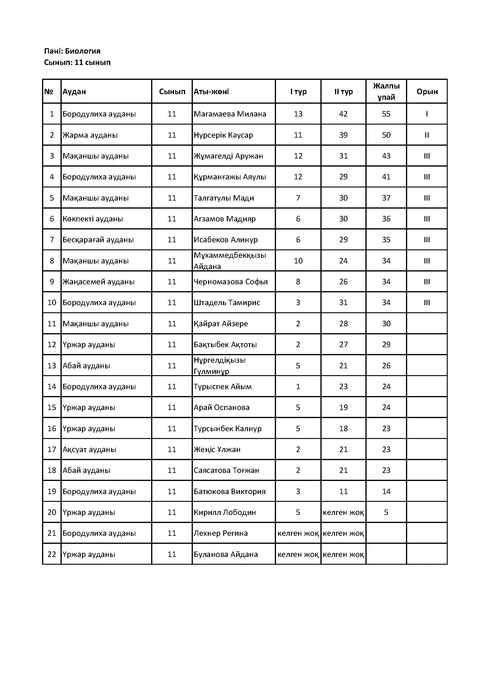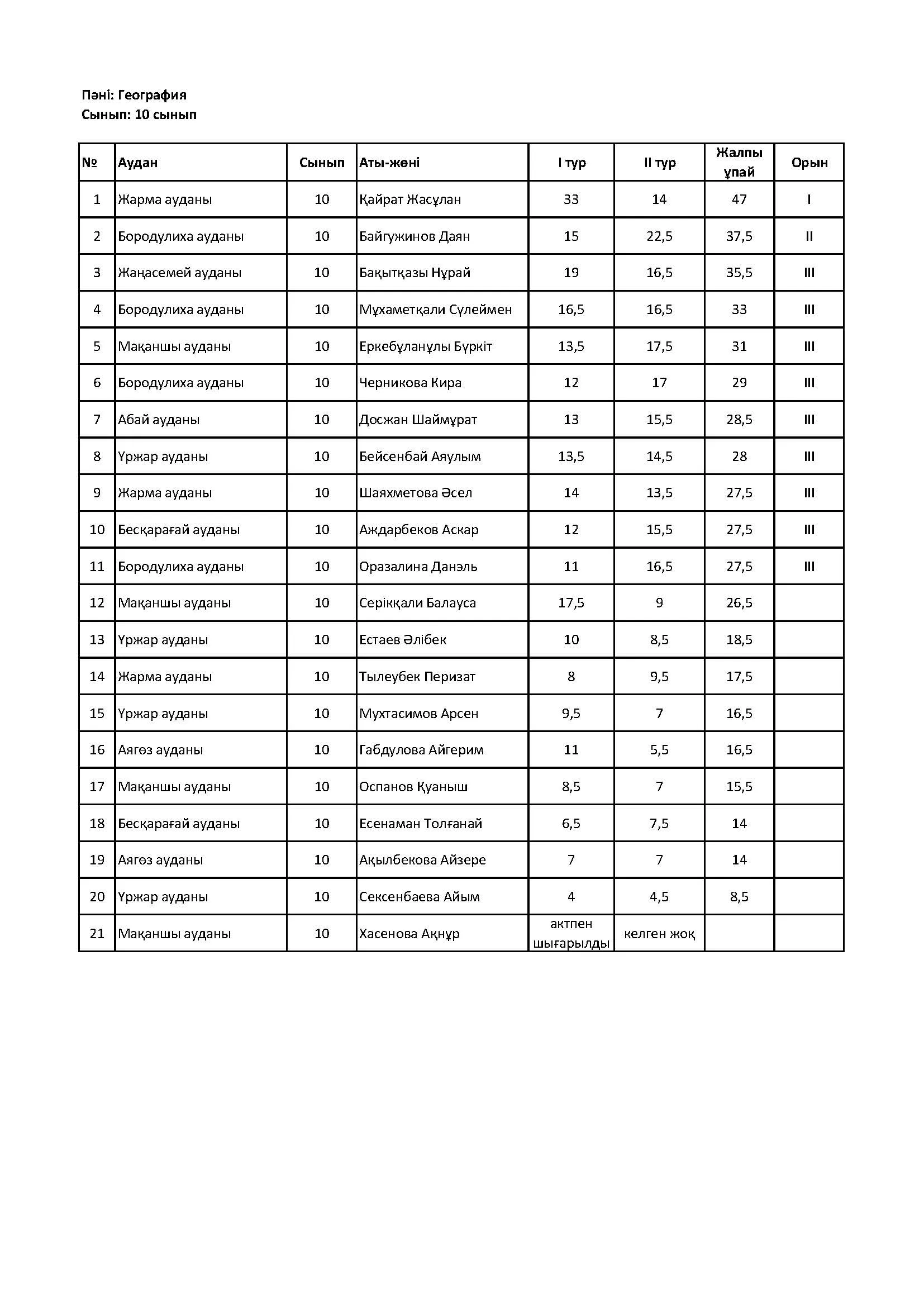 Итоги Областного этапа республиканской олимпиады по общеобразовательным предметам для учащихся 9-11 (12) классов сельских школ Дарын Орталығы 30.10.2025