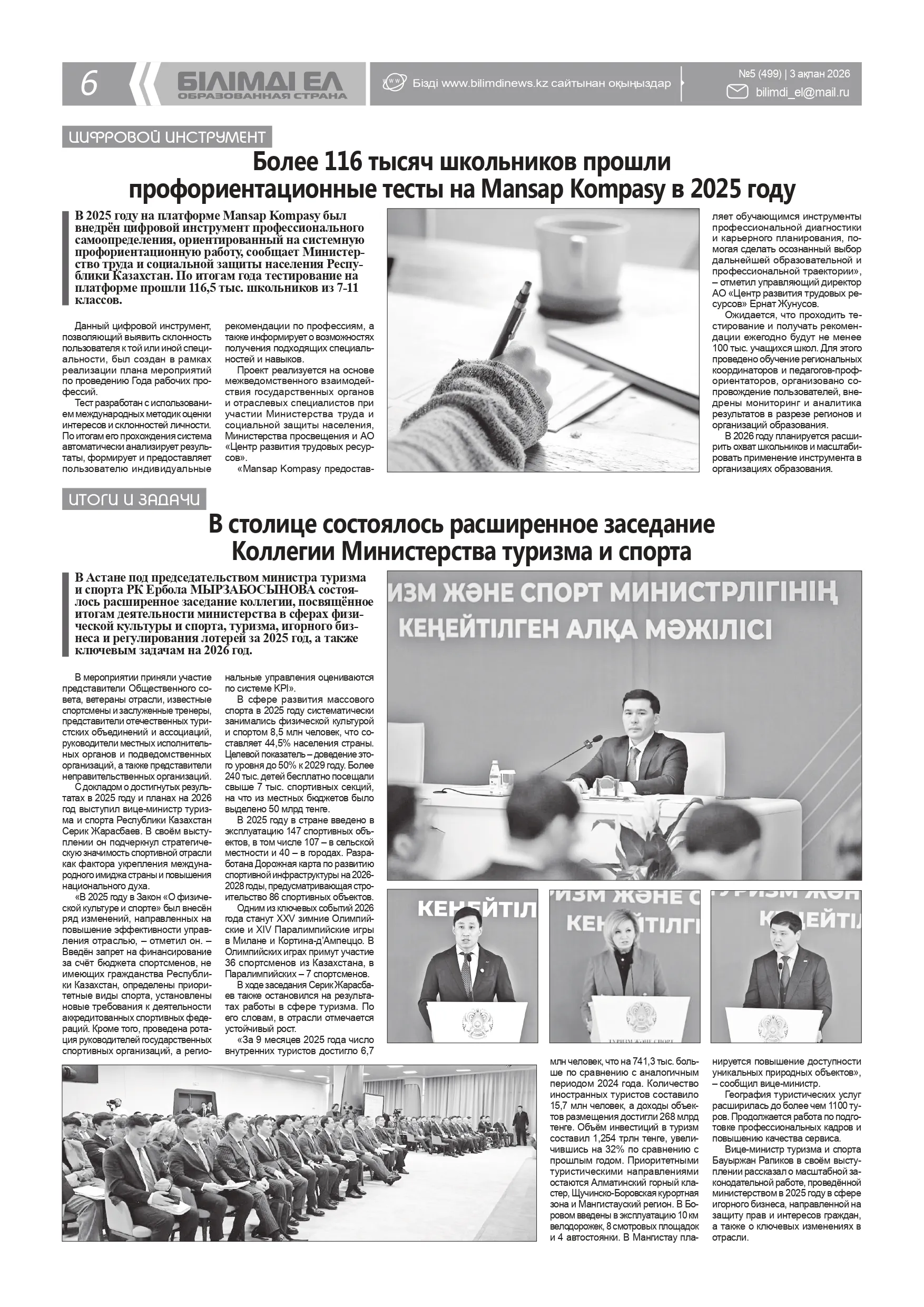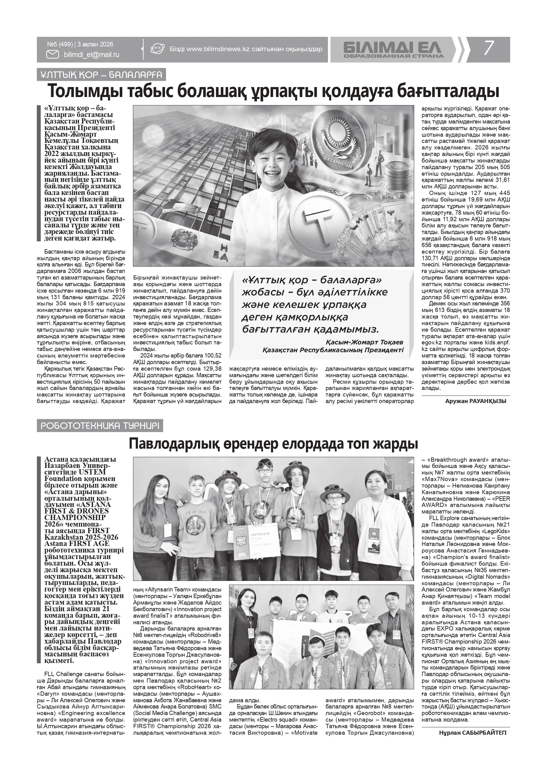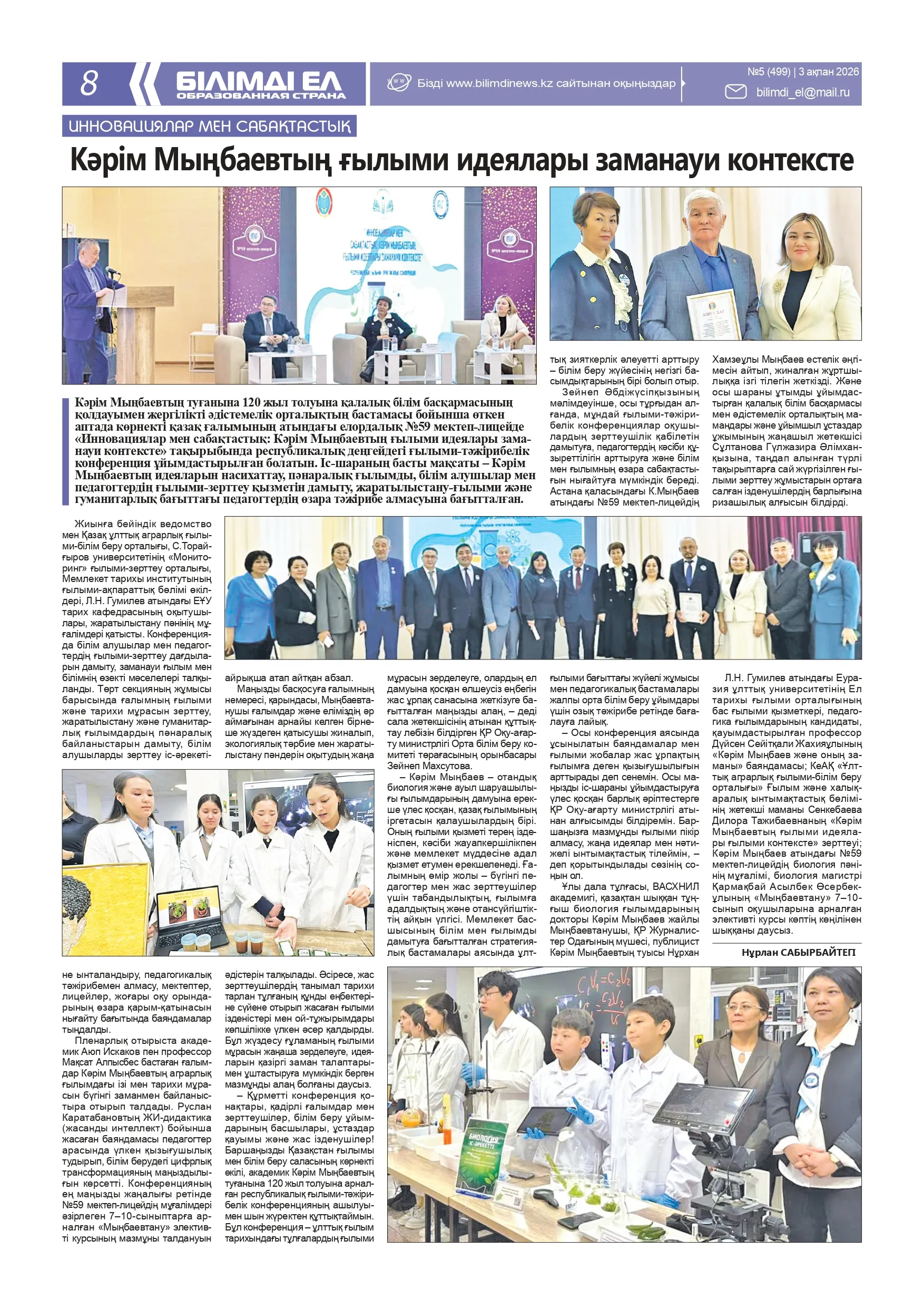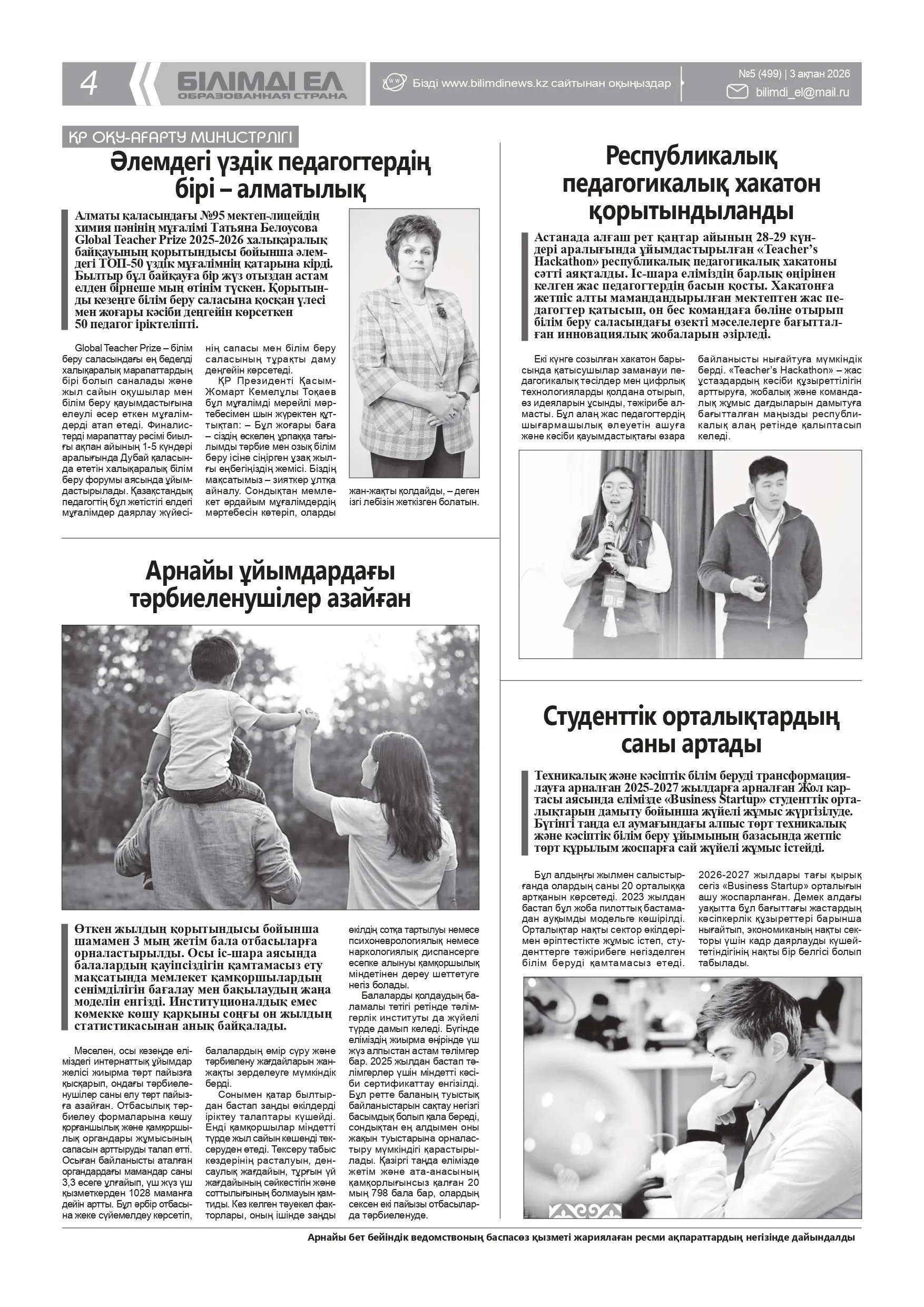 В соответствии с медиапланом Государственного департамента образования региона Абай на 2026 год по работе с одаренными детьми, в республиканской образовательной общественно-политической газете «Билимди ел» была опубликована статья на тему «Работа с одаренными детьми: система и результаты».