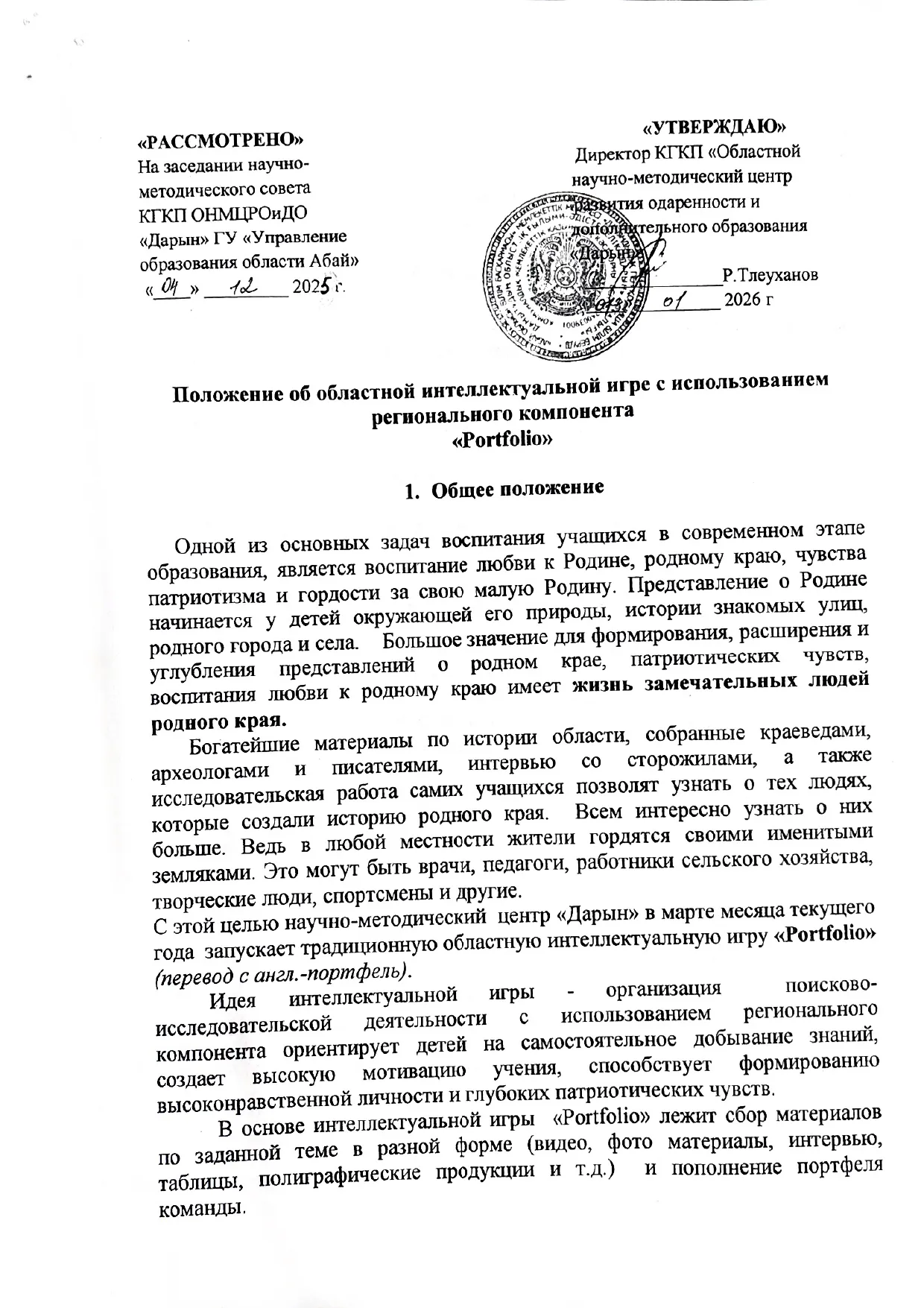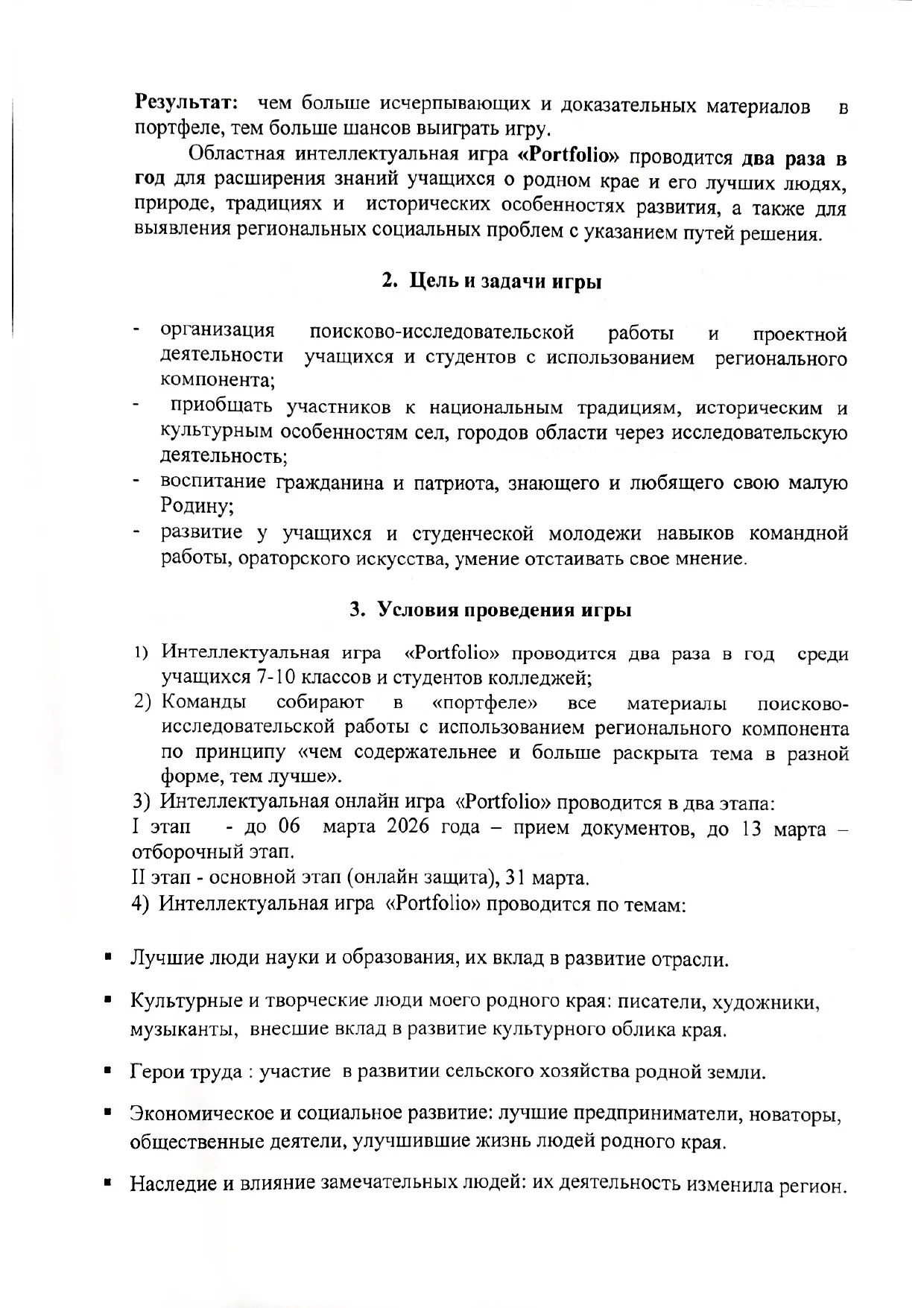 «Portfolio» облыстық зияткерлік ойынын өткізу Ережесі